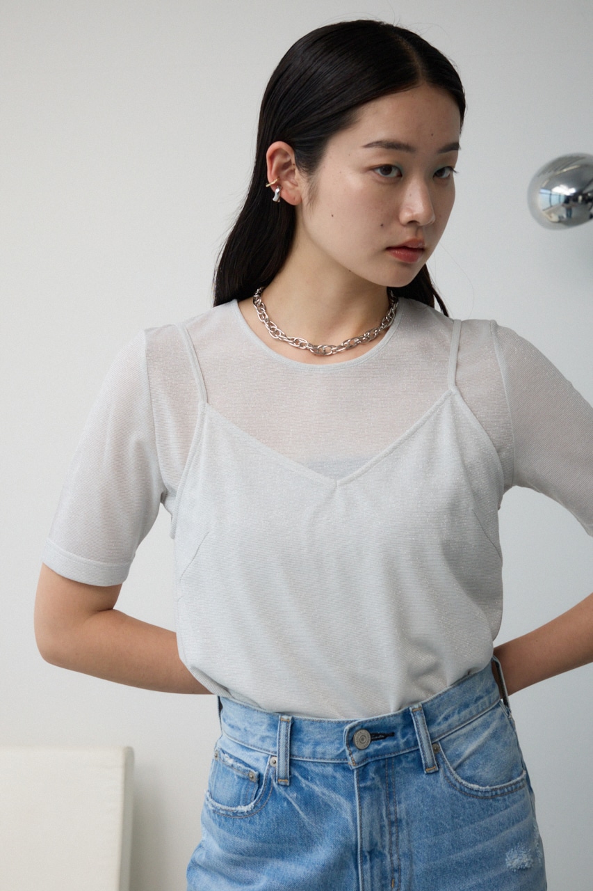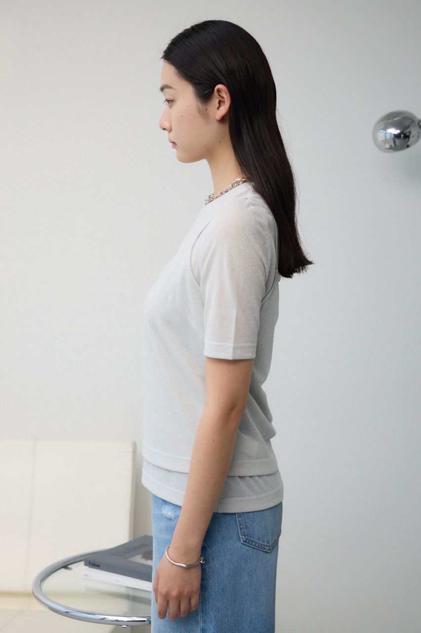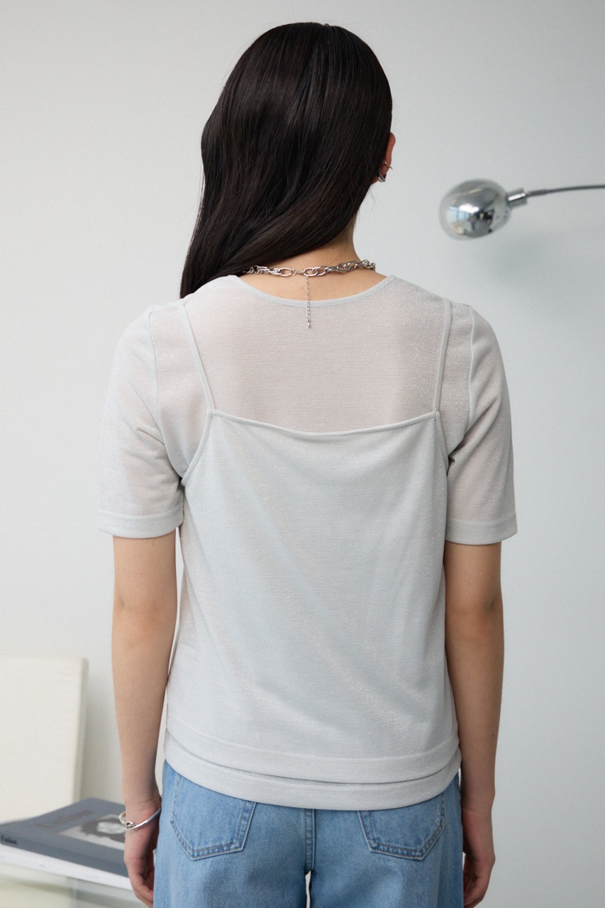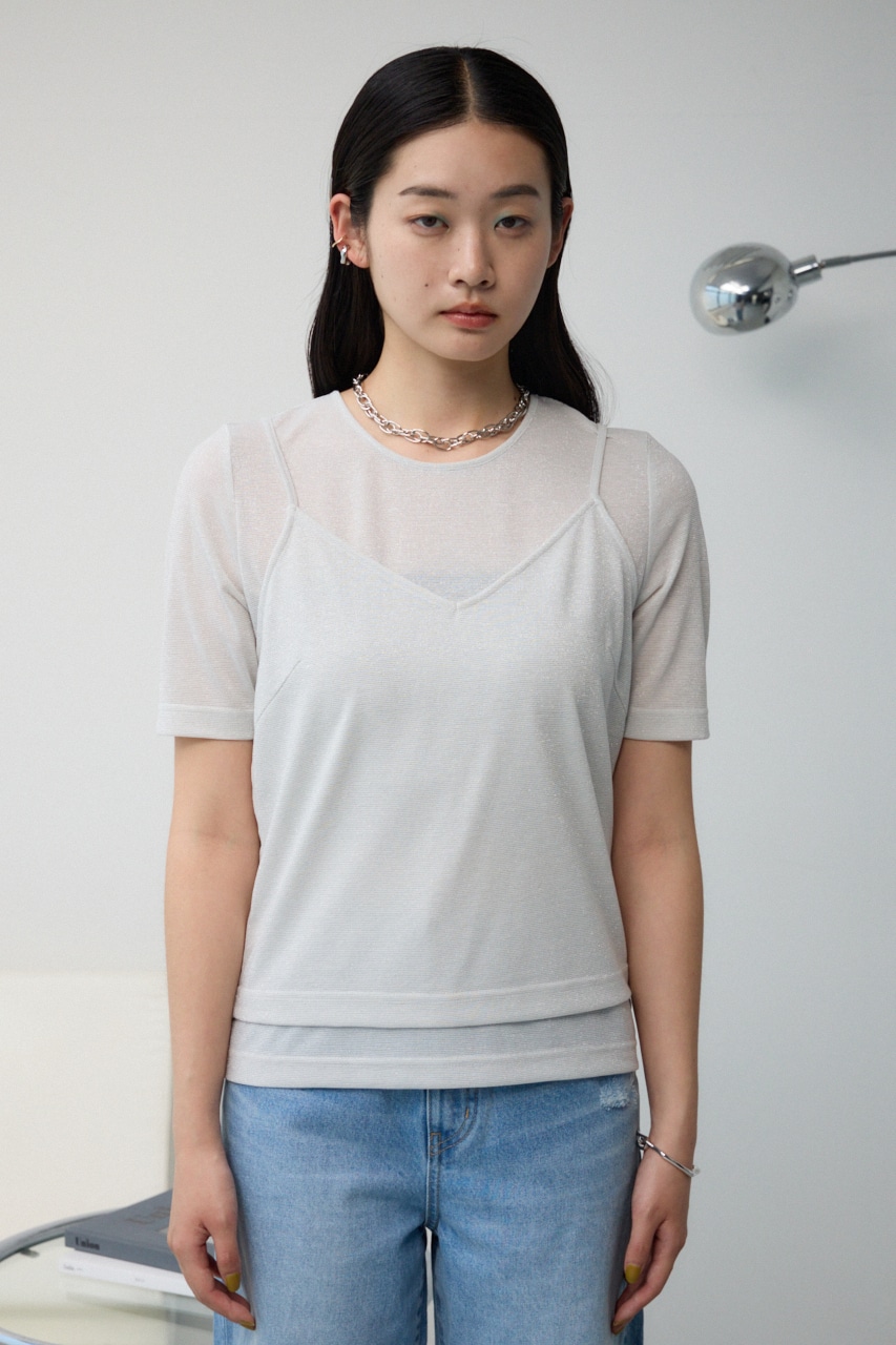 ■商品(デザイン)ポイント :トレンドのシアー×ラメ素材が可愛い、着回し抜群のレイヤードトップスです。