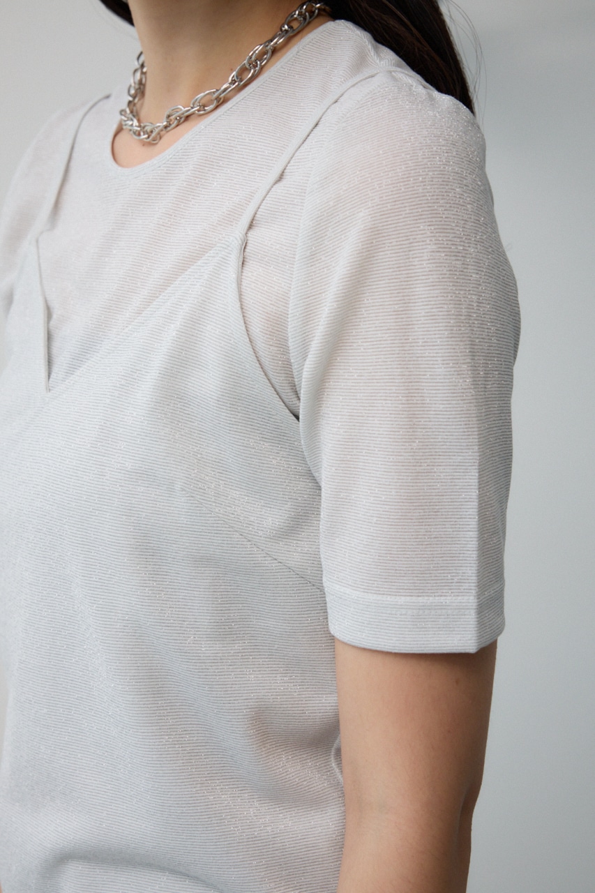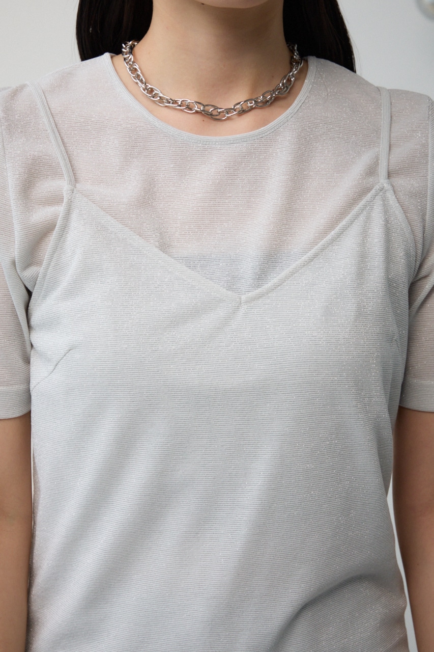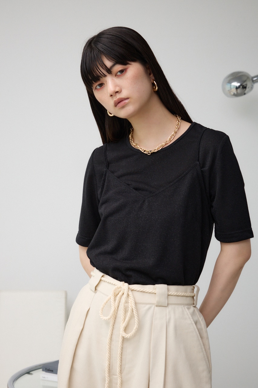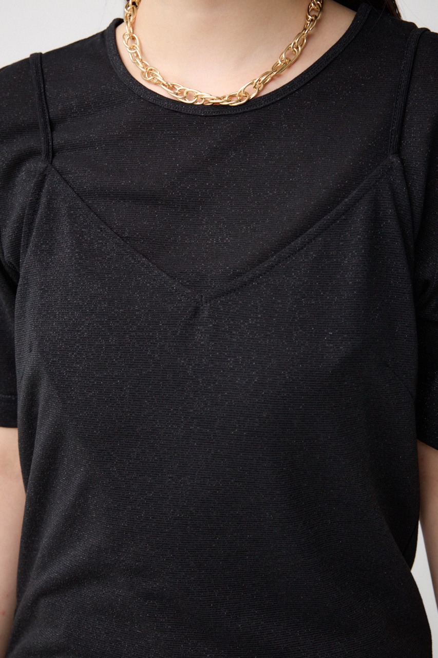 ■商品(デザイン)ポイント :トレンドのシアー×ラメ素材が可愛い、着回し抜群のレイヤードトップスです。