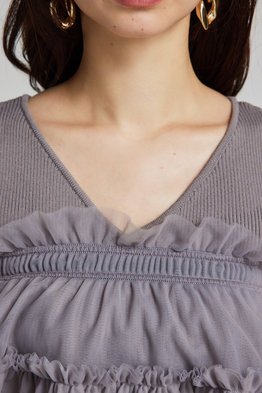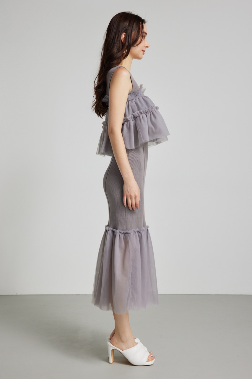 【トレンディなチュール使いが可愛いメニーウェイが叶うマーメイドニットワンピース】