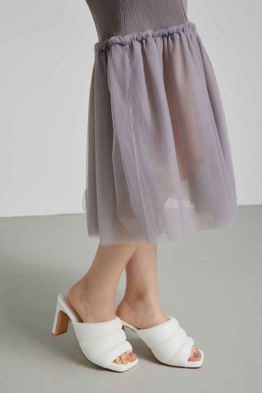 トレンドのパディングサンダルにスクエアトゥがおしゃれなサンダル。