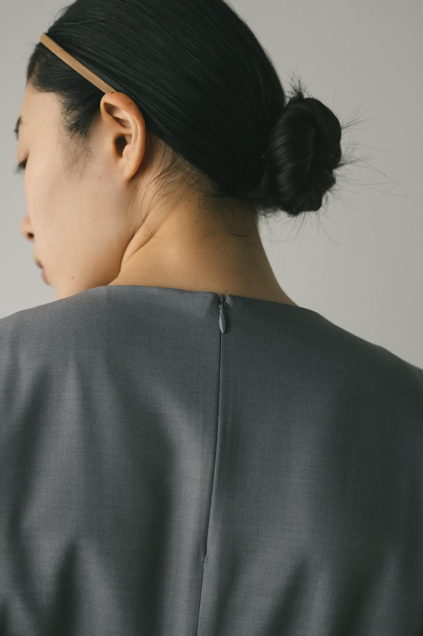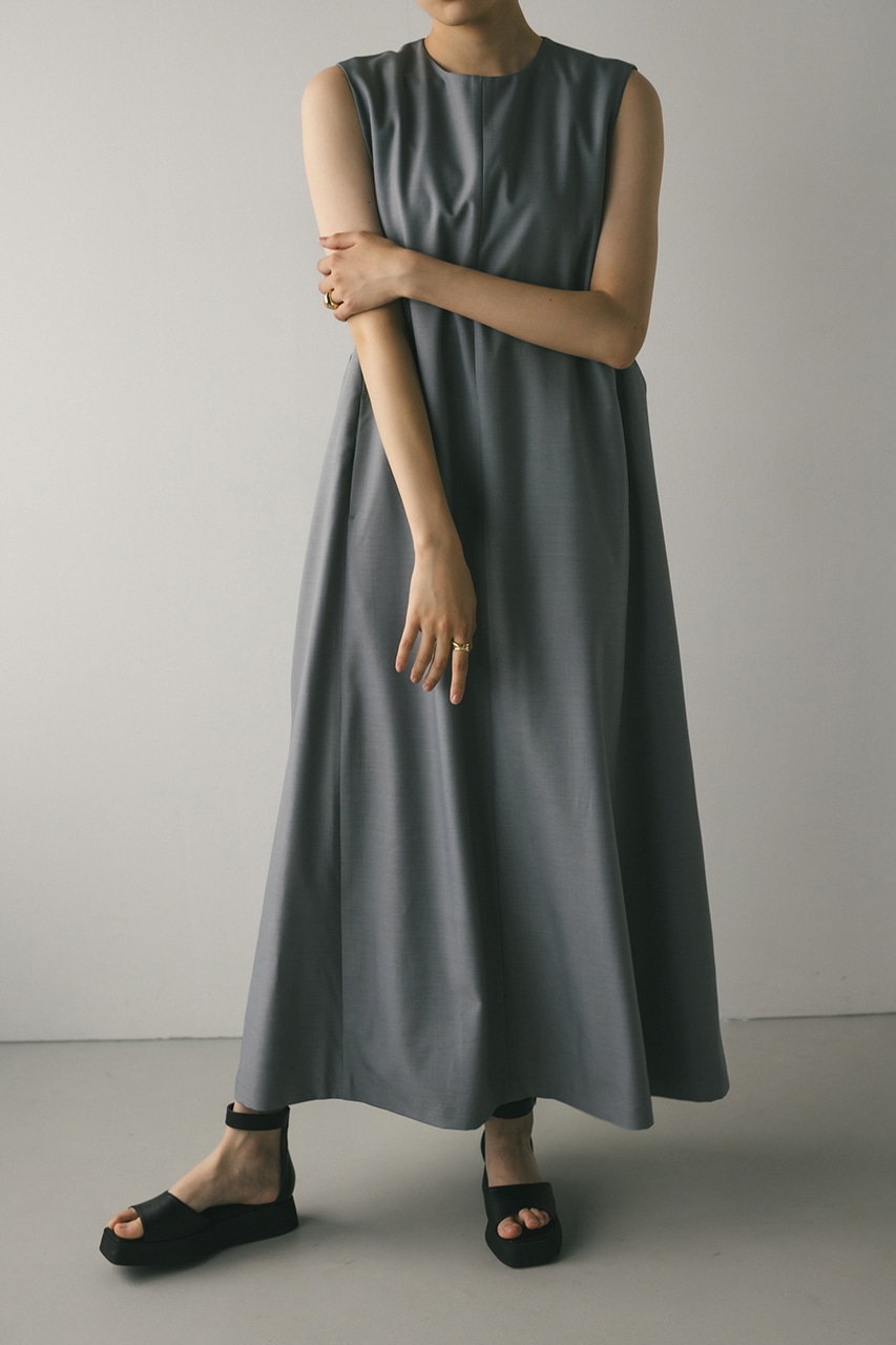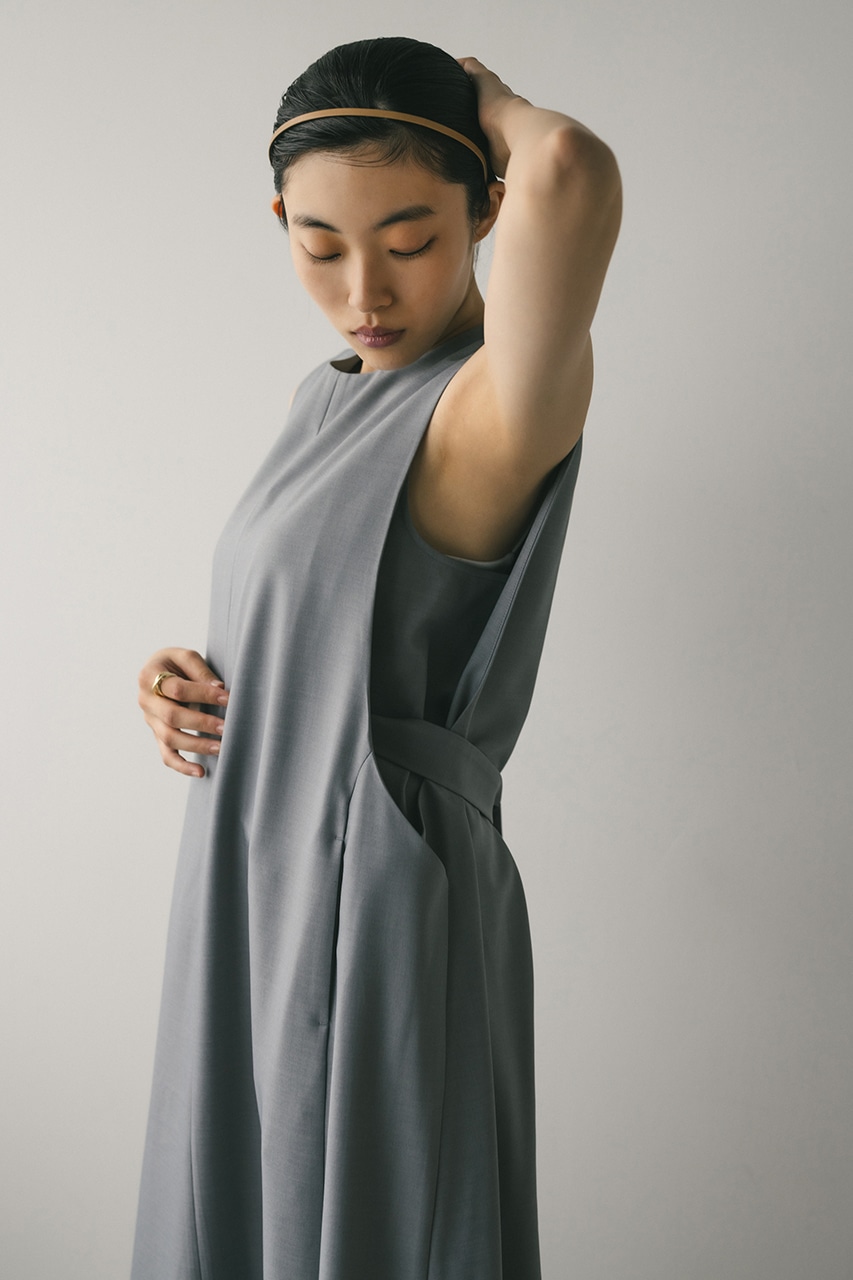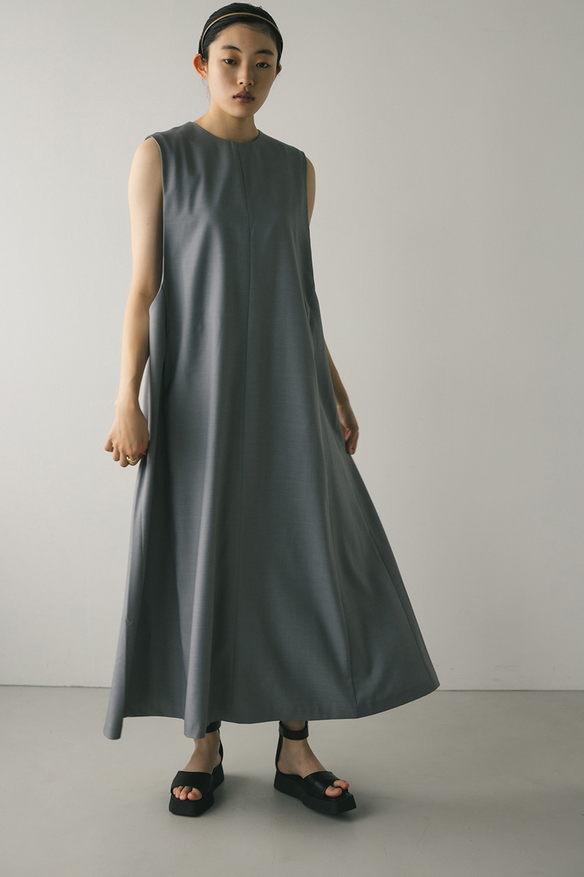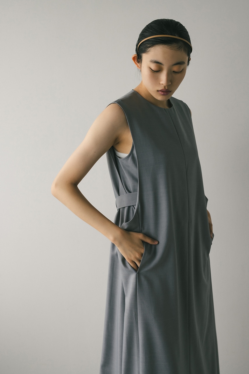 ゆったりとしたシルエットながら縦に落ちるドレープでスタイルアップに導くワンピース。