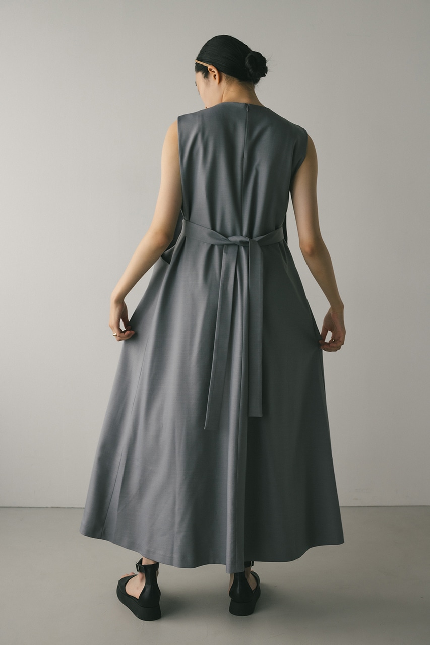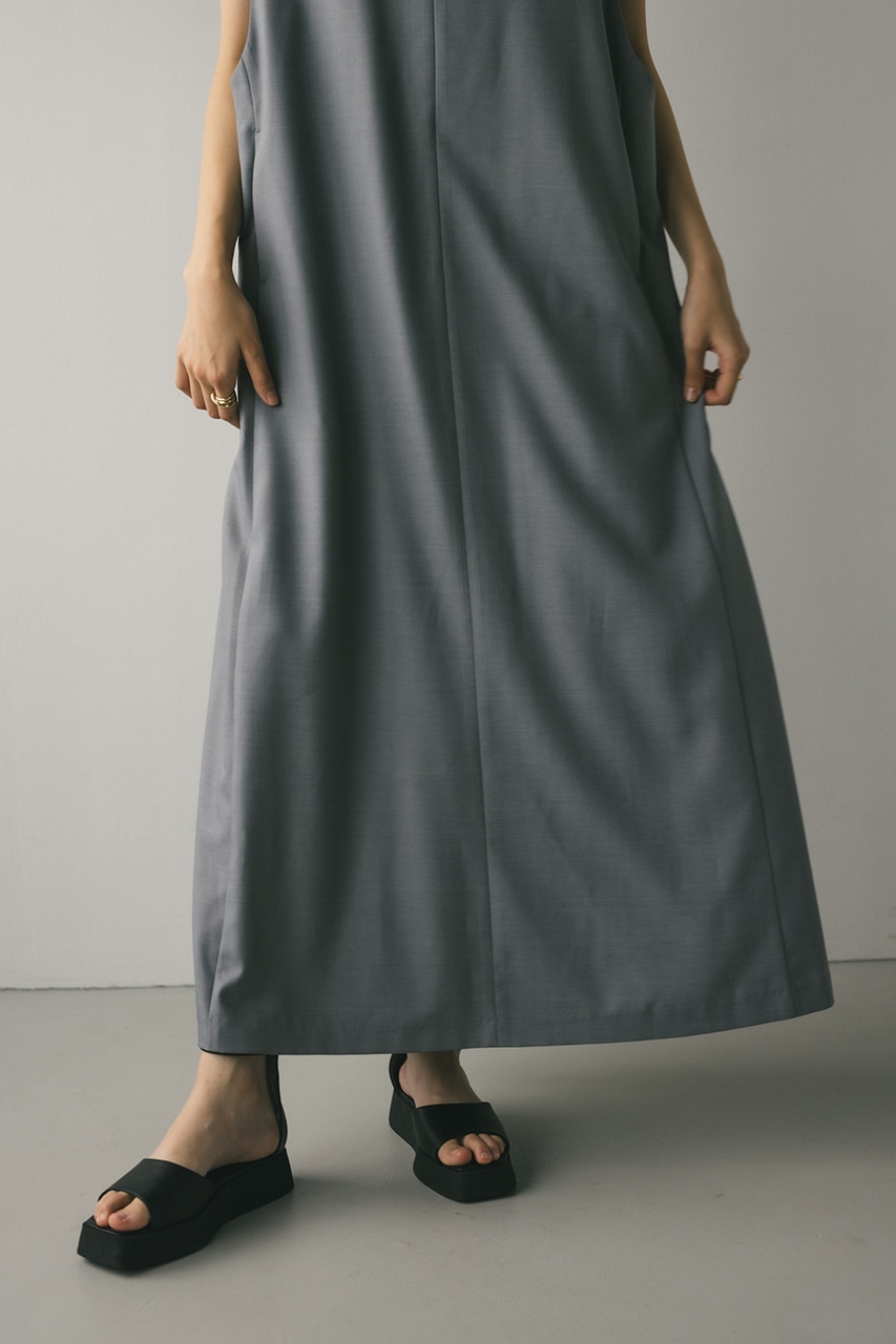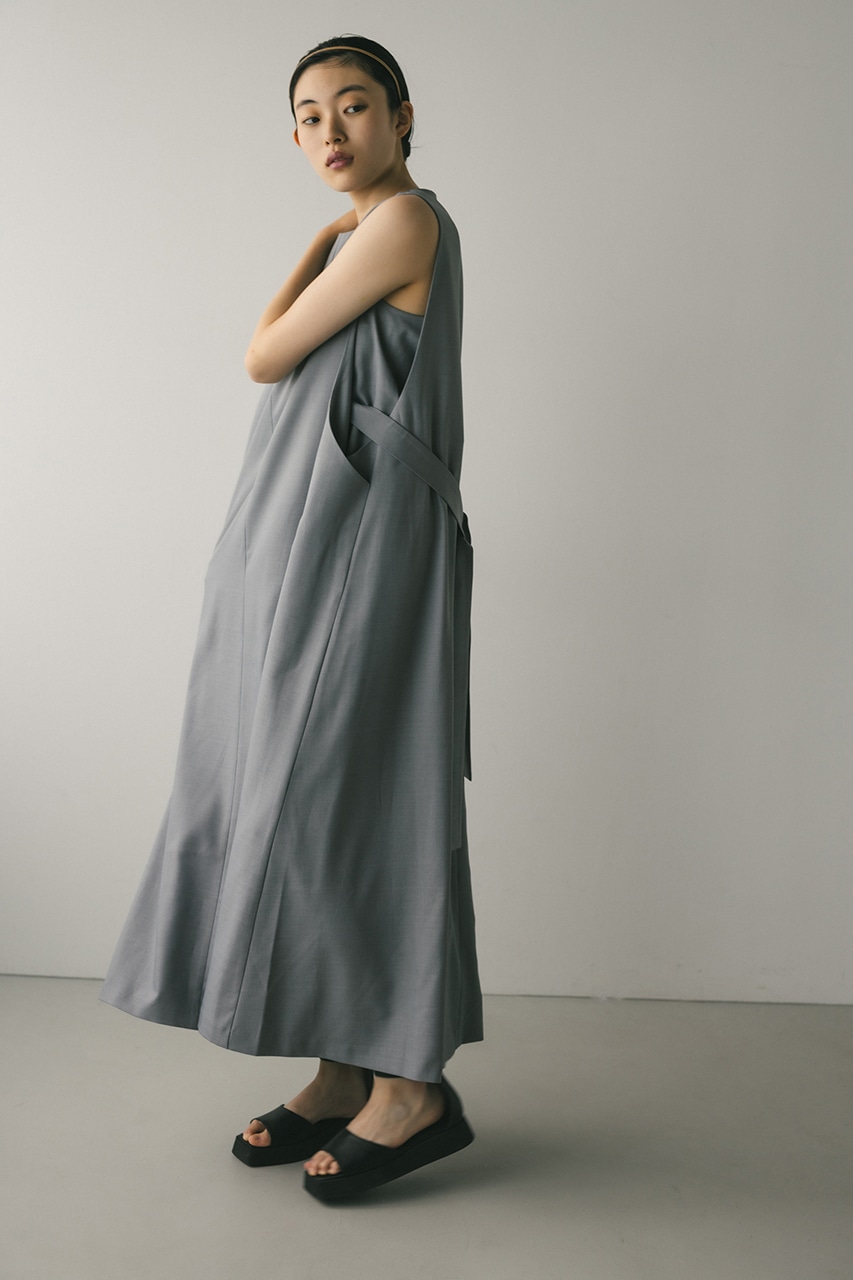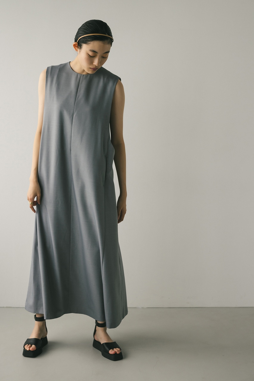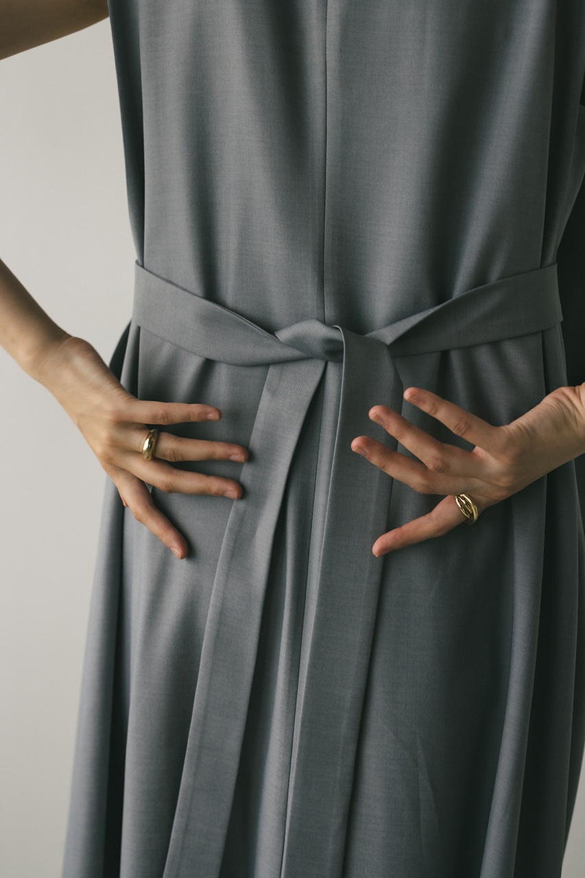 ゆったりとしたシルエットながら縦に落ちるドレープでスタイルアップに導くワンピース。