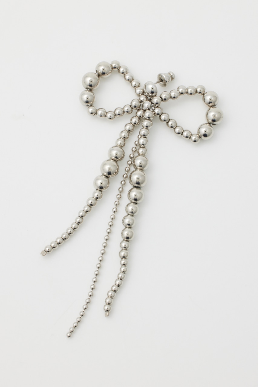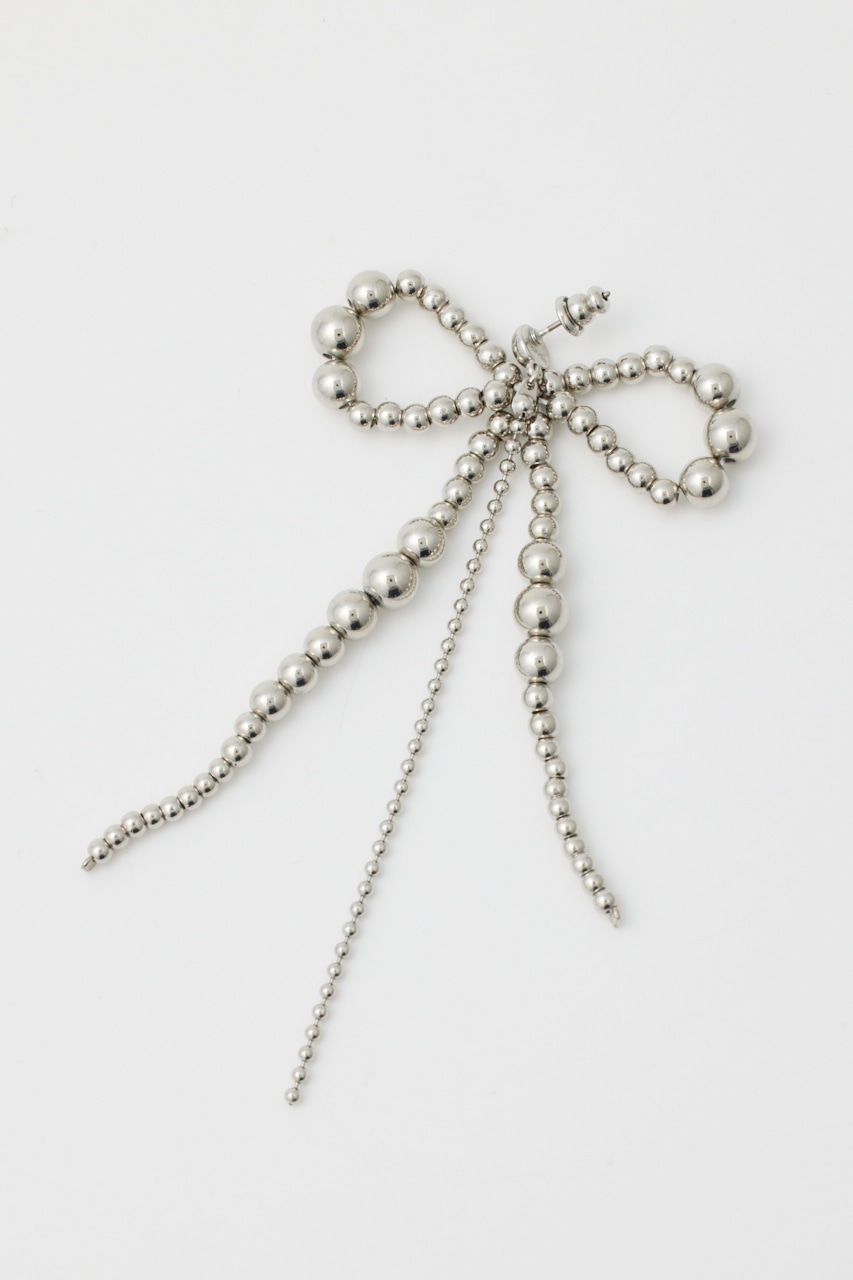 艶めきのあるビジューでデザインされたリボンモチーフが目を引くピアスです。