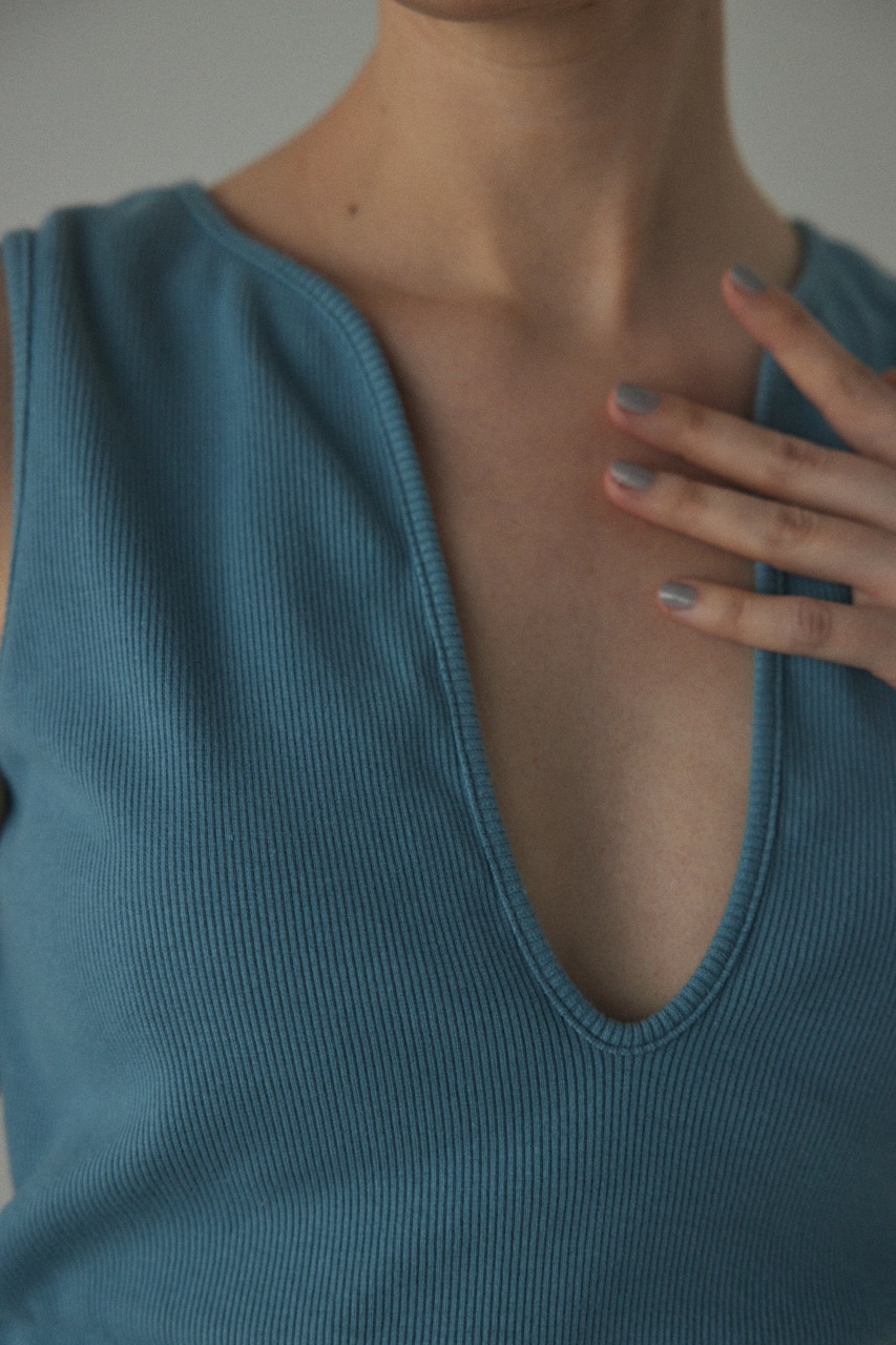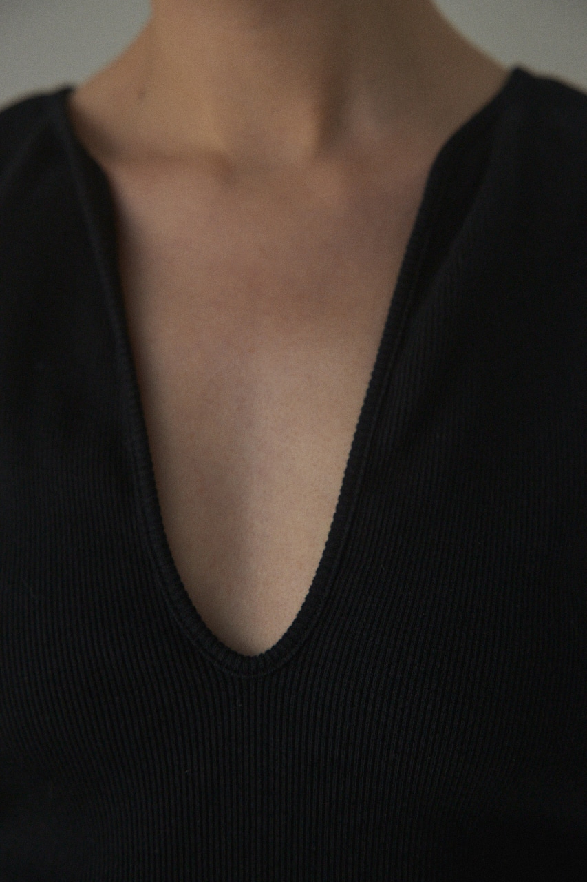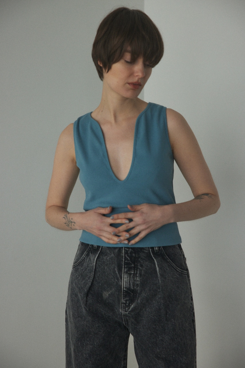 フロントの大きく空いたVデザインが女性らしいカットトップス。