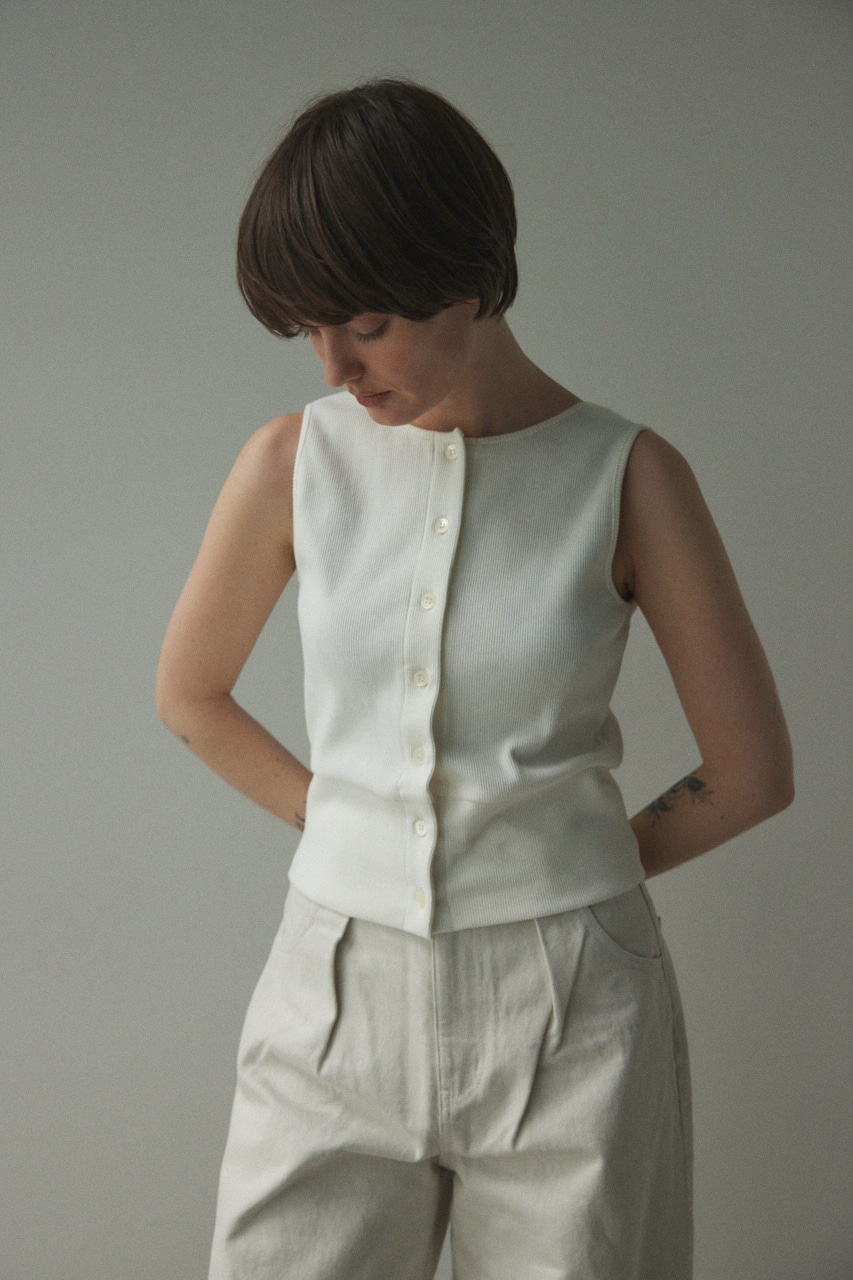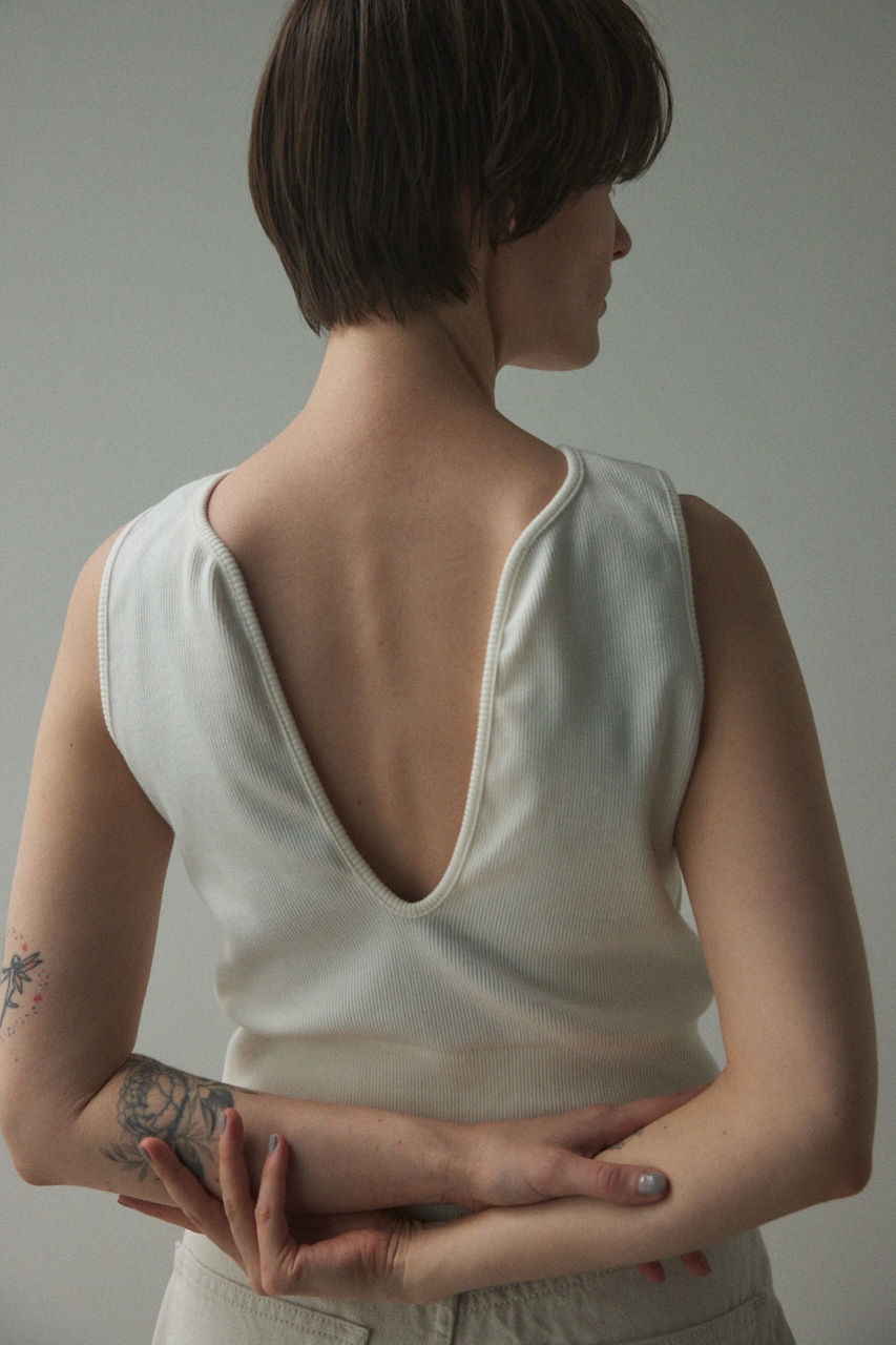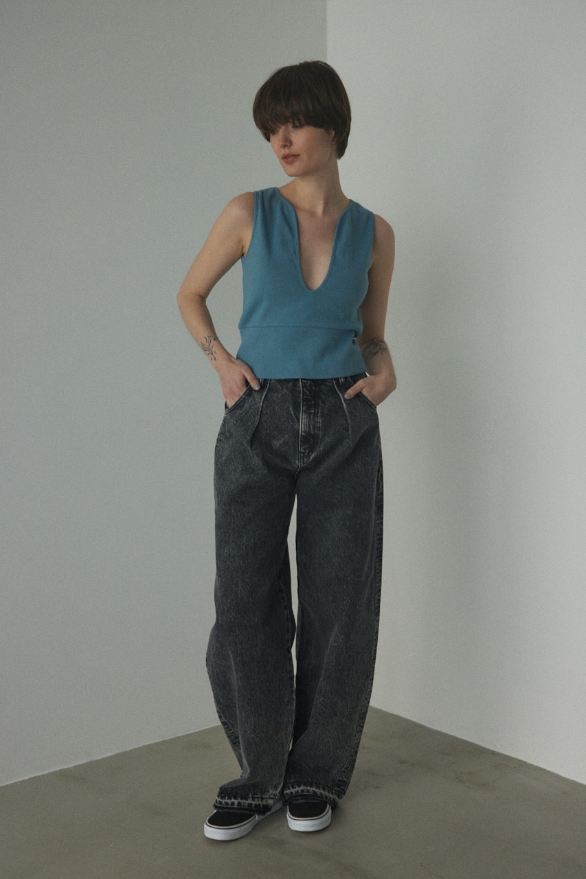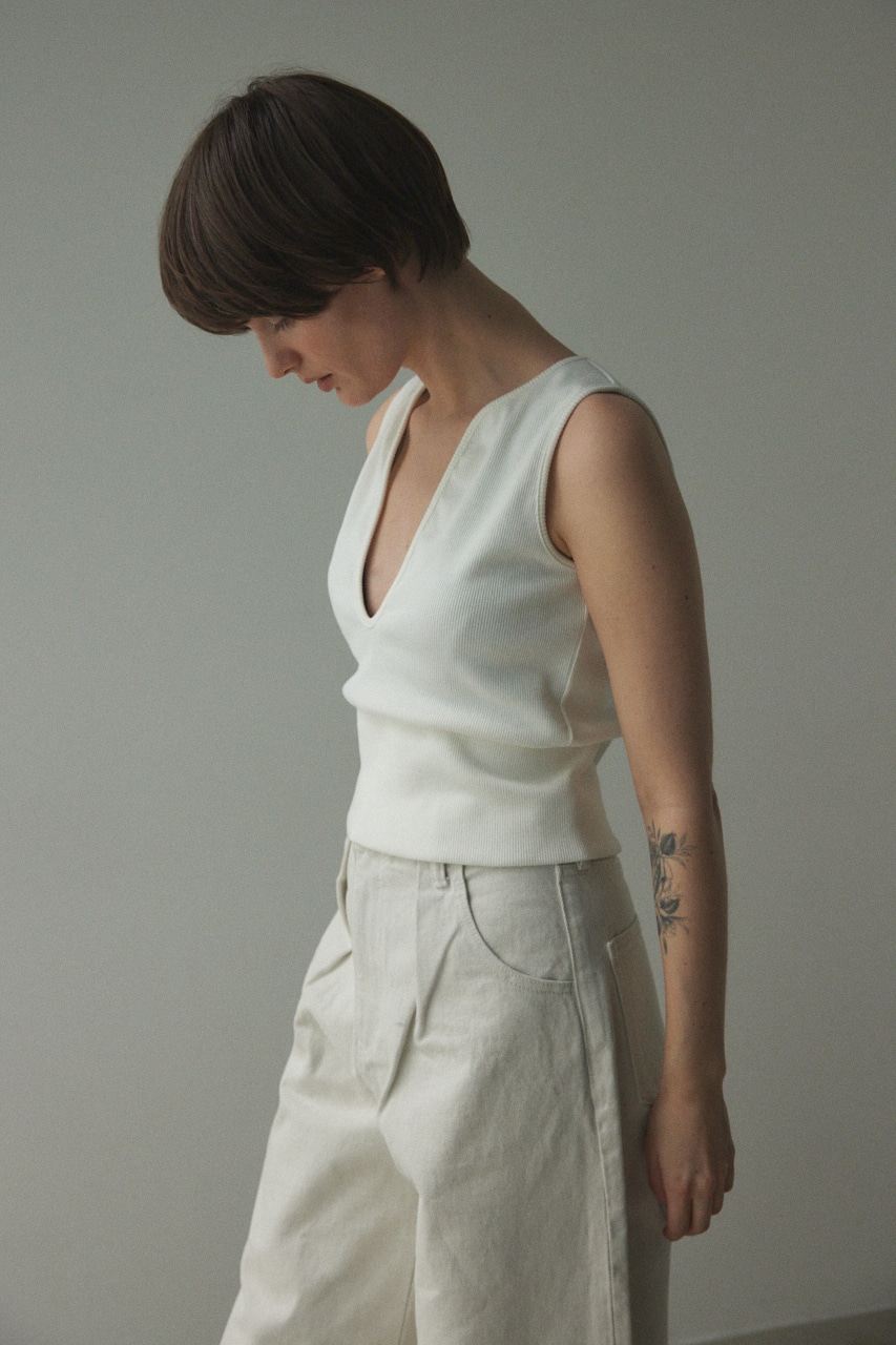 フロントの大きく空いたVデザインが女性らしいカットトップス。