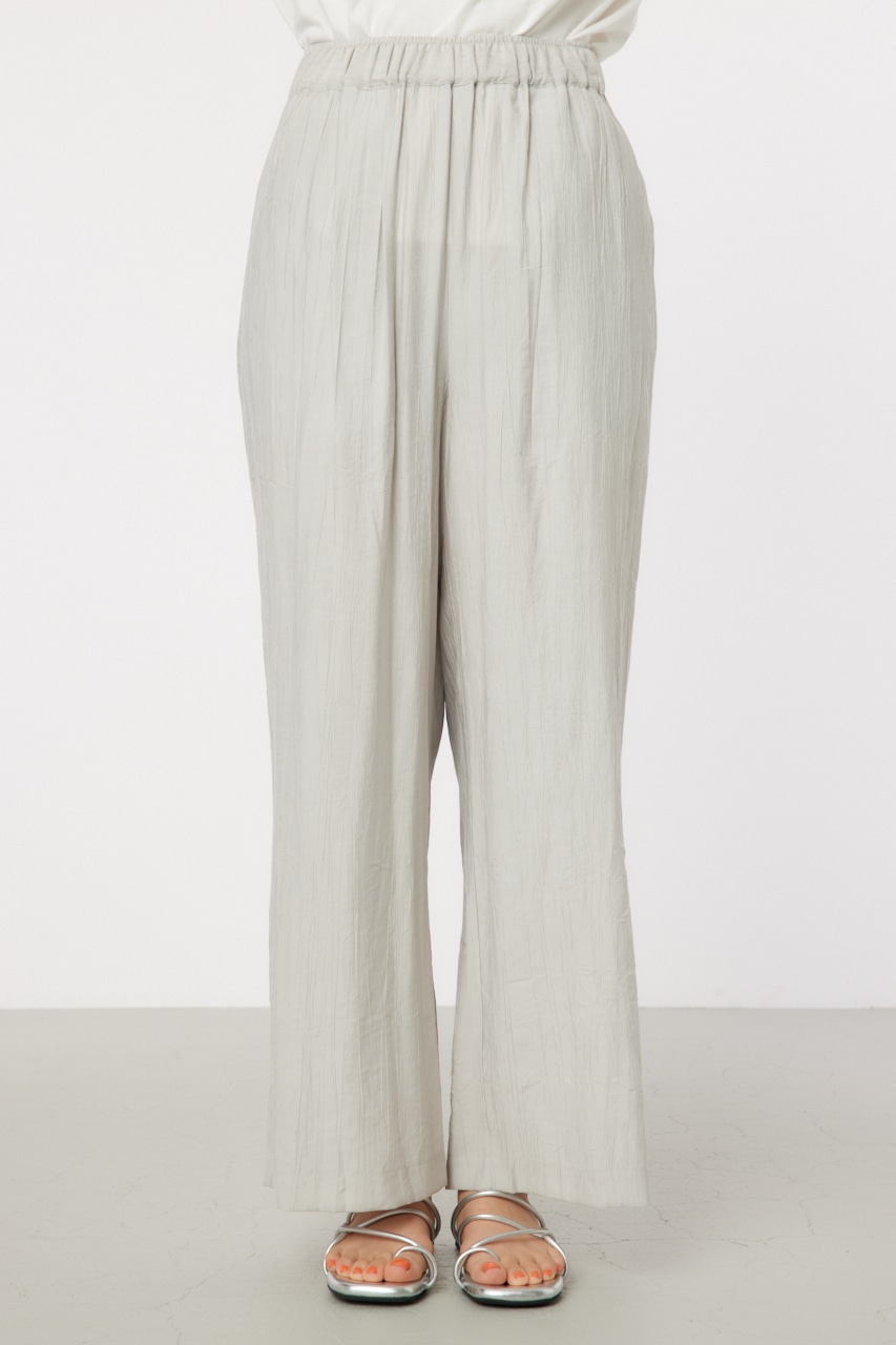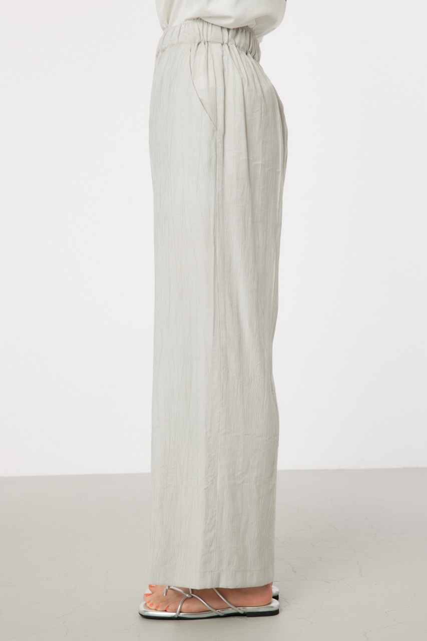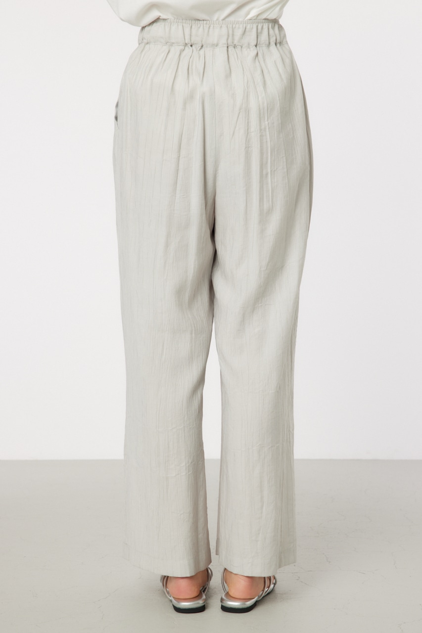 楊柳素材を使用した清涼感たっぷりのイージーパンツ。軽い素材でノンストレスで着用できます。ウエストにはサイズ調整が可能な共地テープが付いています。