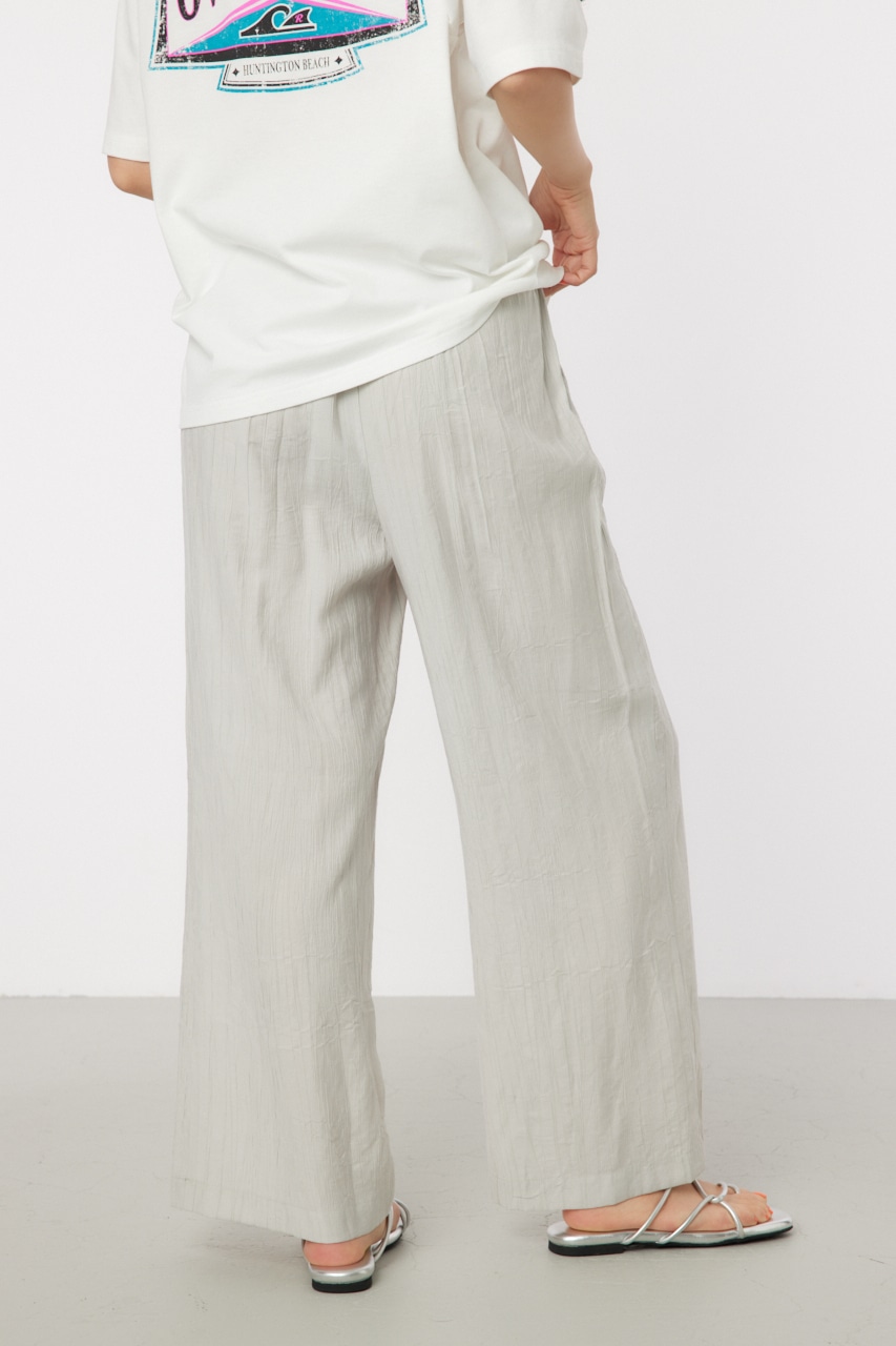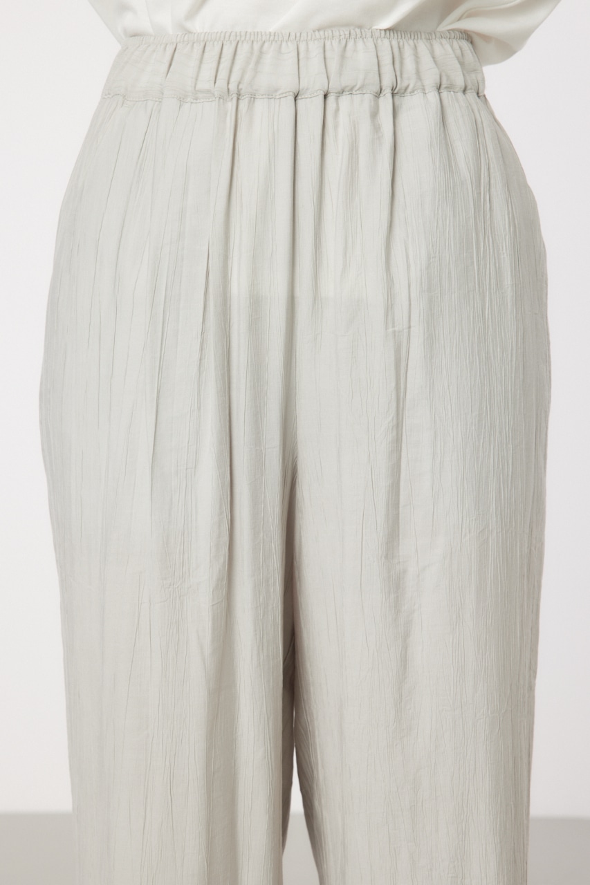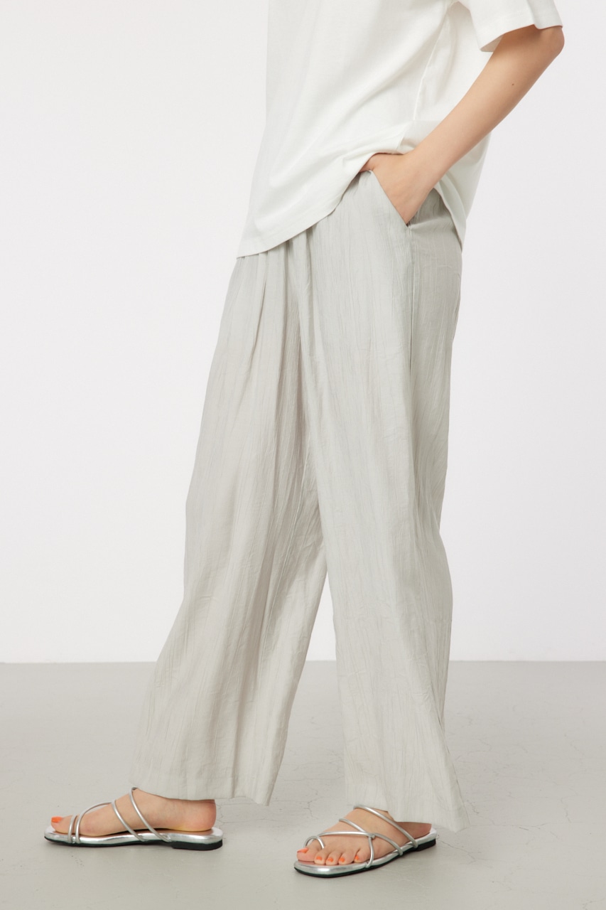 楊柳素材を使用した清涼感たっぷりのイージーパンツ。軽い素材でノンストレスで着用できます。ウエストにはサイズ調整が可能な共地テープが付いています。