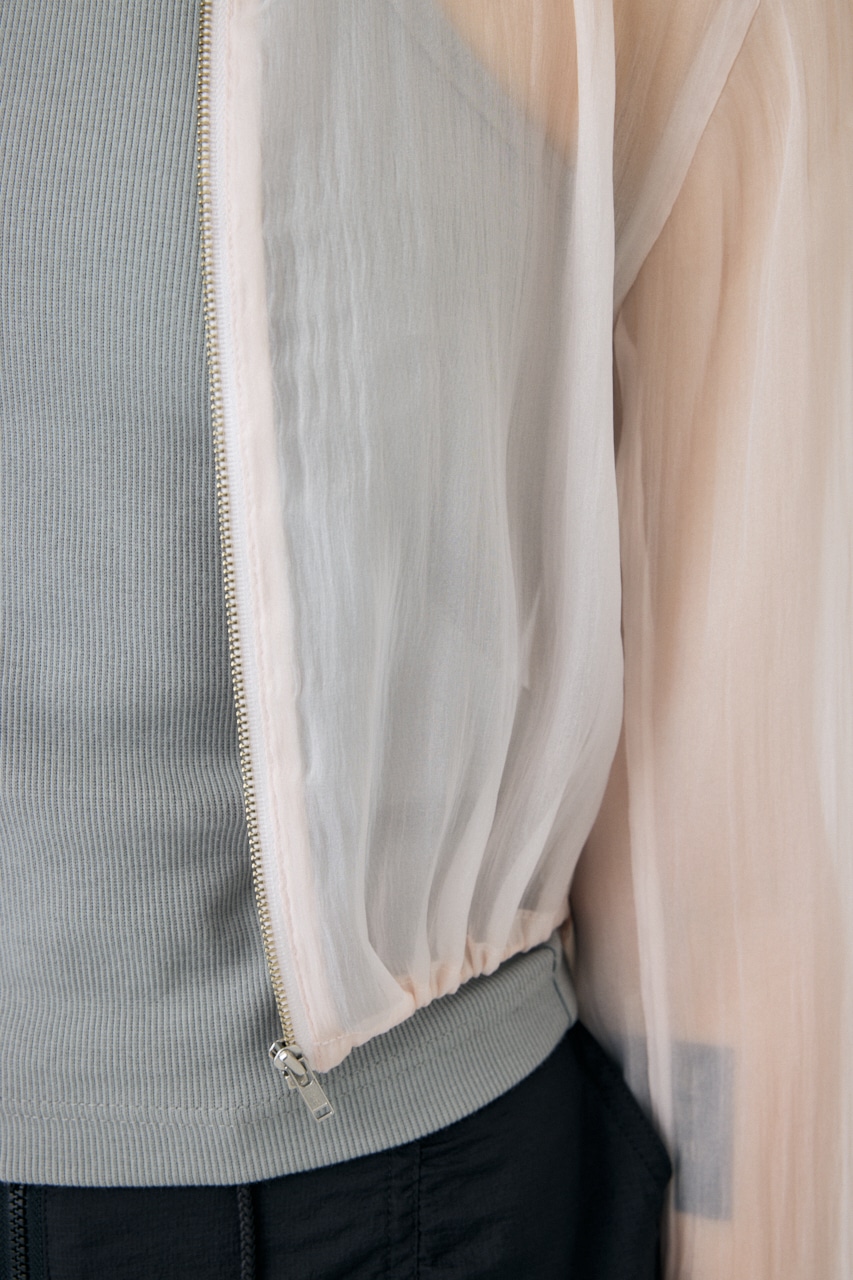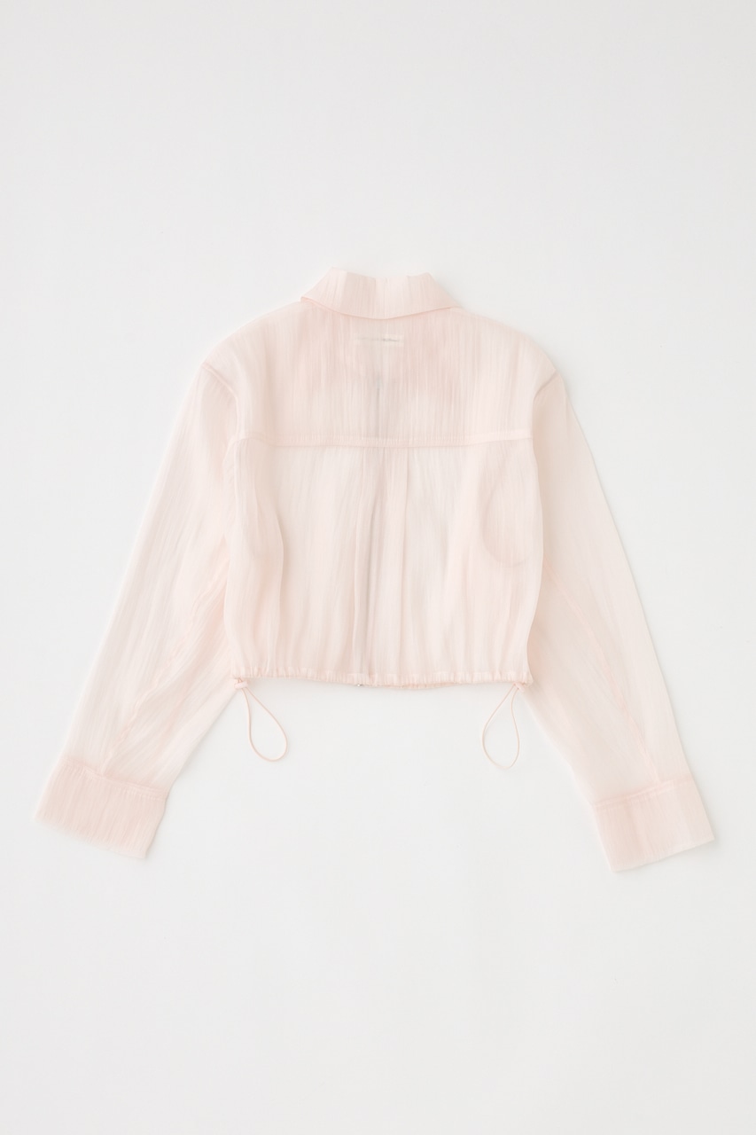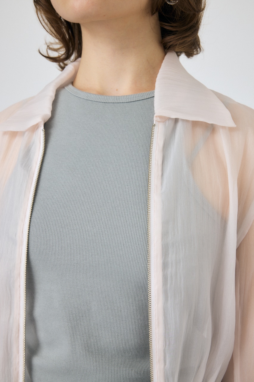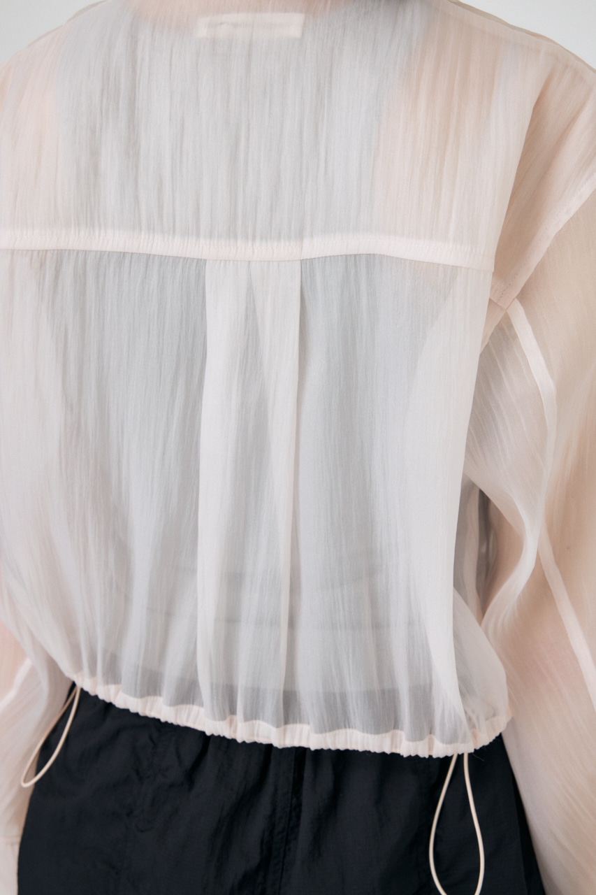 清涼感のある程よいシアー感がある素材で、暑い時期にもさらっと羽織れるふんわりとしたシルエットのライトアウターです。