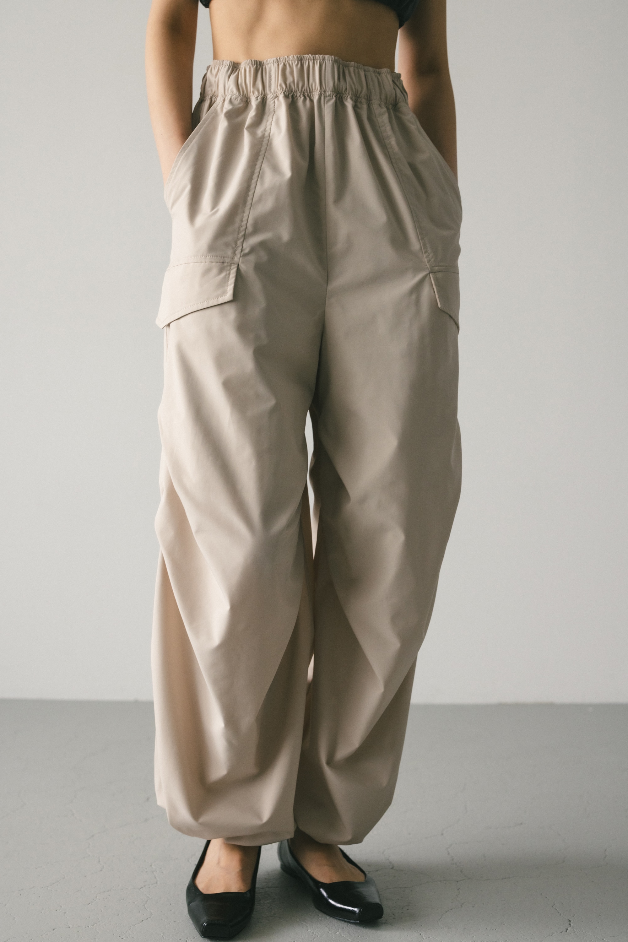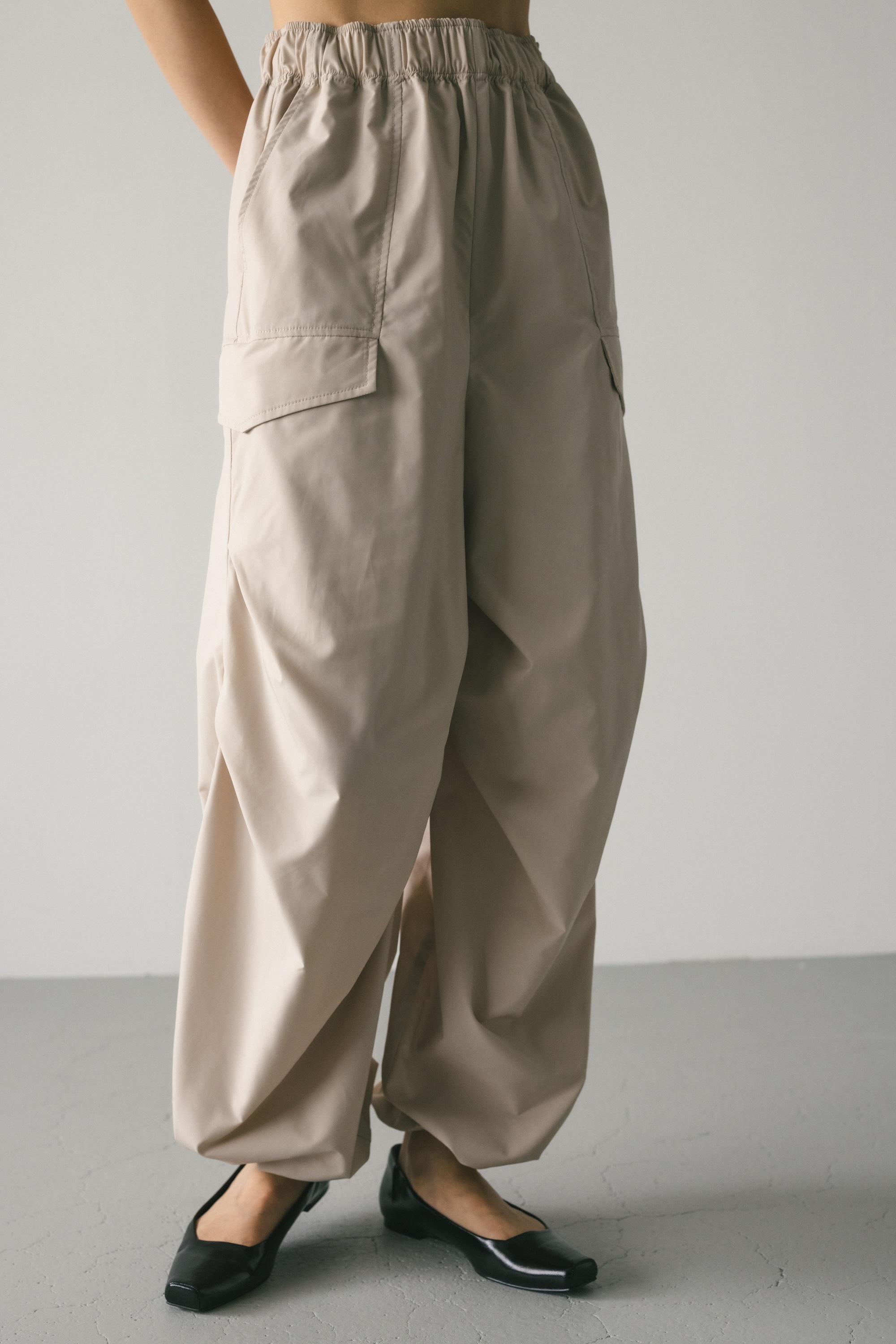 なめらかなマットな質感のナイロンライクポリエステルで仕立てた大人カーゴパンツ。