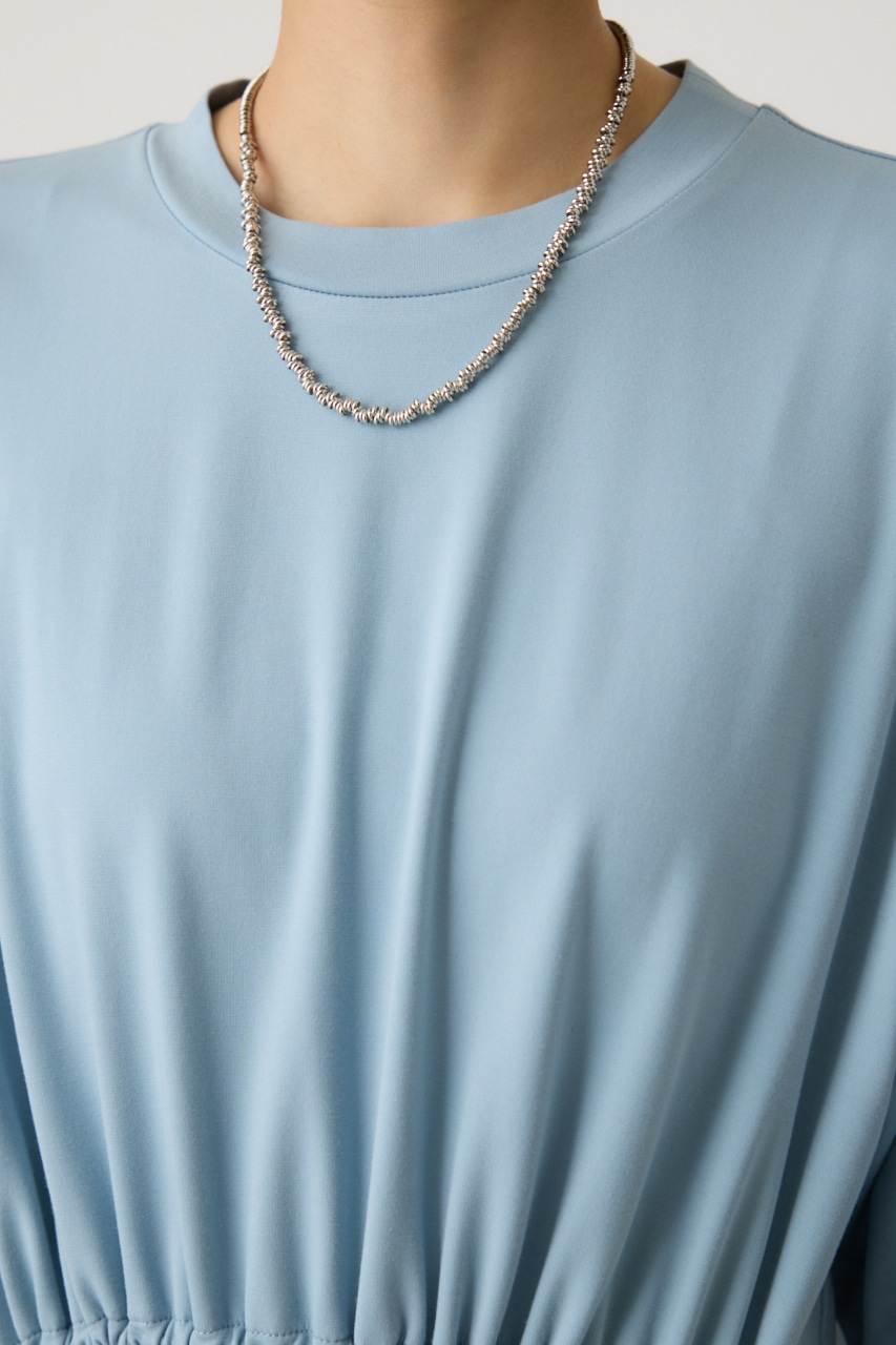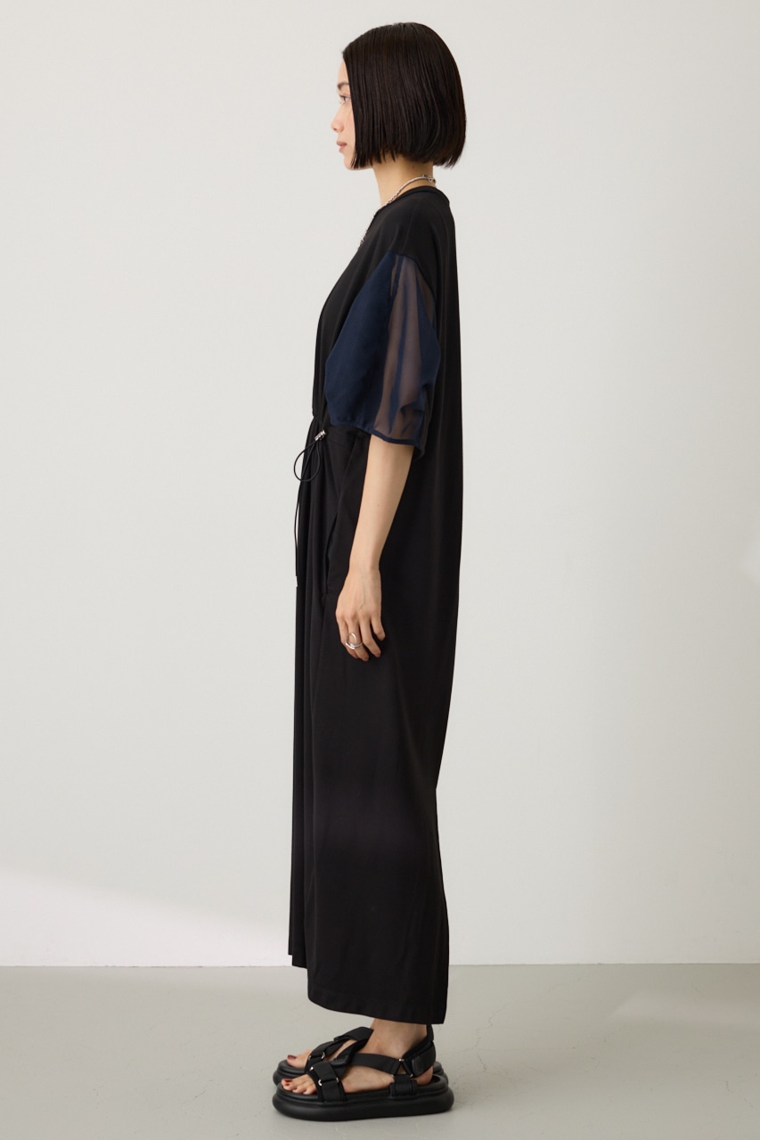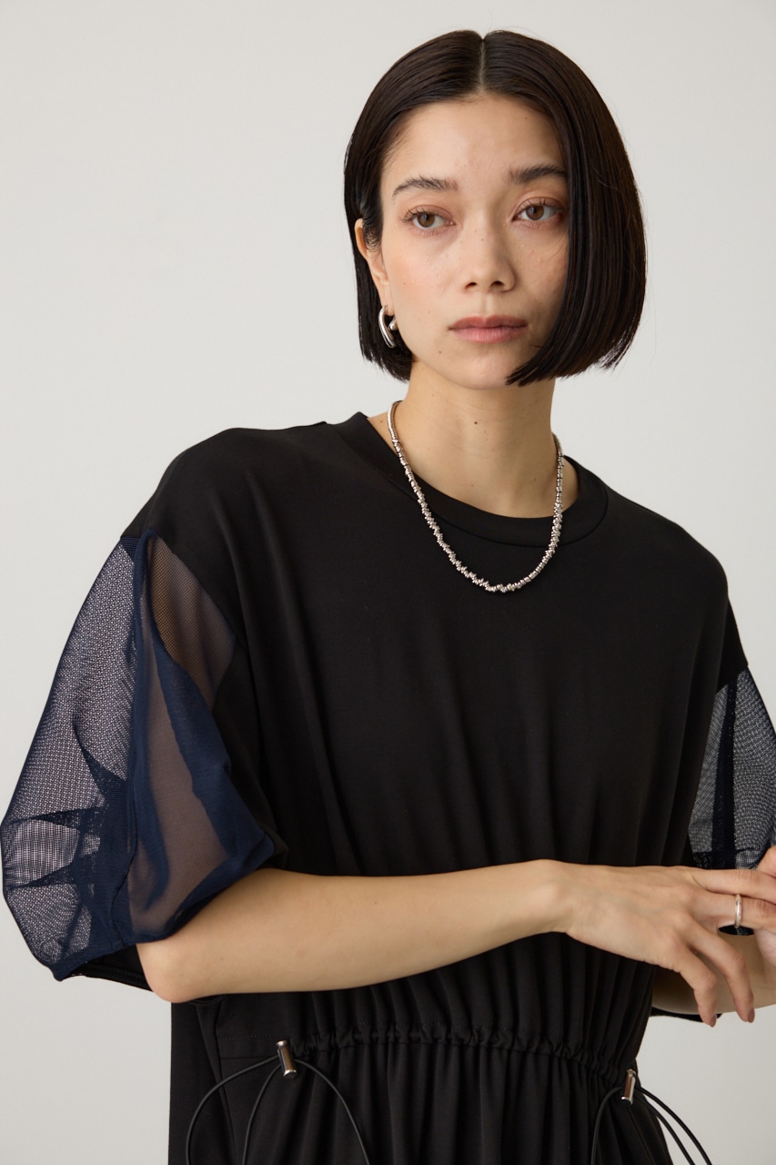 ■商品ポイント:袖のメッシュドッキングがポイントのカットソーワンピースになります。