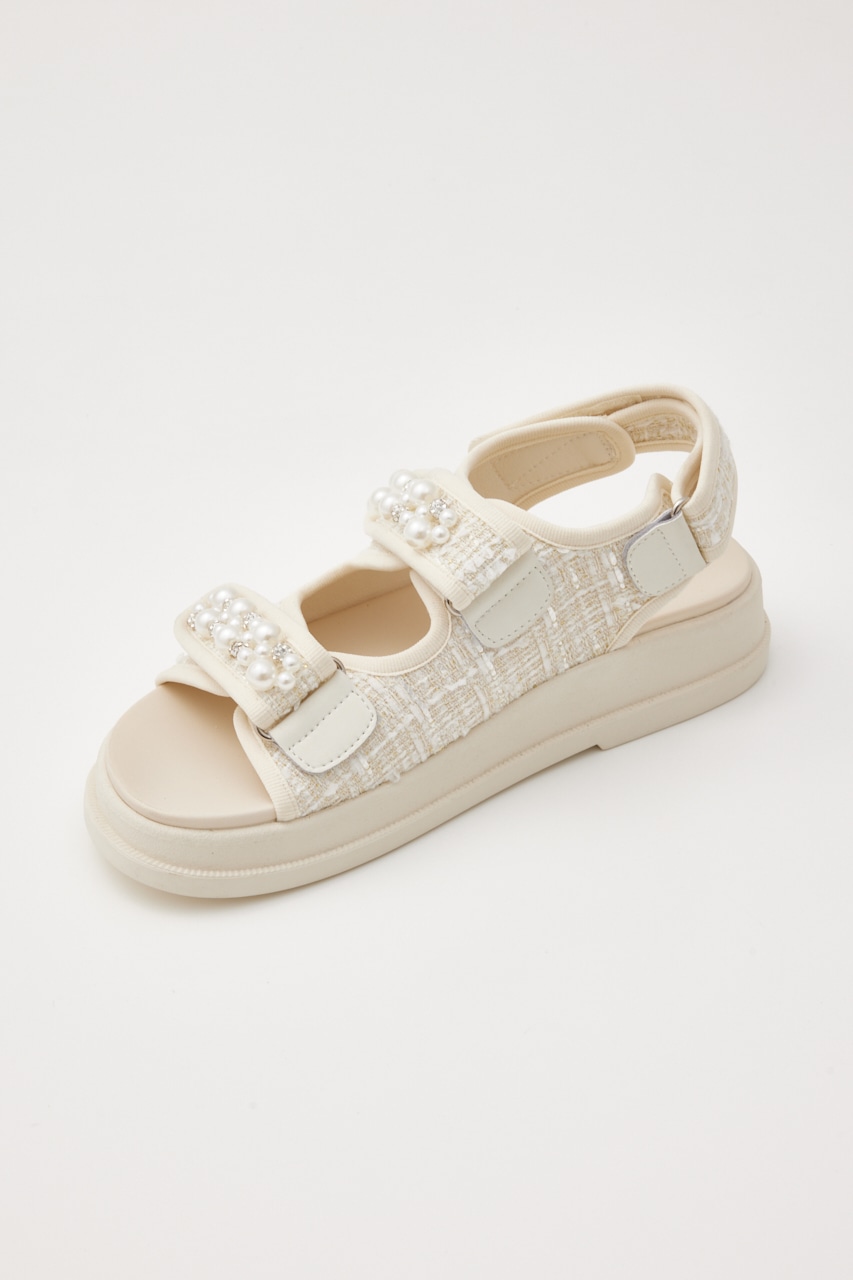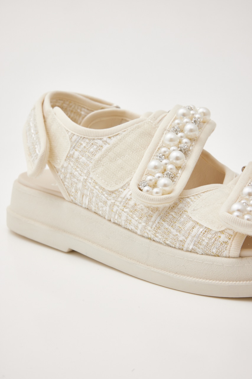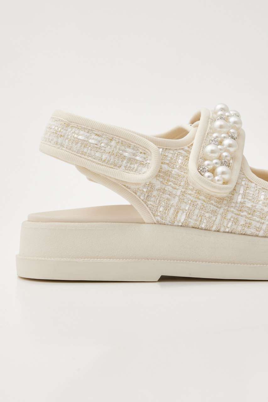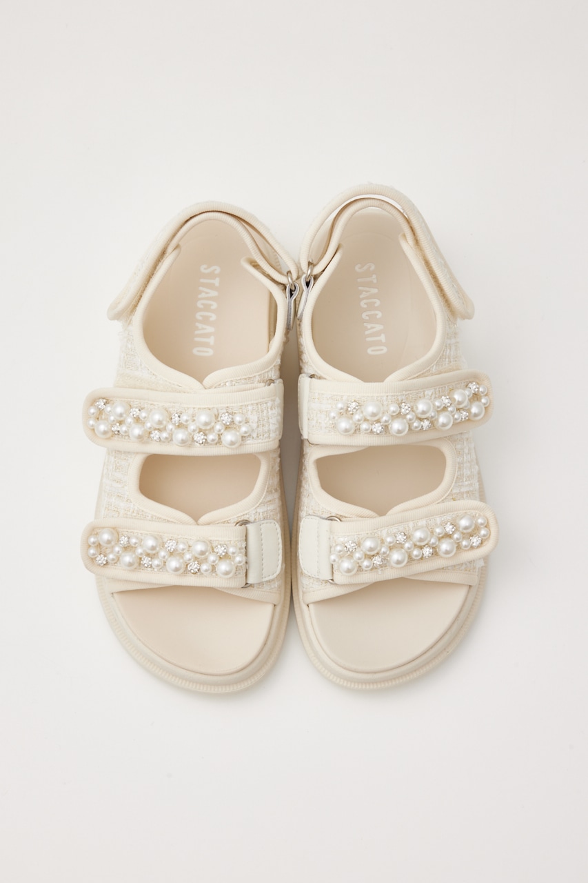 秋口まで大活躍してくれる、華やかなデザイン装飾がSTACCATOらしいカジュアル&エレガントな雰囲気が人気のスポサンに新デザインが登場!ゴージャスなパールデザインに上品で大人っぽいMIXツイードがカジュアルからキレイ目まで、様々なスタイリングにも相性◎。甲&かかとのベルト部分は全てベルクロタイプでサイズ調節も可能です。