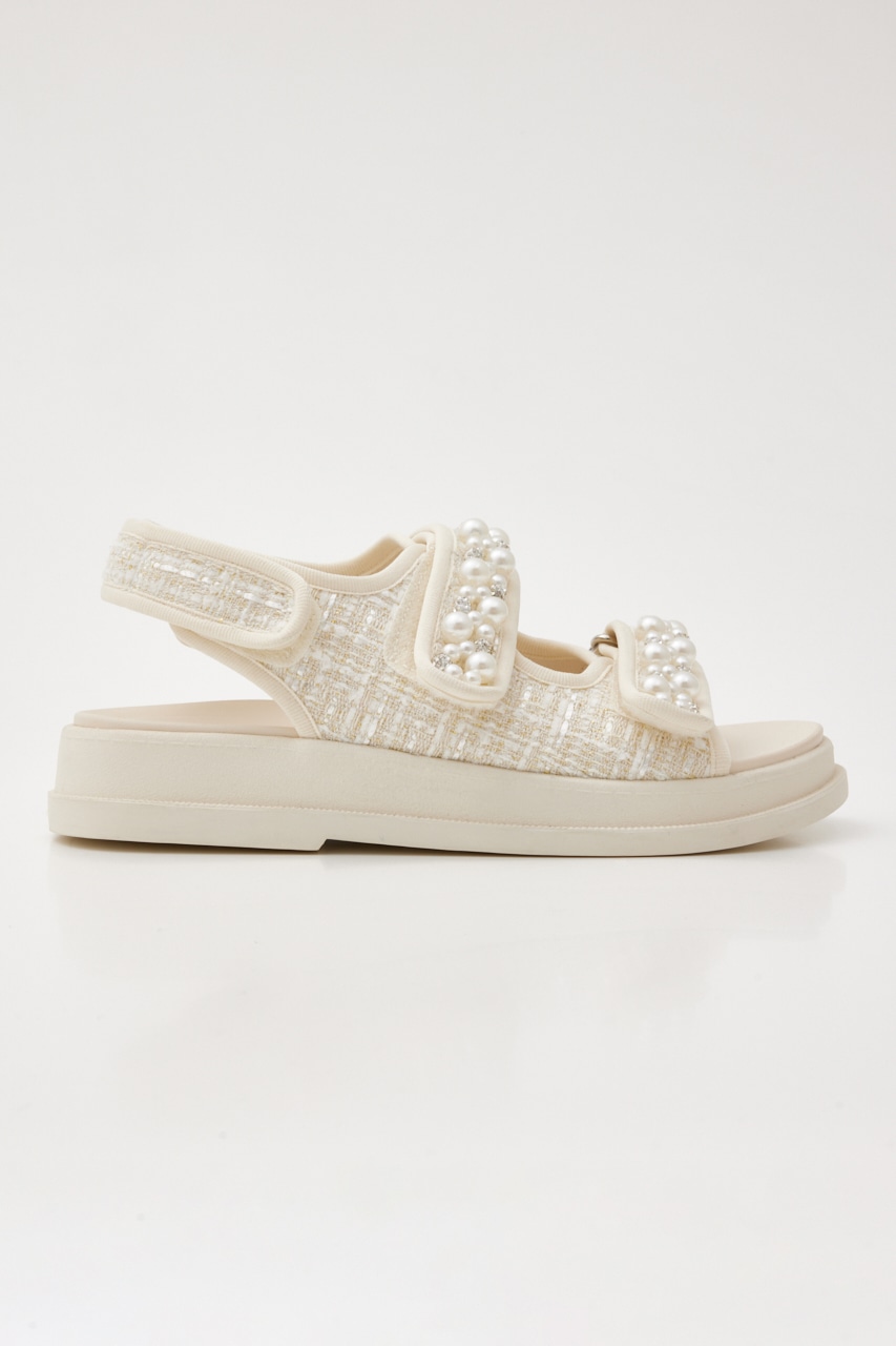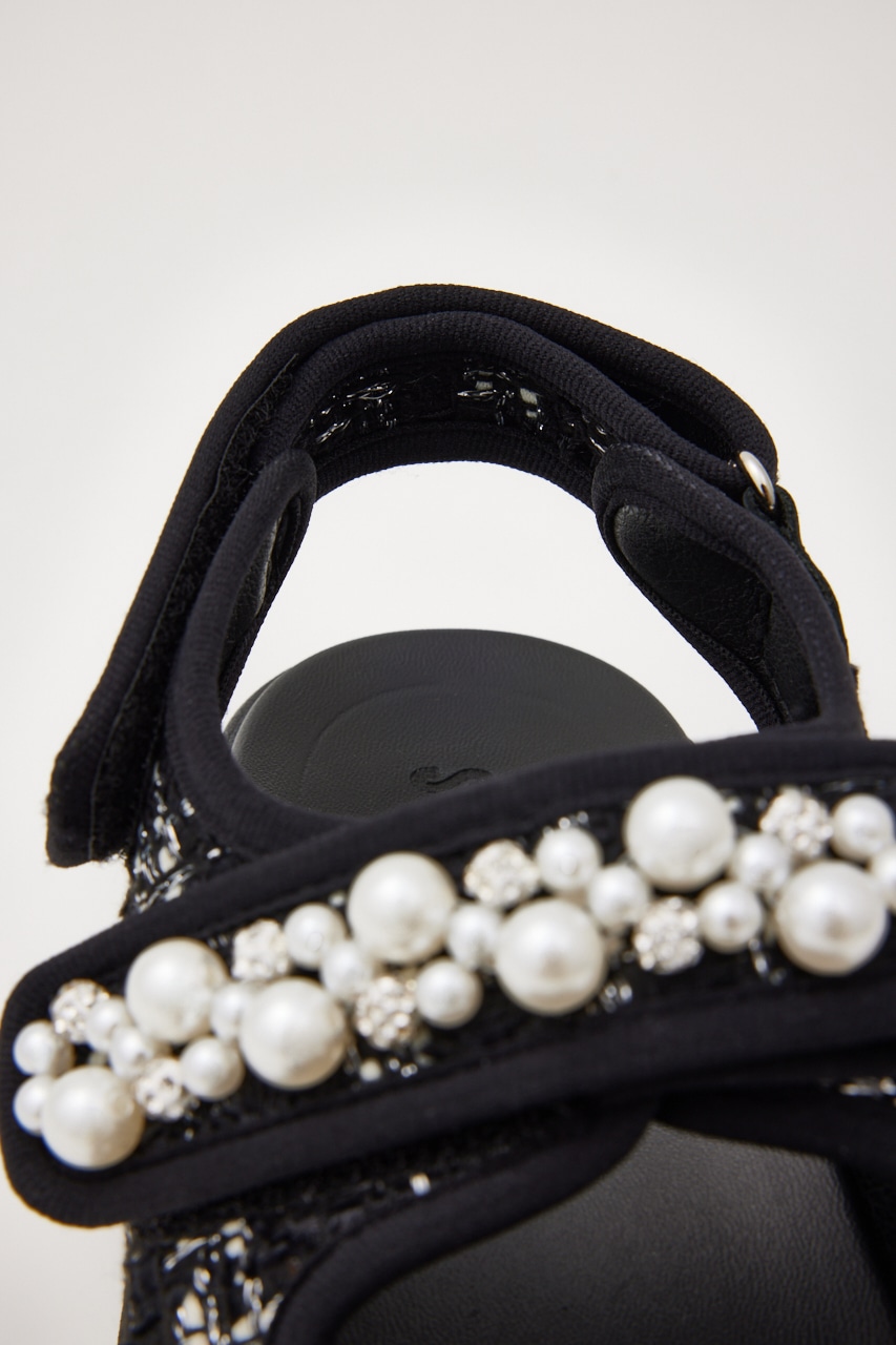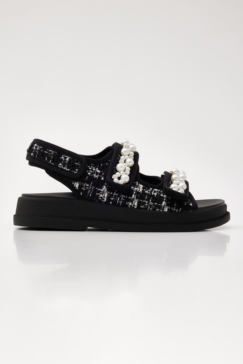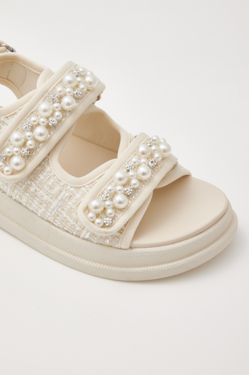 秋口まで大活躍してくれる、華やかなデザイン装飾がSTACCATOらしいカジュアル&エレガントな雰囲気が人気のスポサンに新デザインが登場!ゴージャスなパールデザインに上品で大人っぽいMIXツイードがカジュアルからキレイ目まで、様々なスタイリングにも相性◎。甲&かかとのベルト部分は全てベルクロタイプでサイズ調節も可能です。