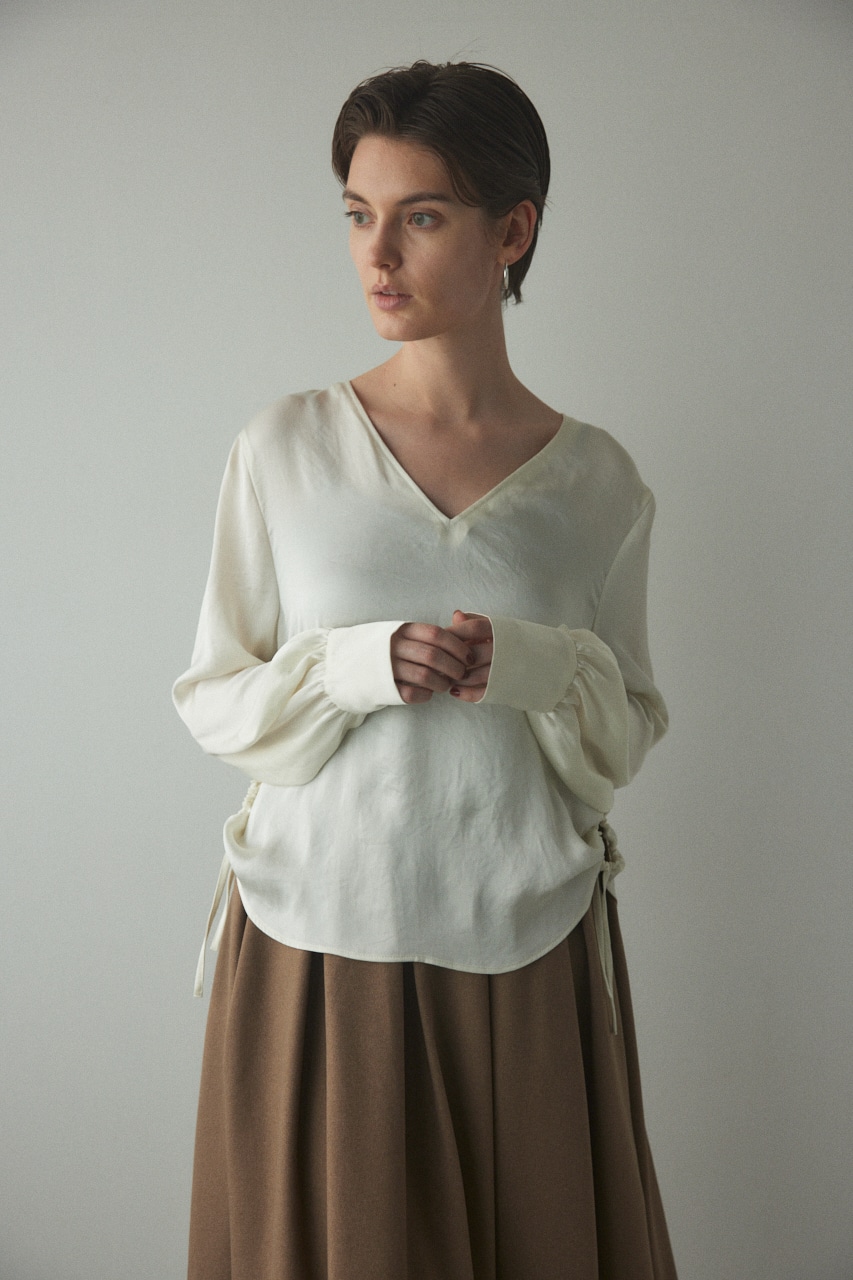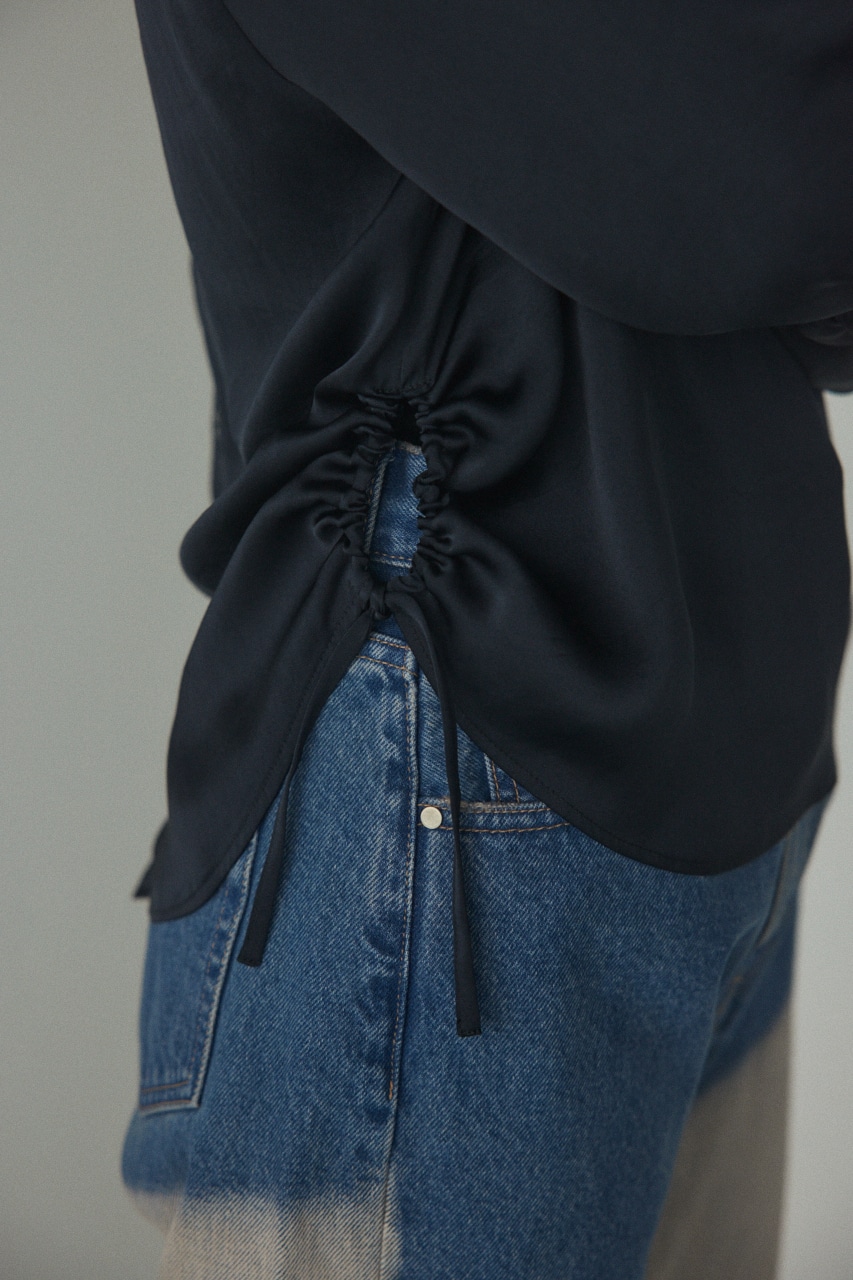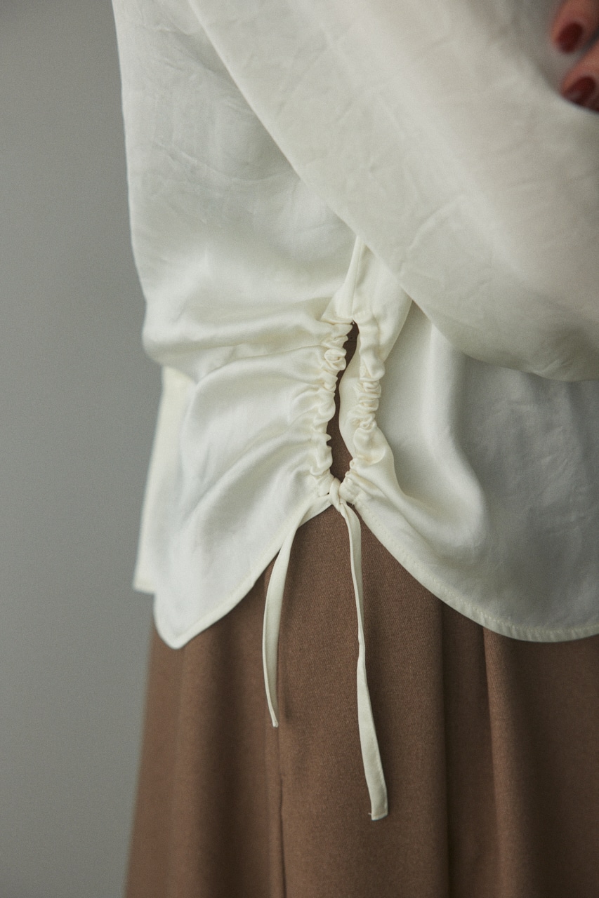 サイドには紐が通っており、シャーリングをしたデザインも楽しめます。