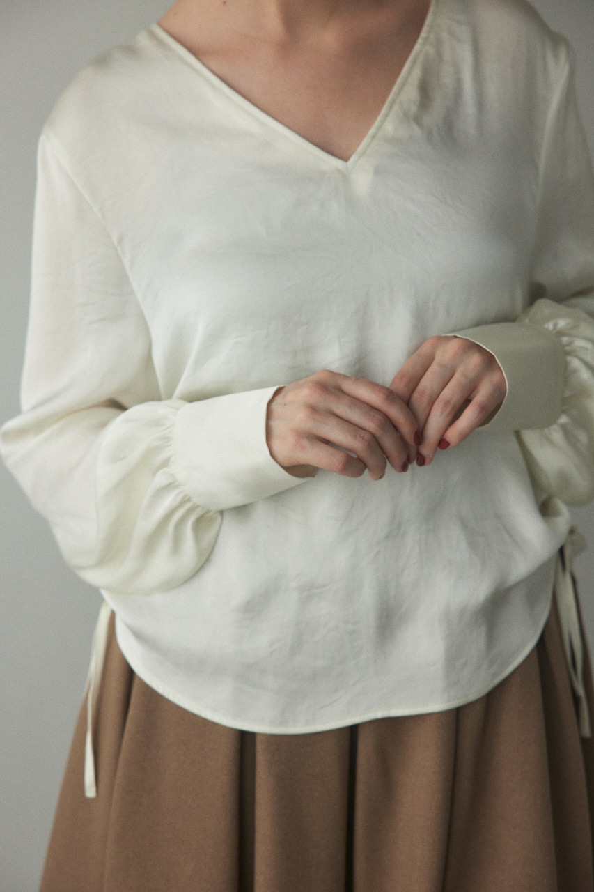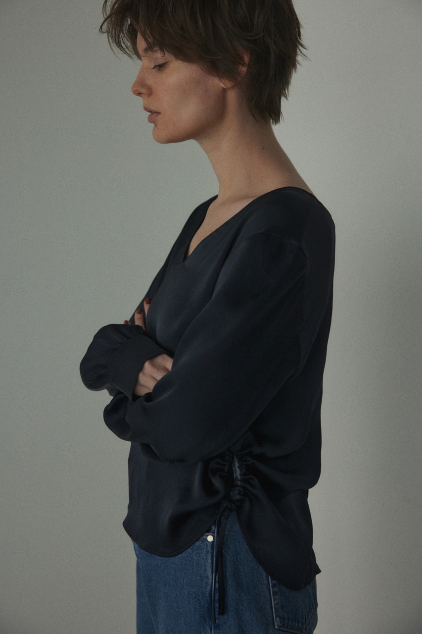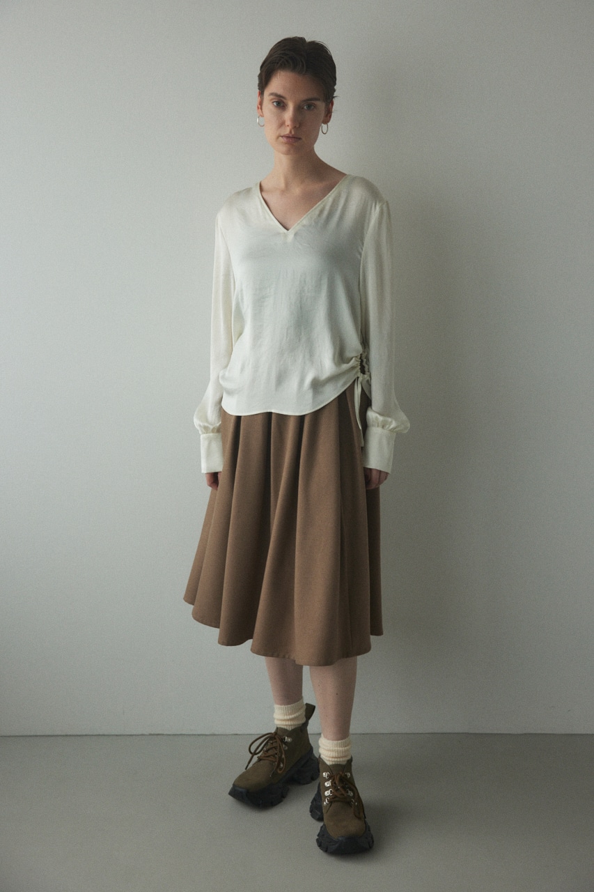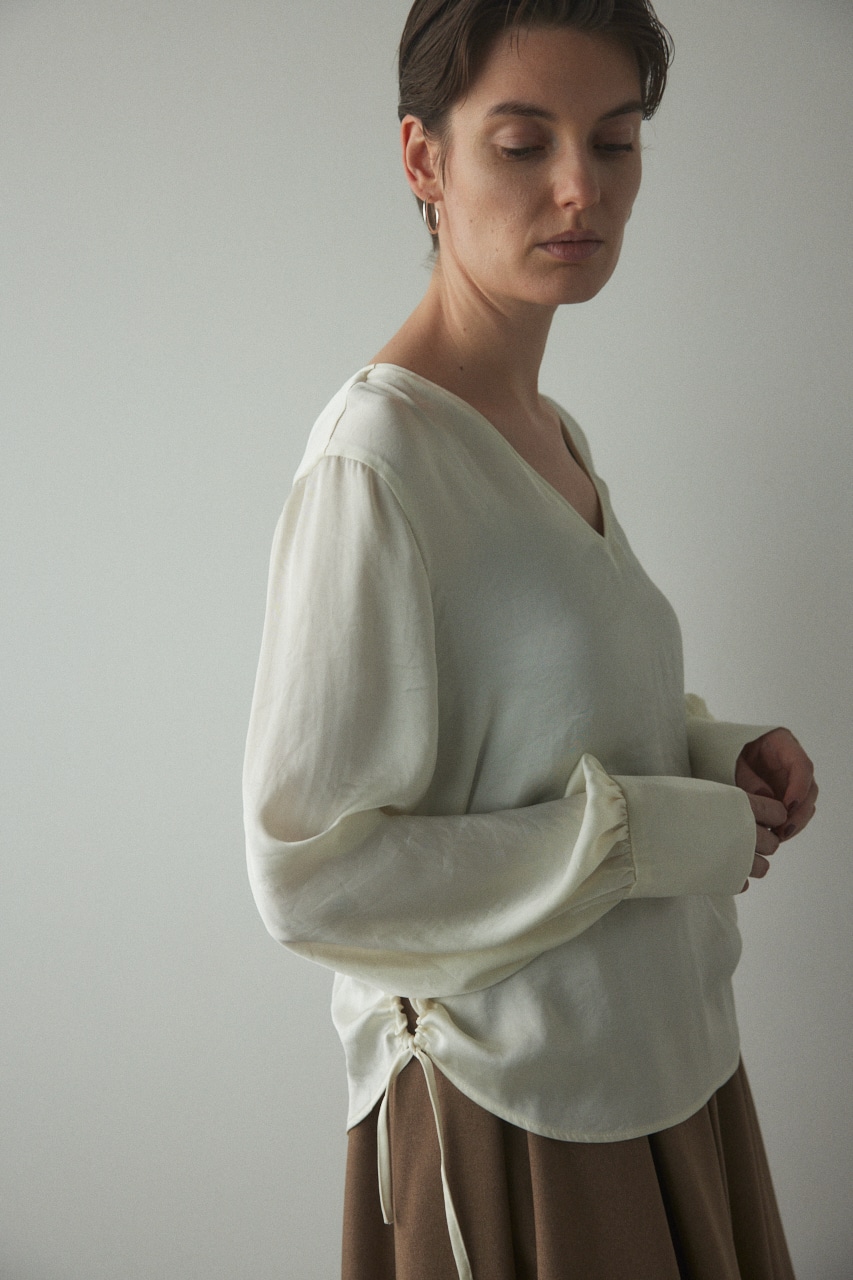 サイドには紐が通っており、シャーリングをしたデザインも楽しめます。