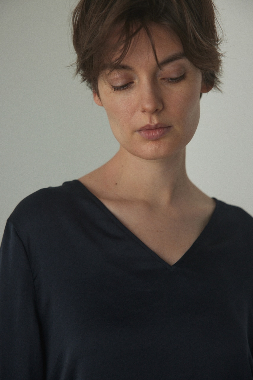 上品な光沢感としなやかなドレープ感が特長の素材です。洗濯機洗い可能になります。