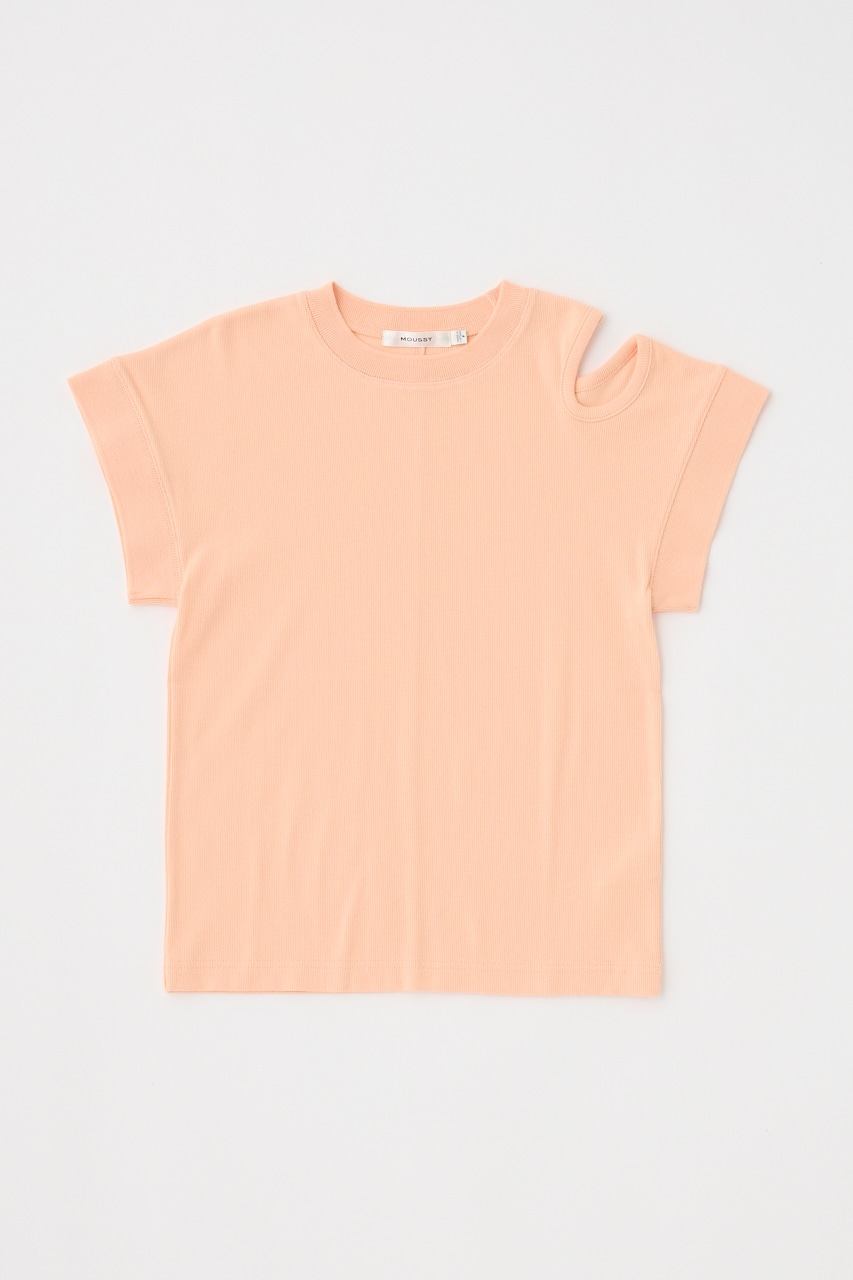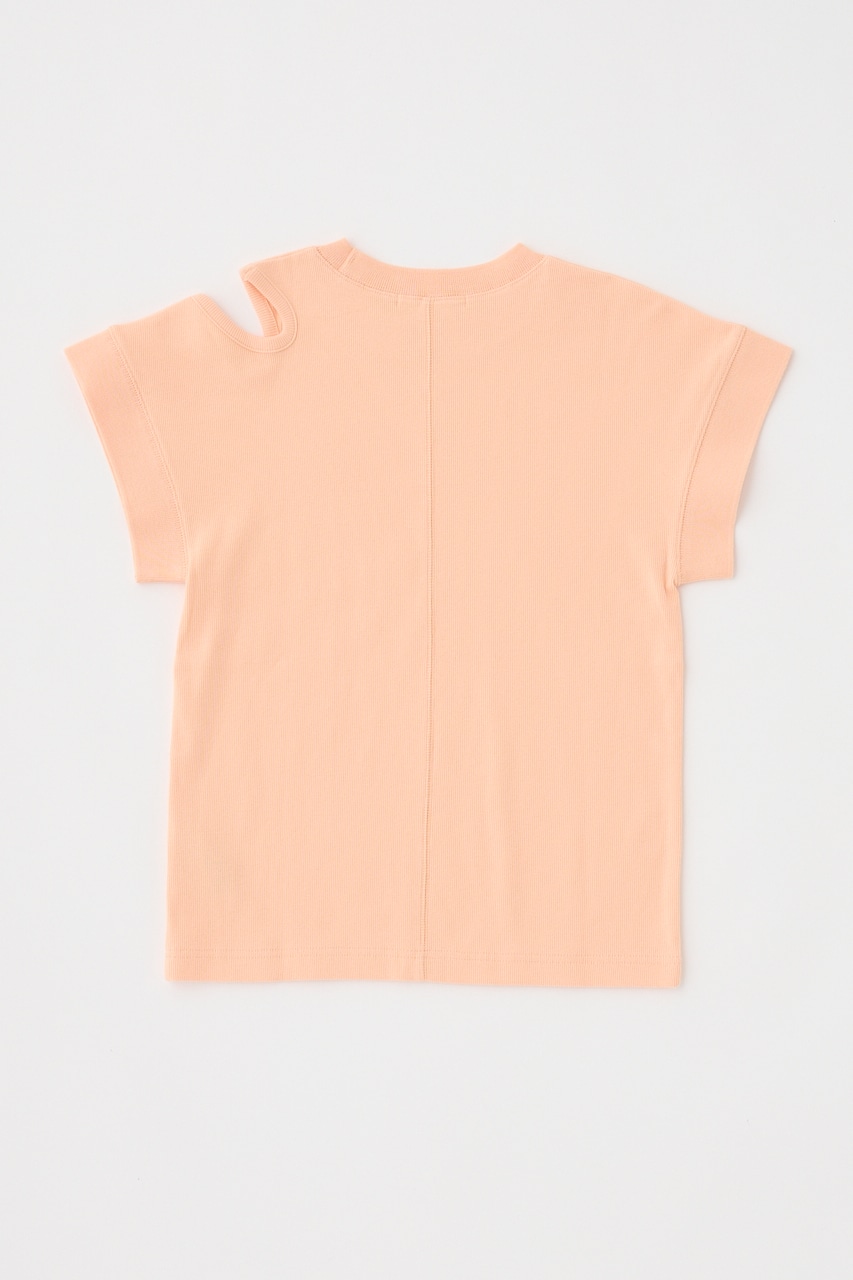 ショルダー部分のカットアウトディテールがポイントの、ベーシックすぎないベーシックリブTシャツです。