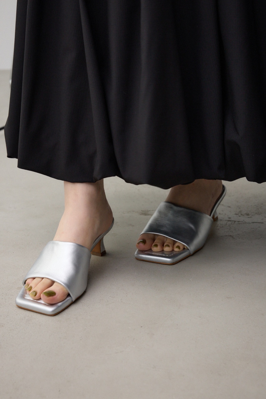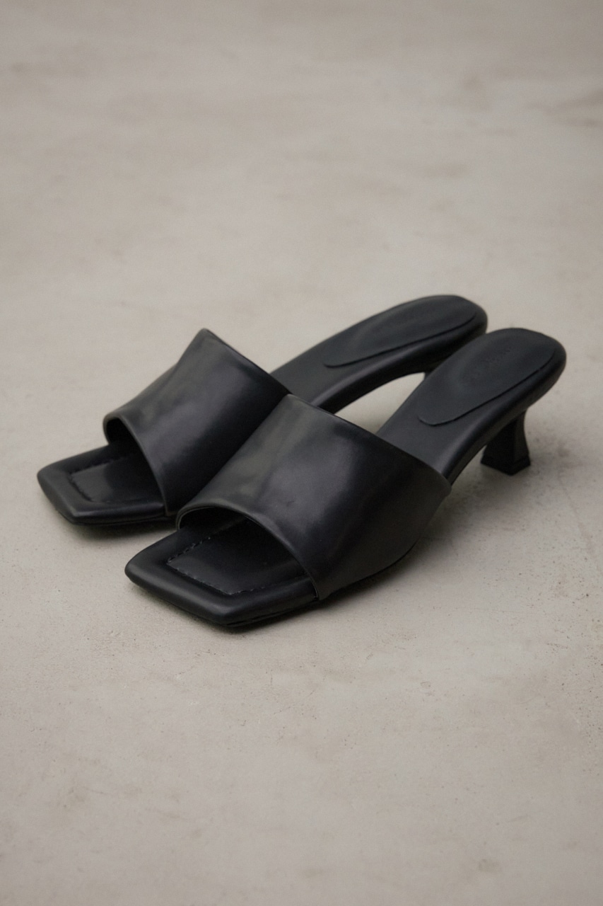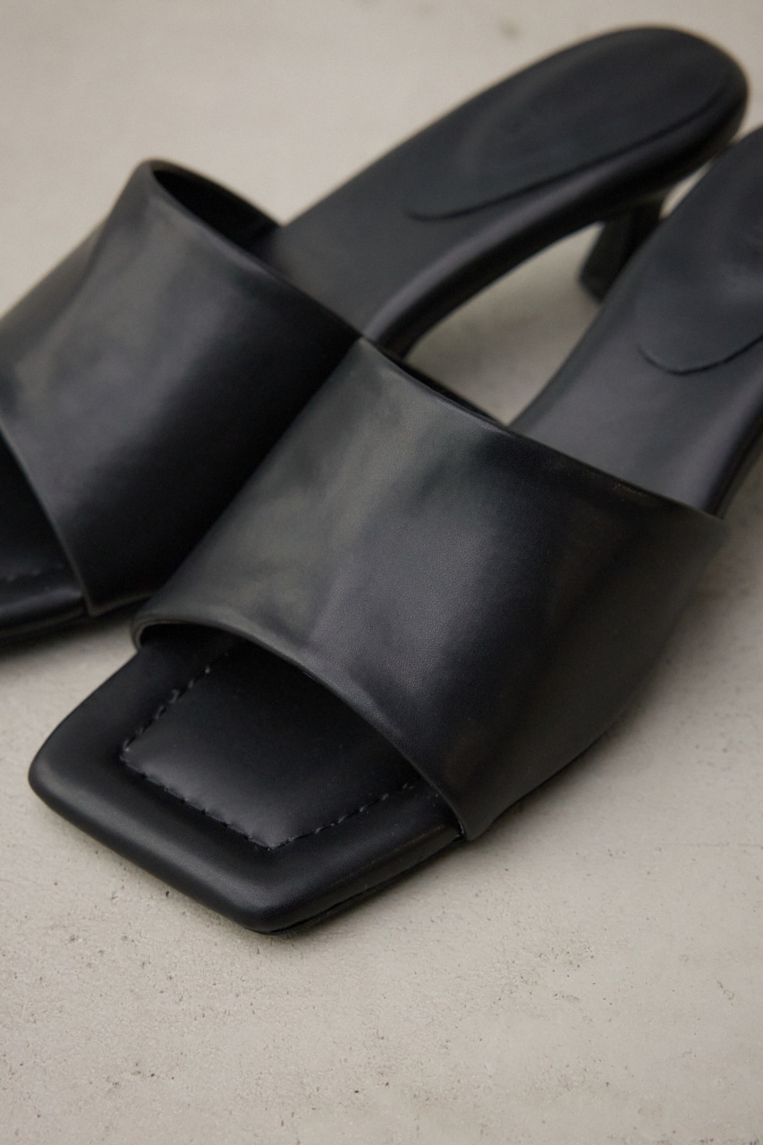 ■商品ディティール: アッパーのストレッチ素材がフィット感抜群のミュール。トレンドのスクエアトゥを取り入れたモード感満載なデザイン。