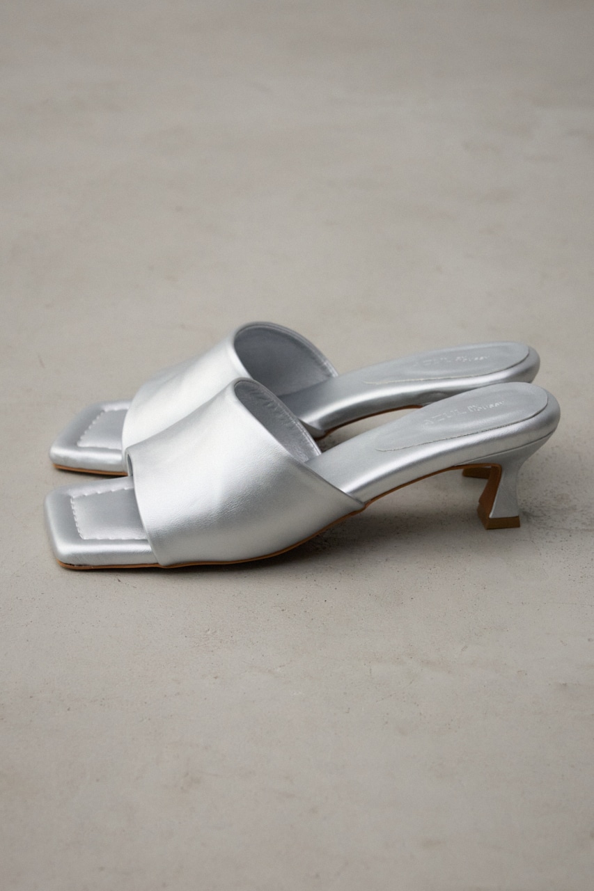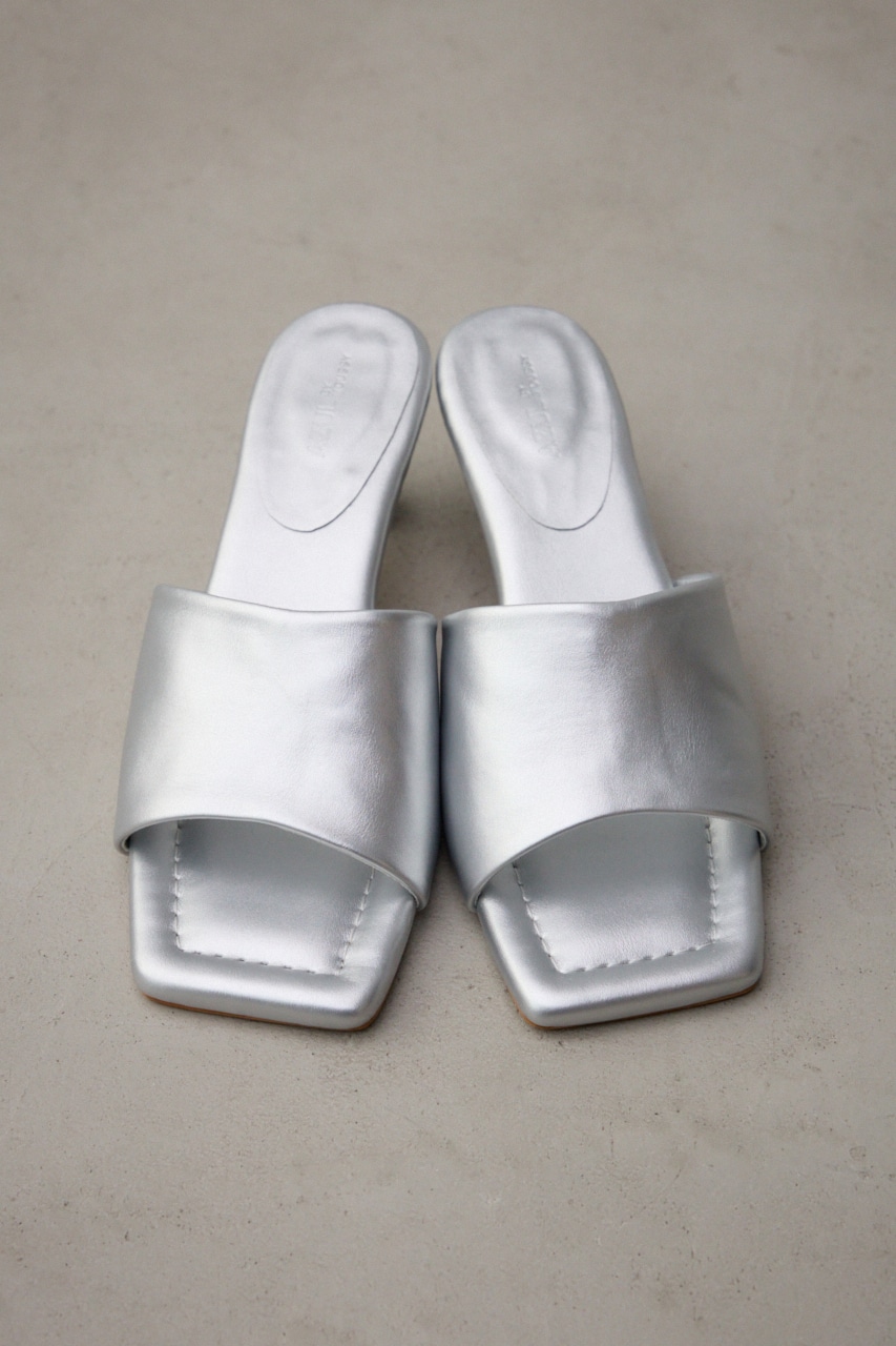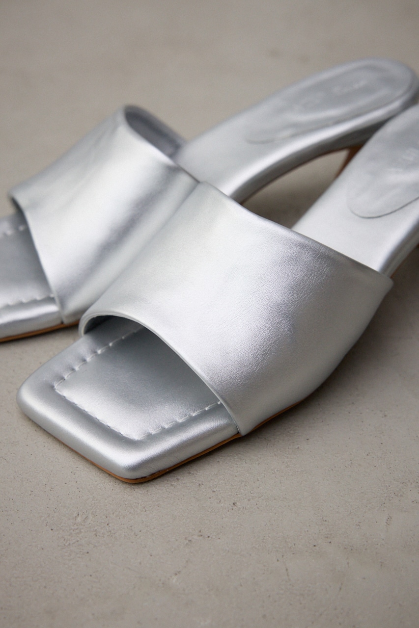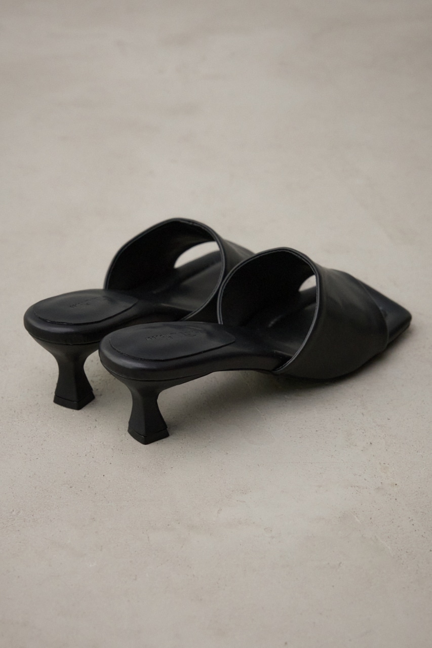 ■商品ディティール: アッパーのストレッチ素材がフィット感抜群のミュール。トレンドのスクエアトゥを取り入れたモード感満載なデザイン。