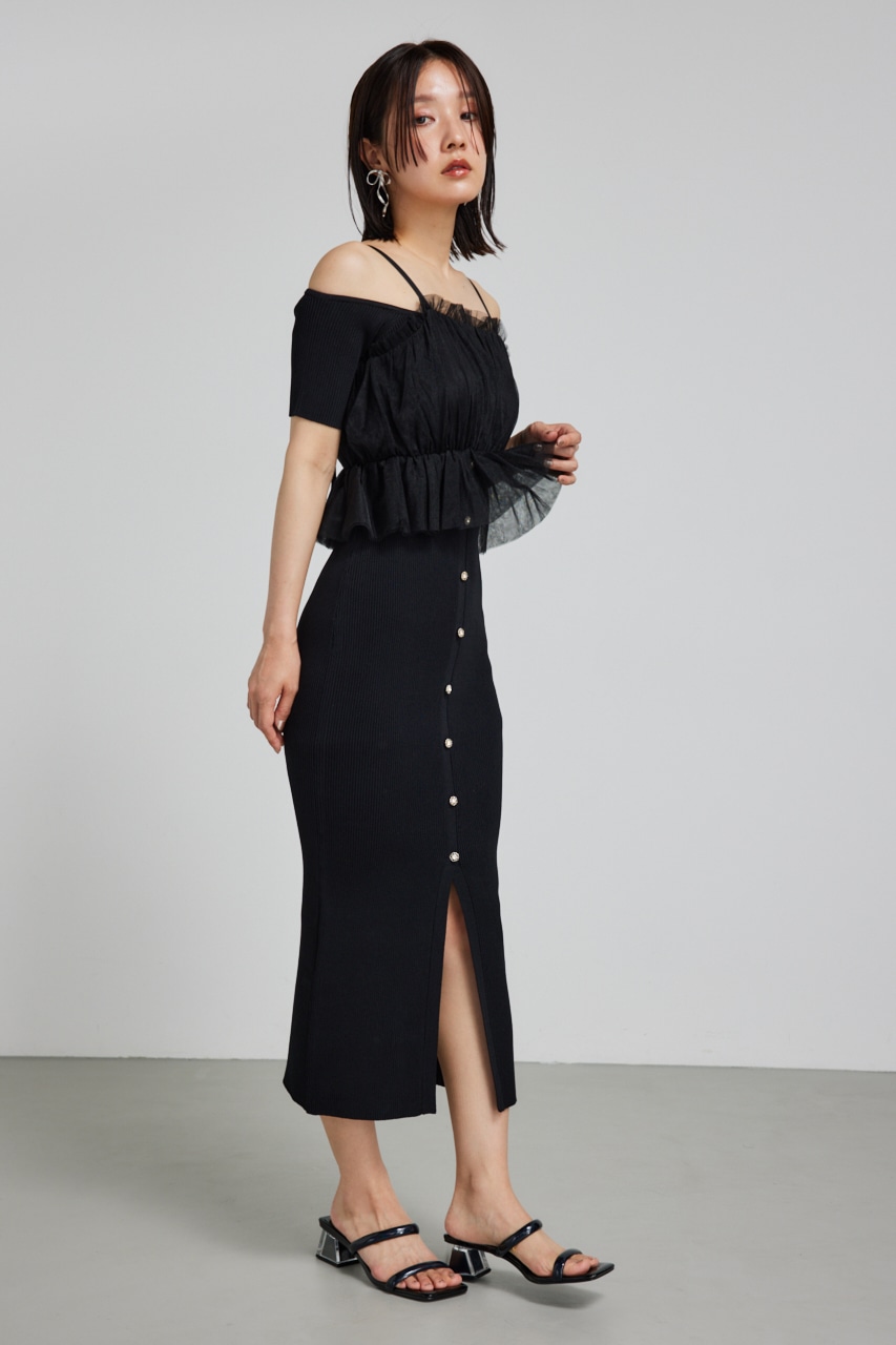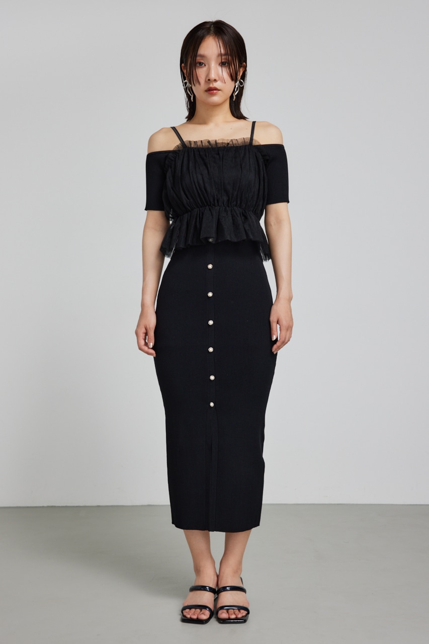 透け感のあるエアリーなチュールとニットワンピを組み合わせて、