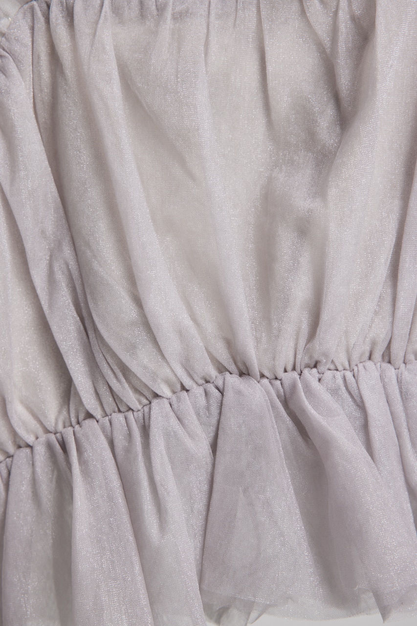 キャミソールビスチェは、チュールにたっぷりとギャザーを寄せて愛らしさを追求。