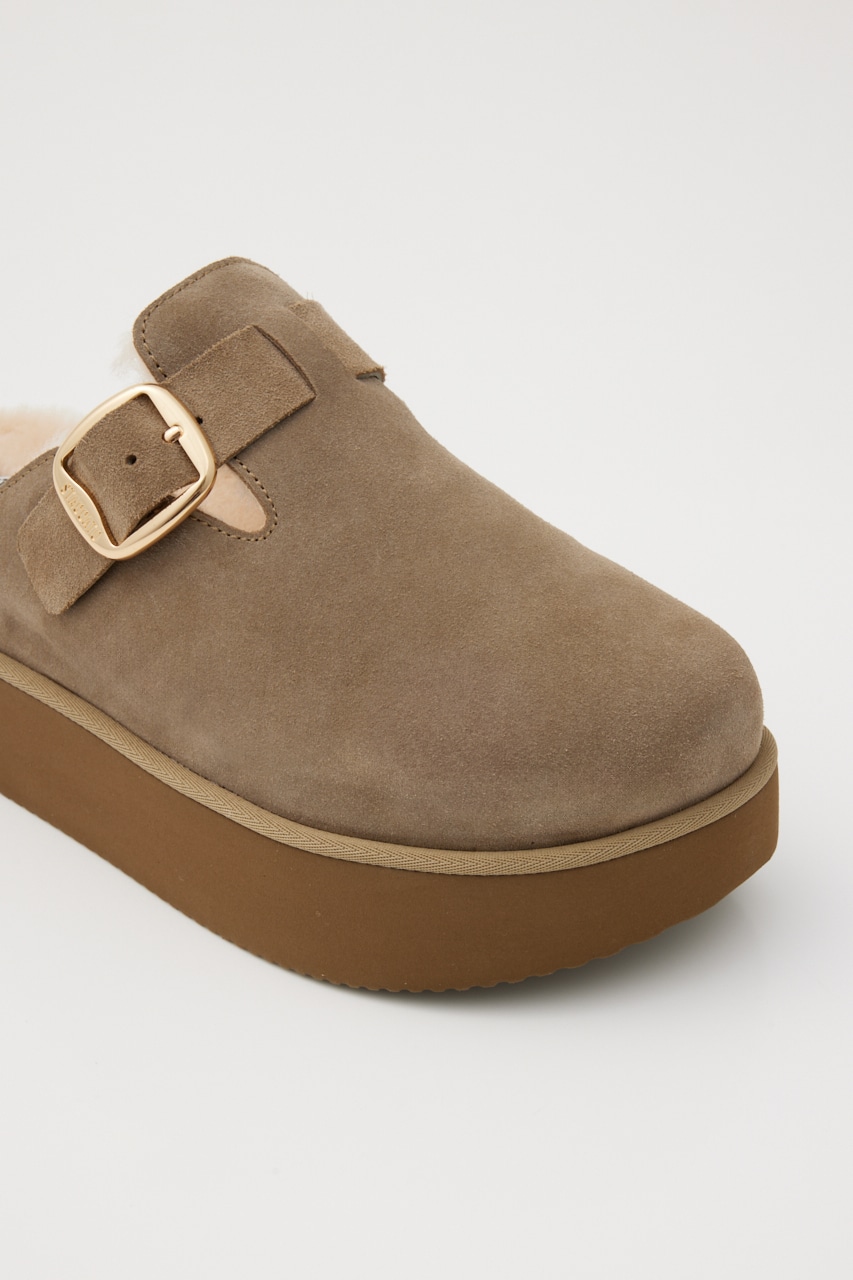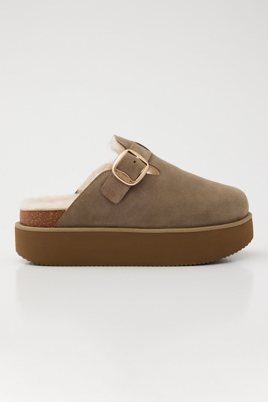 今ホットなさっと履ける厚底サボサンダル。しなやかなスエードレザーにふわふわのシープレザーのライニングで秋冬の足元をおしゃれに温かく包み込んでくれます。厚底のプラットフォームソールが脚長効果かつスタイリングのバランスも取りやすい。ベルト部分は調節も可能です。