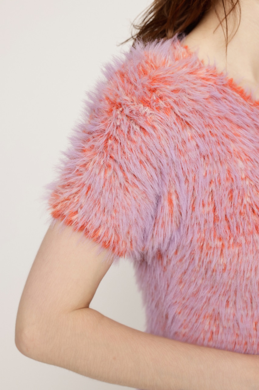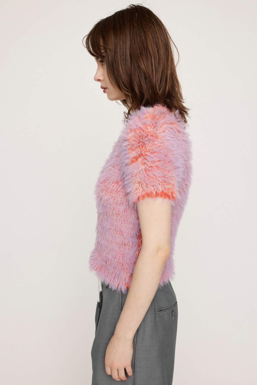 ■POINT:毛足の違うニットシャギー素材をオリジナルカラーでミックスした半袖トップス。