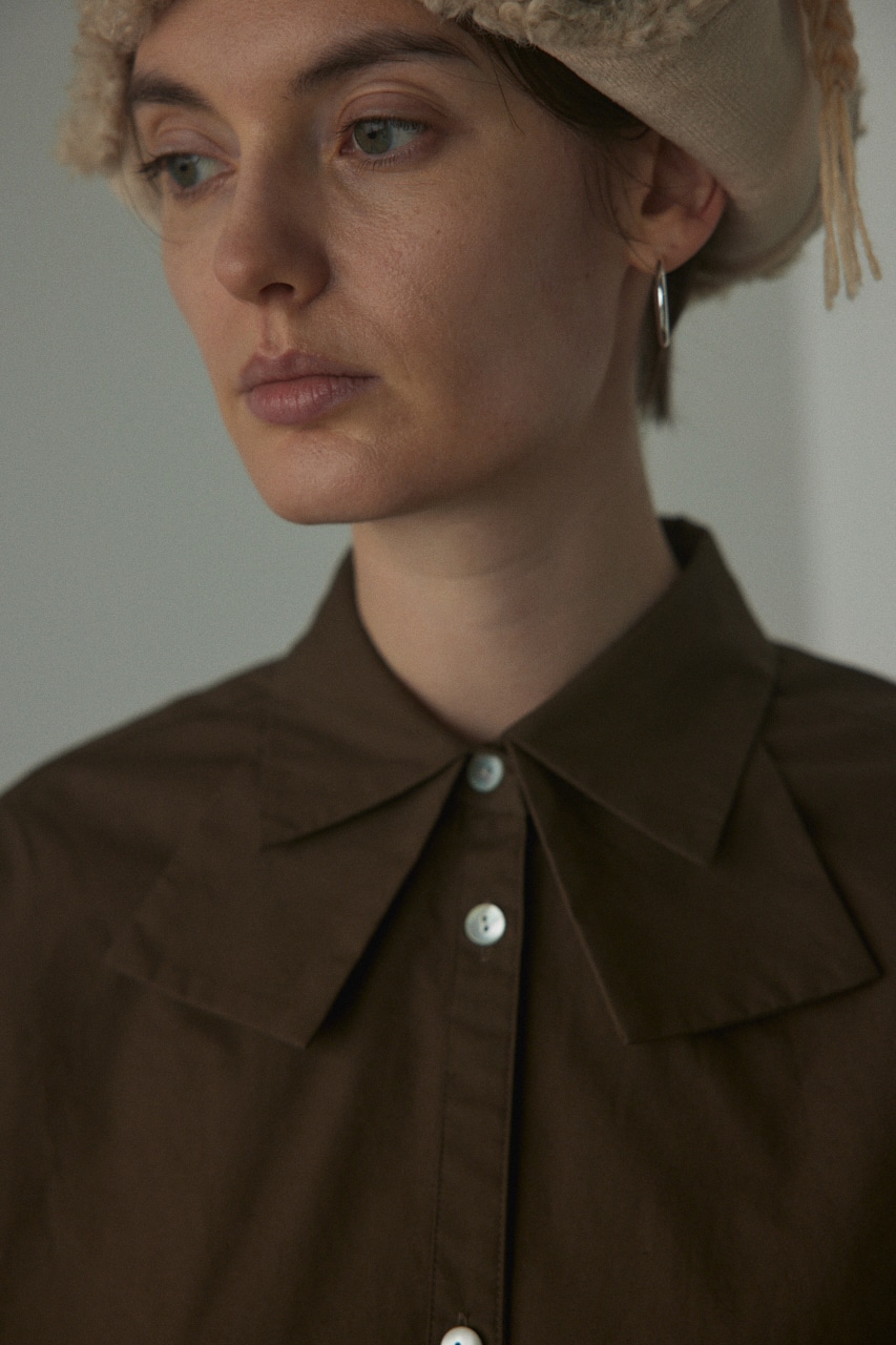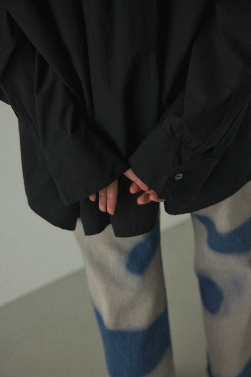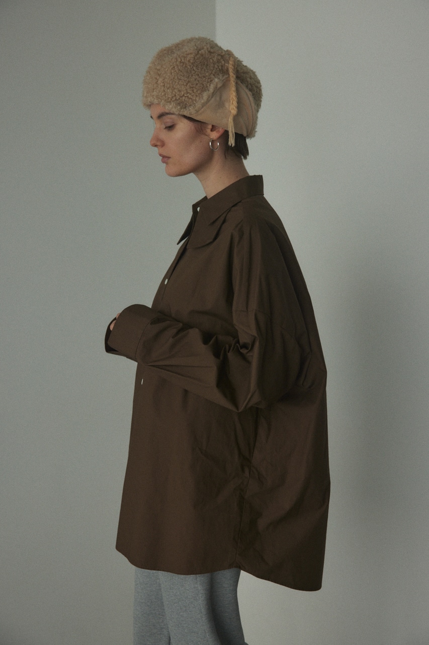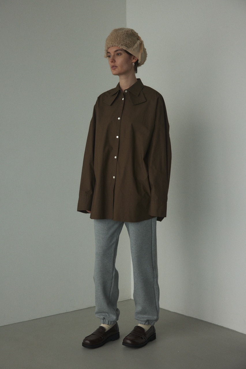ネック部分が2枚重なっているようなデザインがポイントのオーバーサイズシャツ。