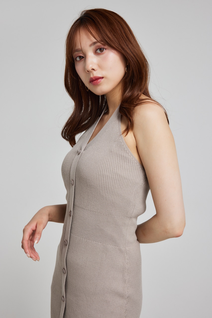 【ホルターネックが女性らしさが引き立つ着心地のよい美シルエットニットワンピ】