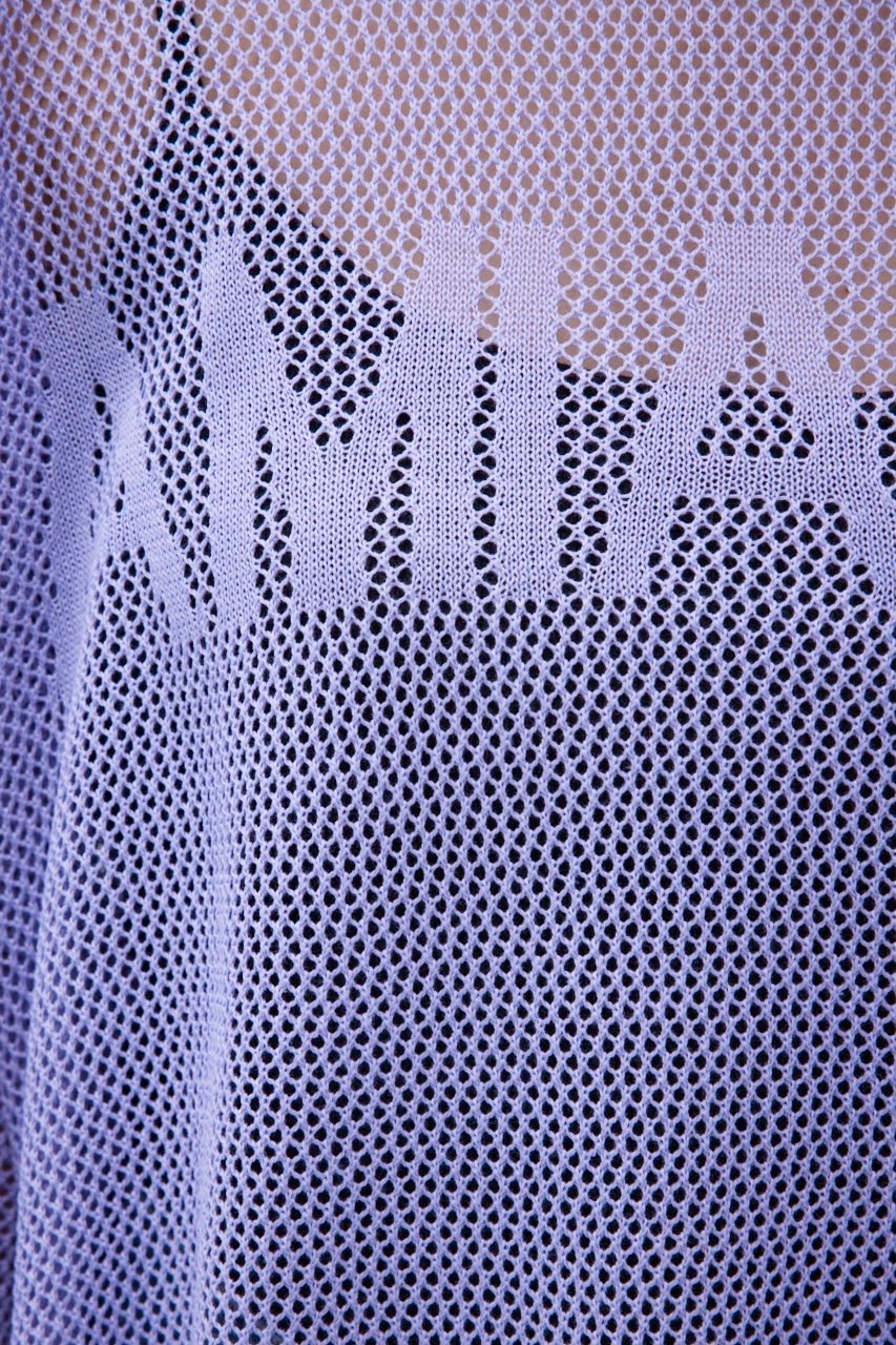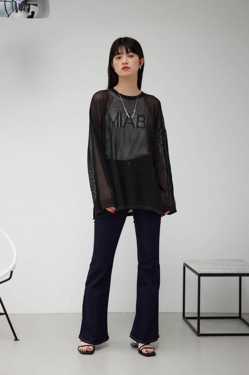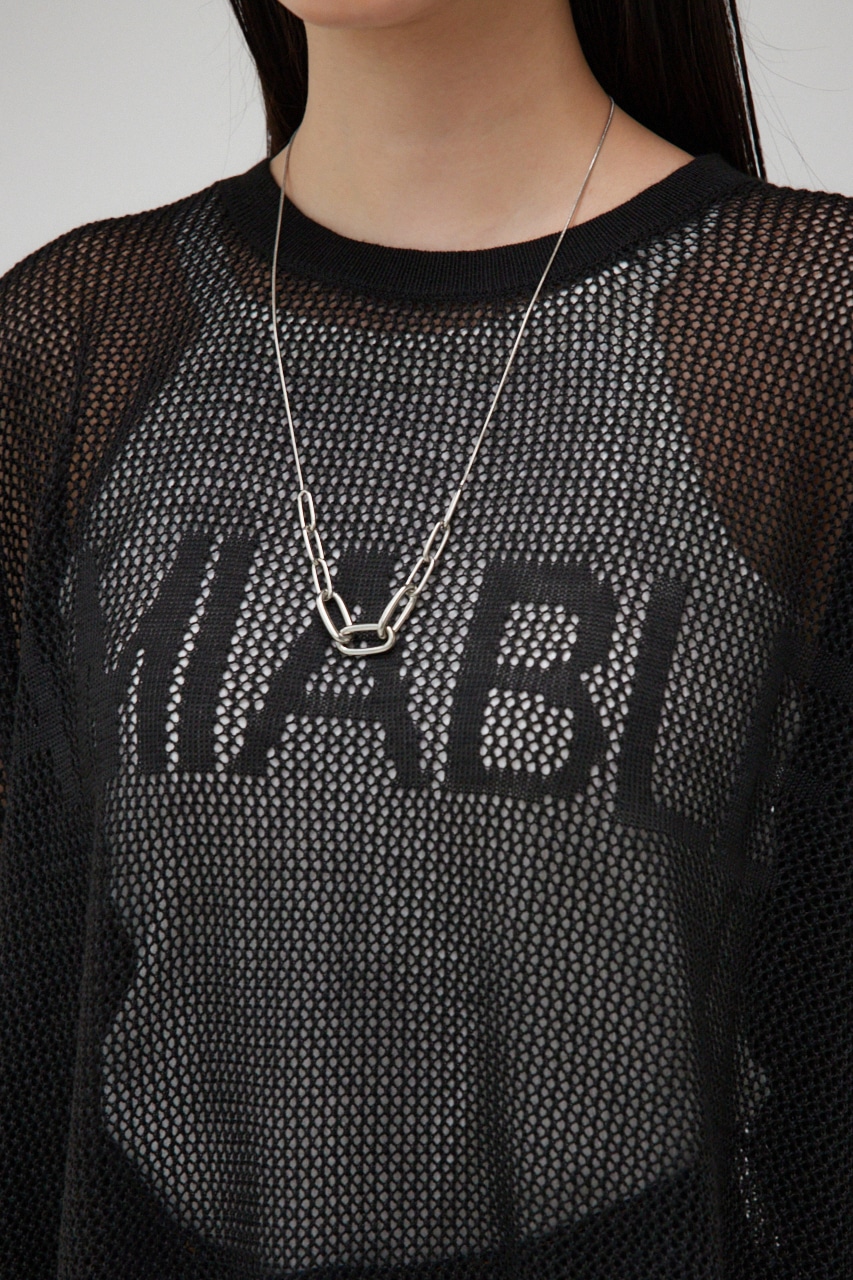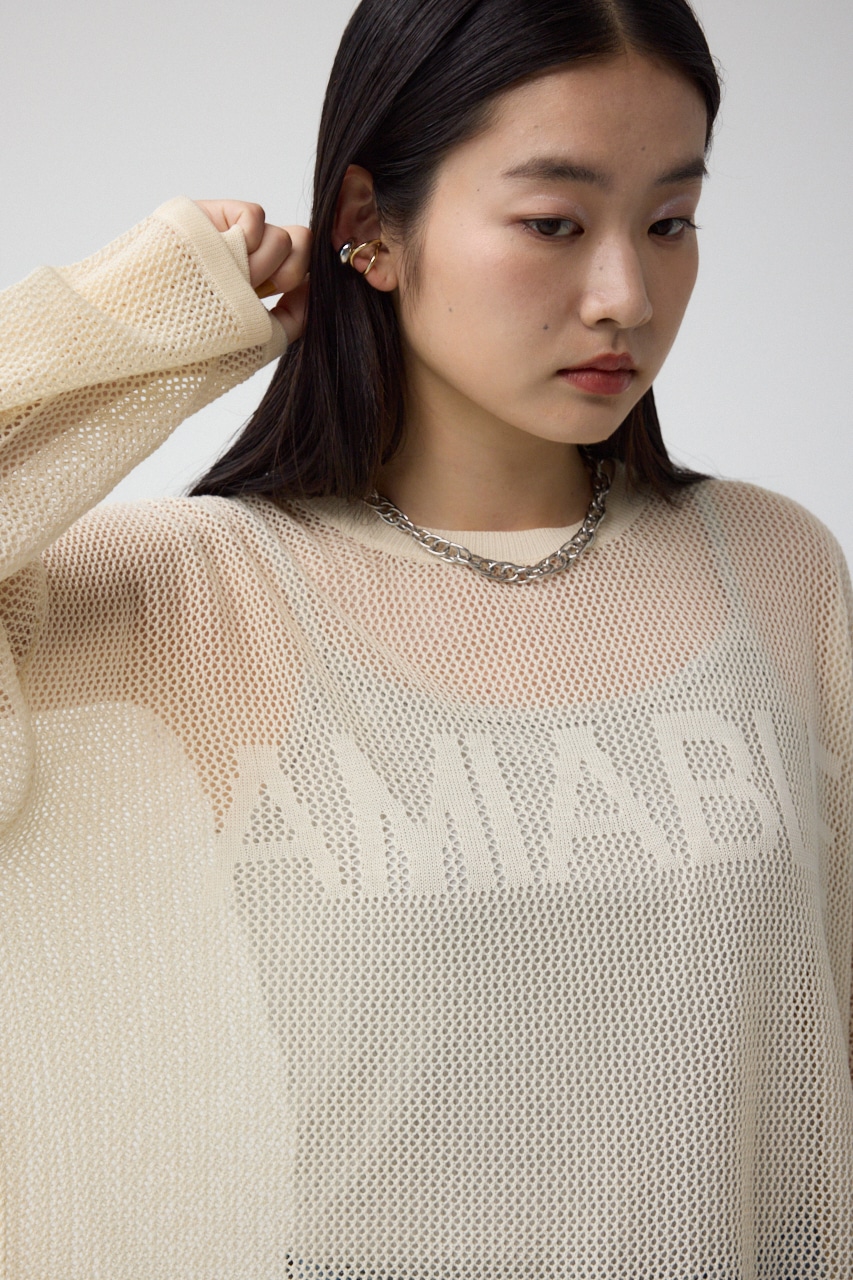 フロント部分にはジャガードのロゴ入り。抜け感のあるシルエットと程よい透け感で大人っぽく着られるロゴニットです。