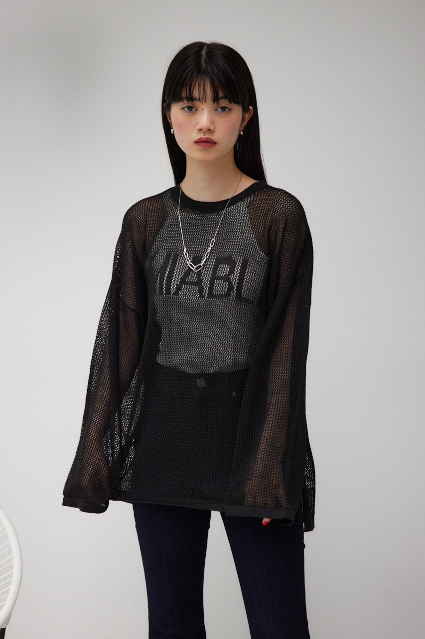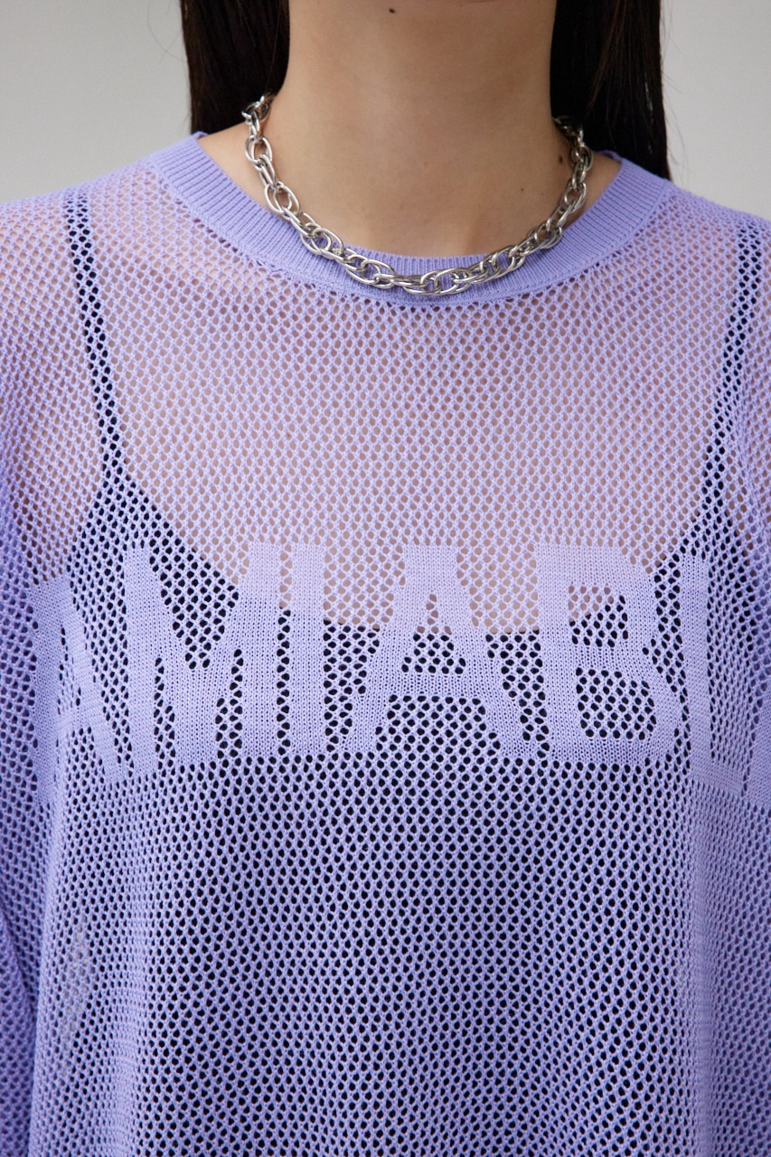 ■商品(デザイン)ポイント:フロントロゴのメッシュニットプルオーバー。