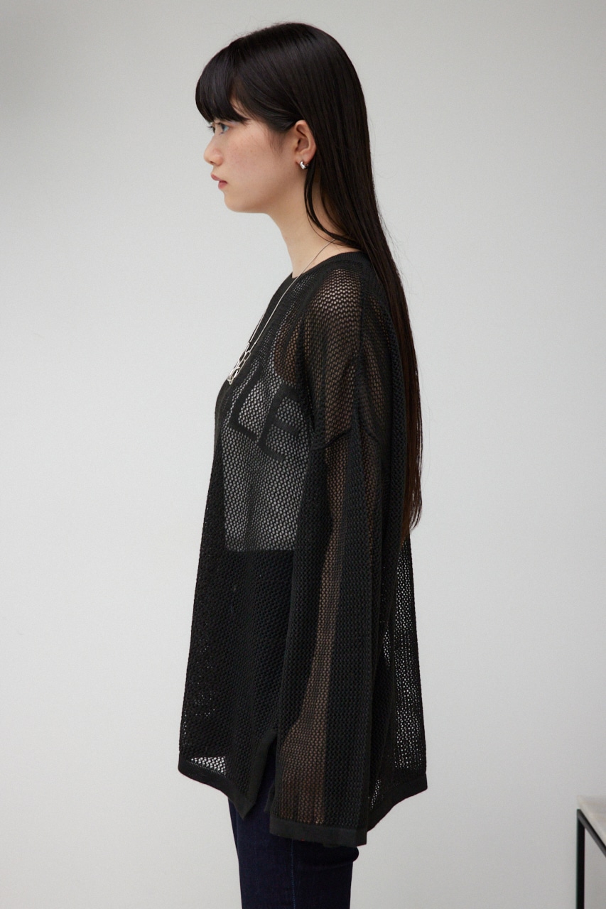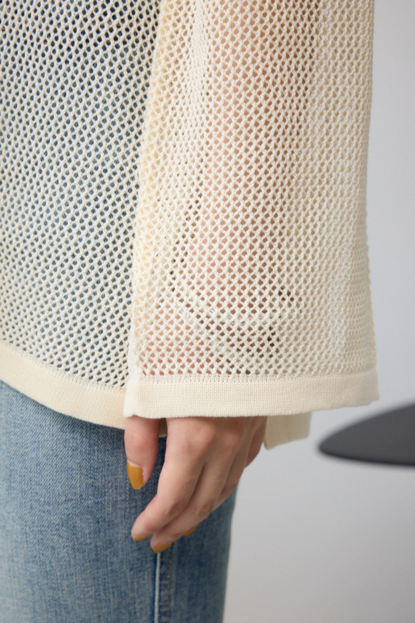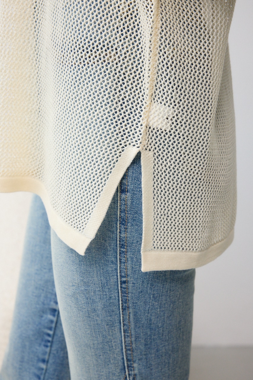■商品ディティール: コットンタッチのポリエステル糸し使用したメッシュニットトップス。