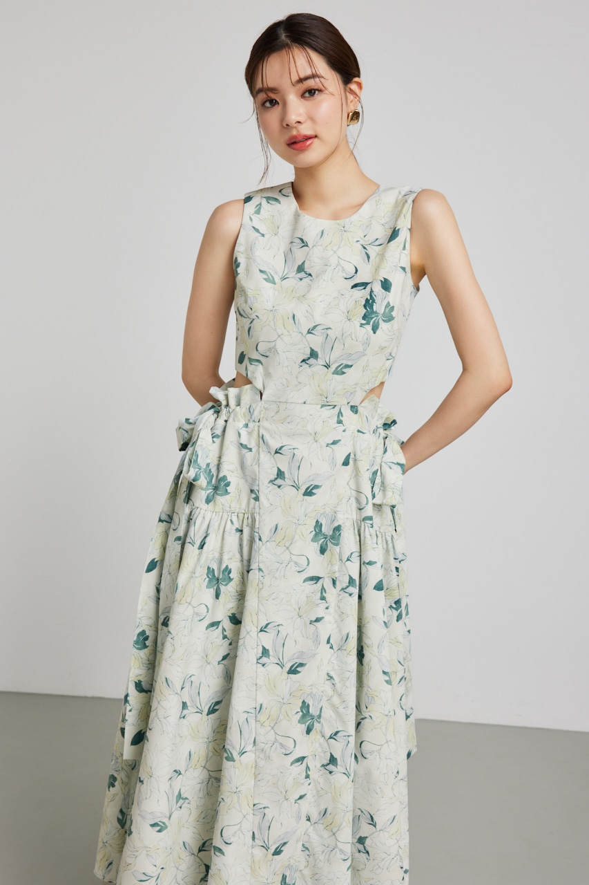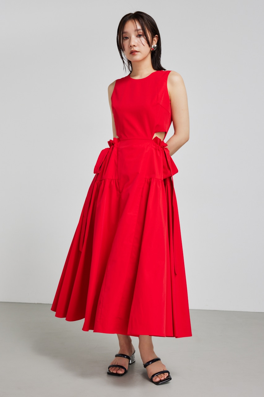 【脇のリボン結びがポイントのワンピース】