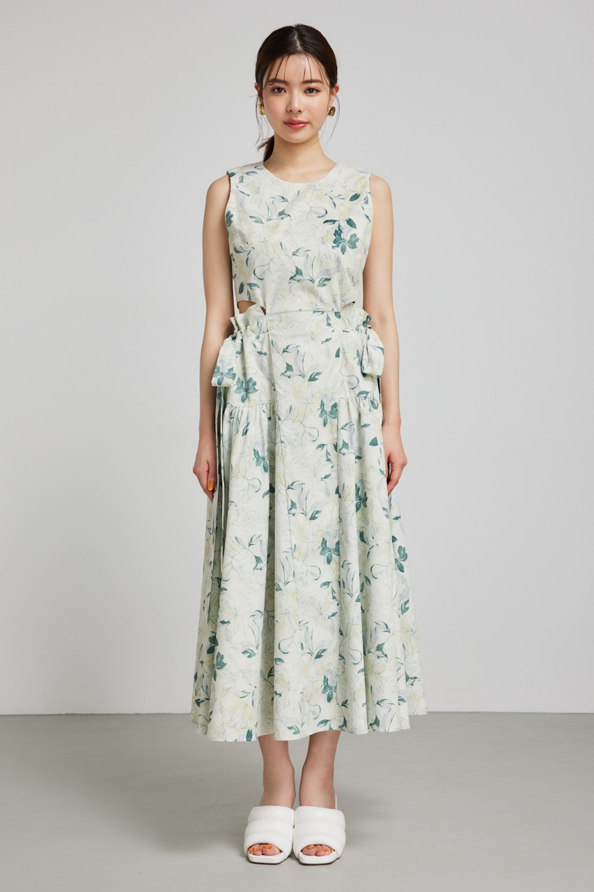 サイドリボンドロンストフレアワンピース