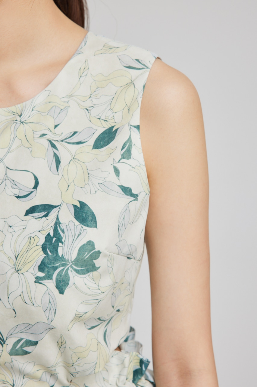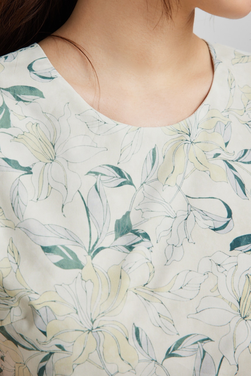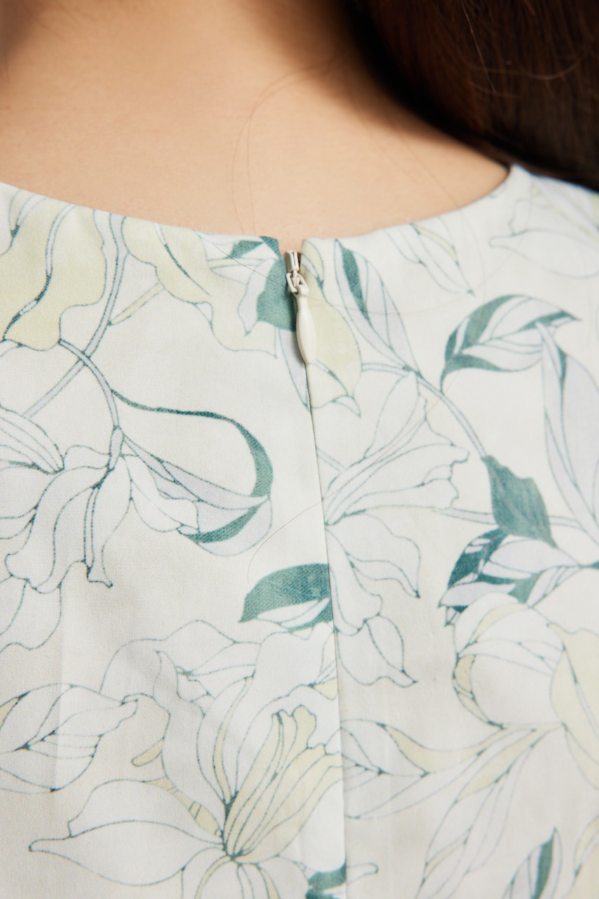 ワンピースの上に何か羽織れば脇開きは隠れてしまうので色々な着こなしが楽しめます。柄も落ちついた同色系の色使いでまとめました。