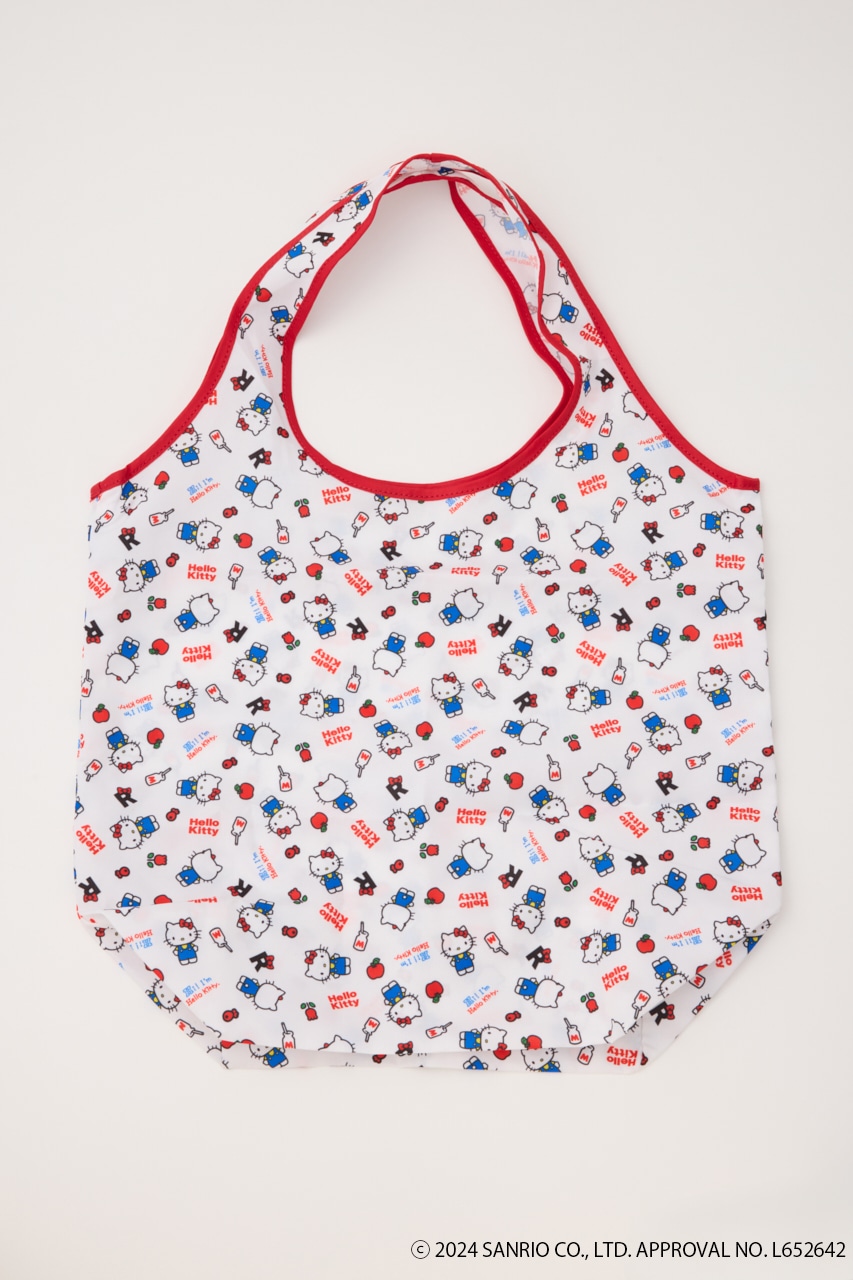 HELLO KITTY(ハローキティ)とのコラボレーションアイテム。キティちゃんのパターンと赤のパイピングがかわいいエコバッグです。パターンの中にはリボンをつけたRODEOのRロゴをミックス。チェーンで引っ掛けられるリボン型のポーチに収納できます。