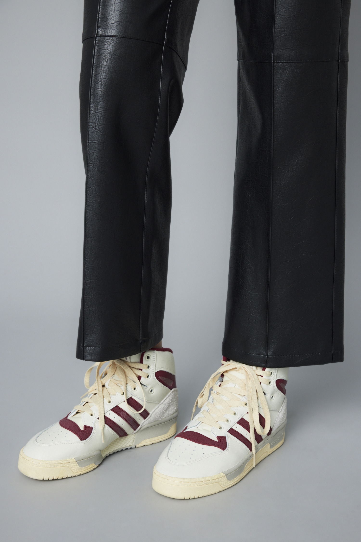 リアルレザーに近いシワ感などの表現もしっかりとしたアイテムで、ボトムスから印象的なスタイリングを作り上げます。