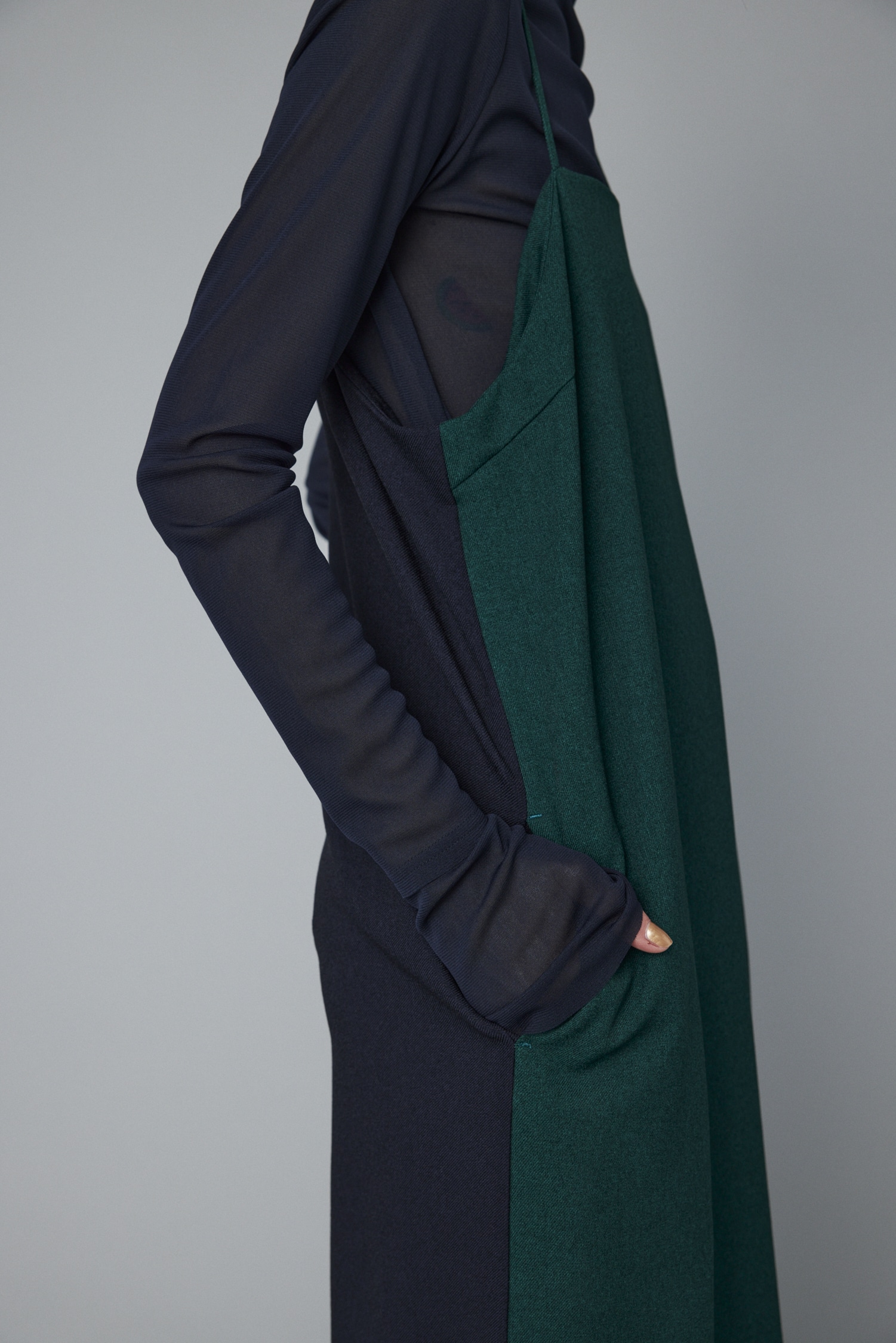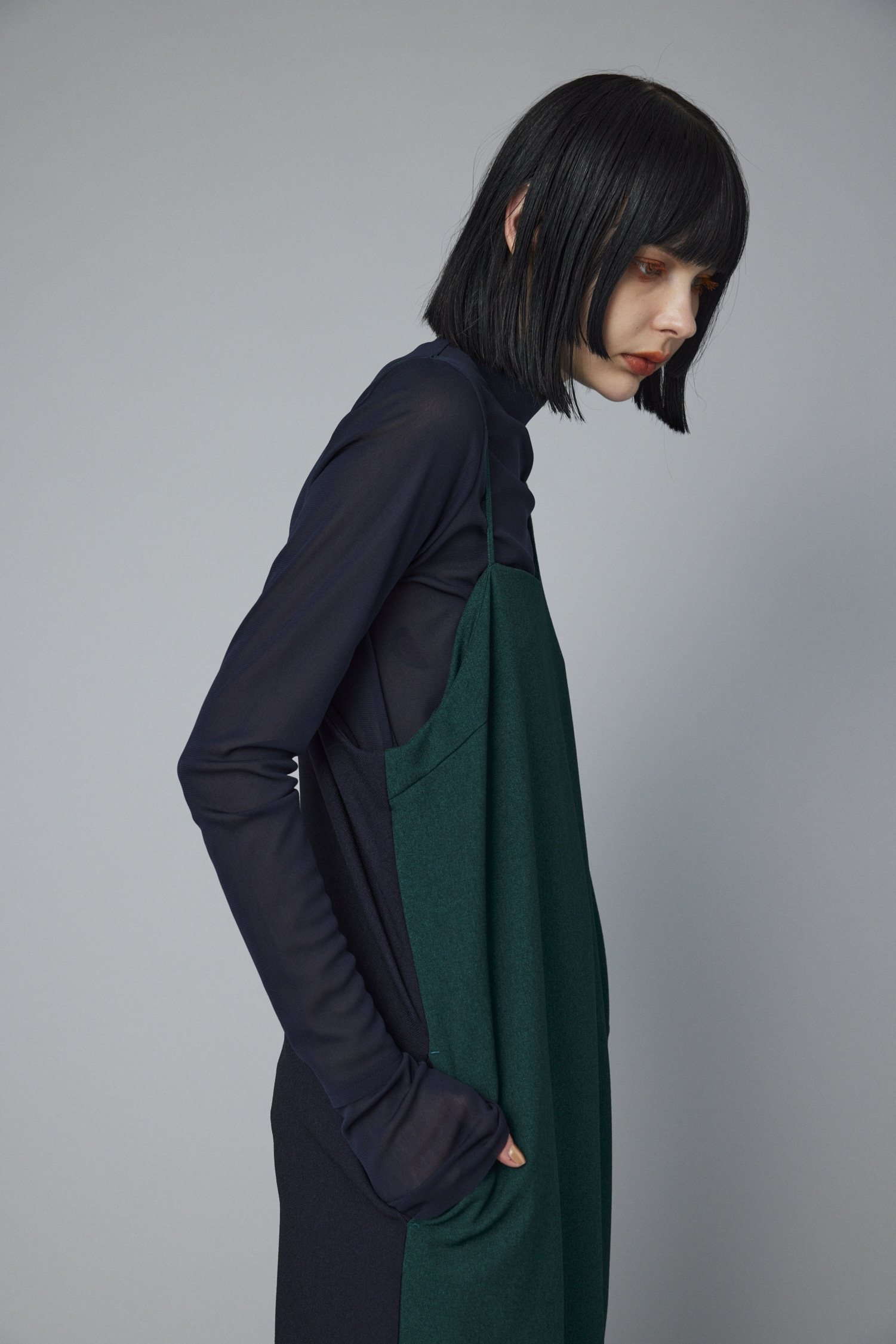 表裏をバイカラーで仕上げたHERIN.CYEらしい遊び心のあるワンショルダードレス。