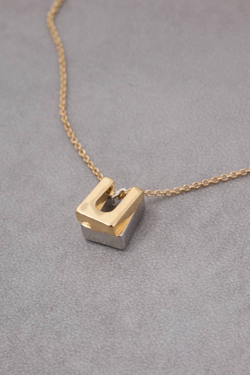 重なり合ったスクエア形状のペンダントが中心となり、モダンでシックな印象を与えます。