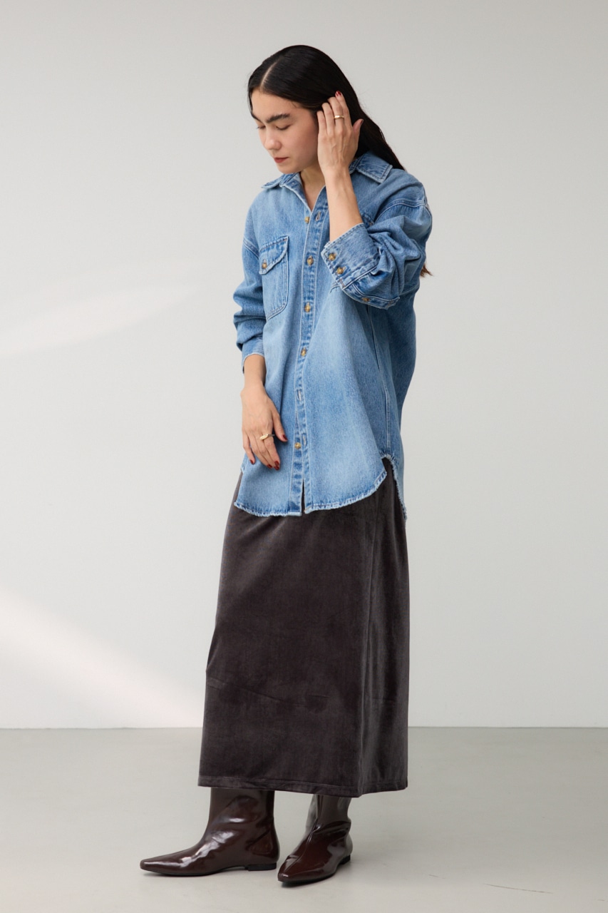 このブーツを合わせる事でモード感のある辛めなスタイリングに仕上げてくれます。