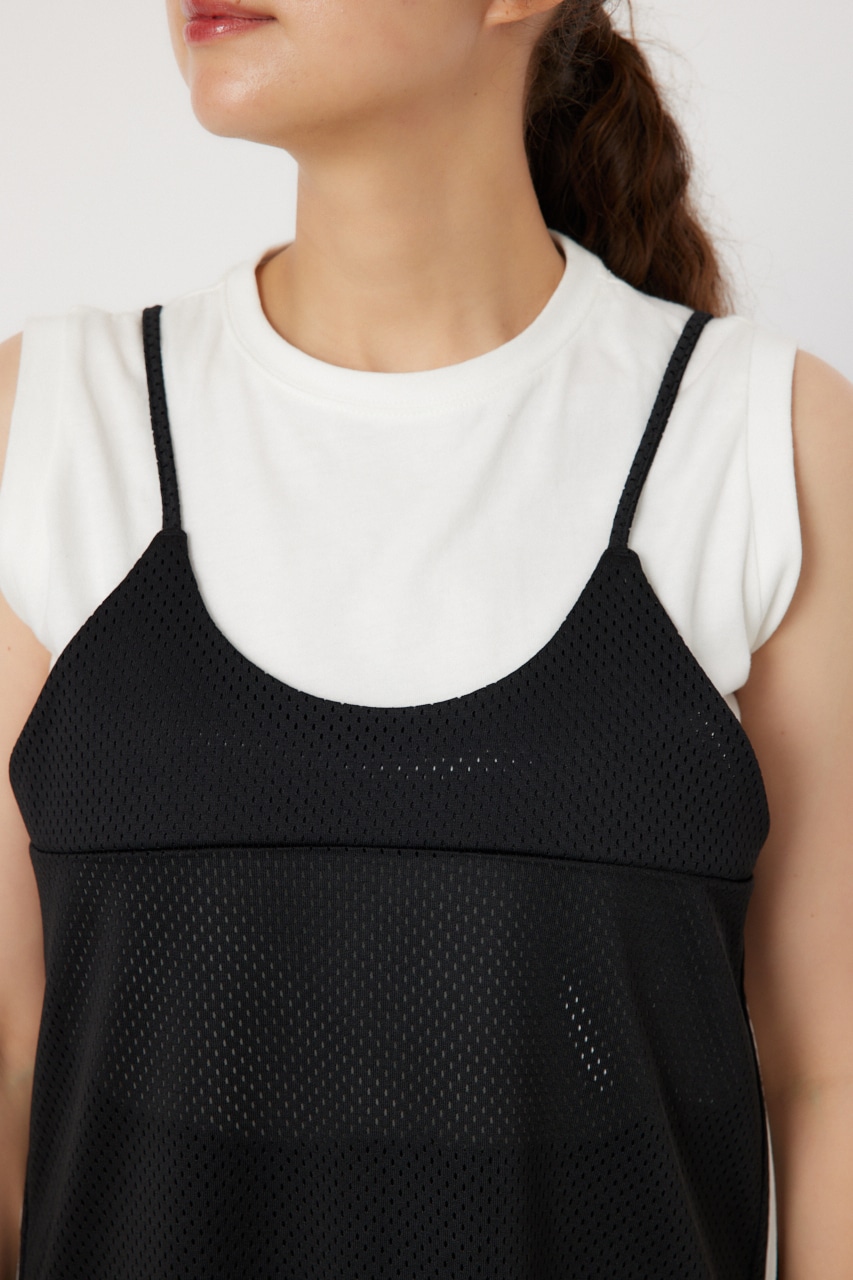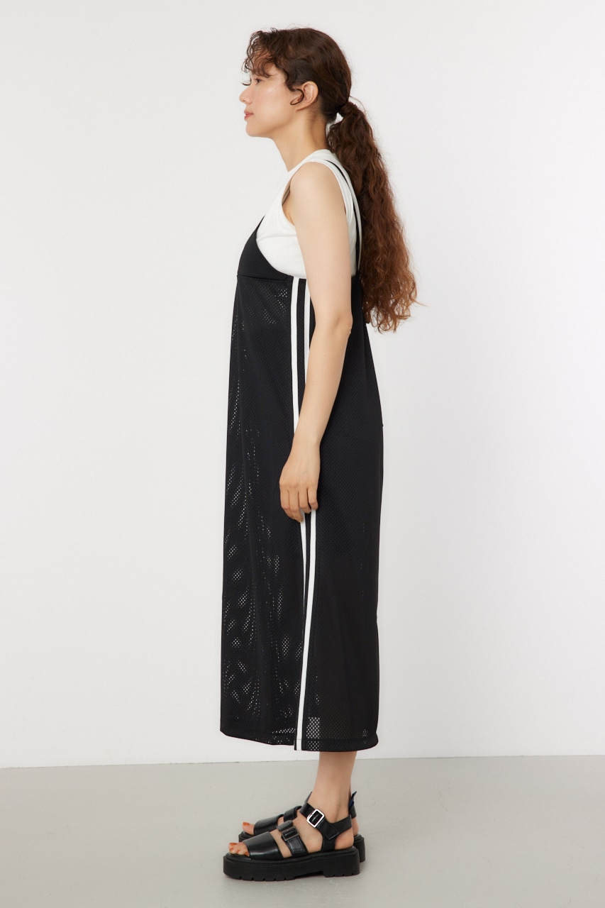 スポーティーなメッシュ素材を使用したキャミワンピース。WEB限定カラーのBLKはカジュアルにもモードにも合わせやすいアイテムです。サイドラインのシンプルなデザインなので、グラフィックTシャツをインナーに着用するのがおすすめ。オーバーサイズのTシャツの下にワンピを着用して、スカートだけを出すスタイリングもイチオシです。