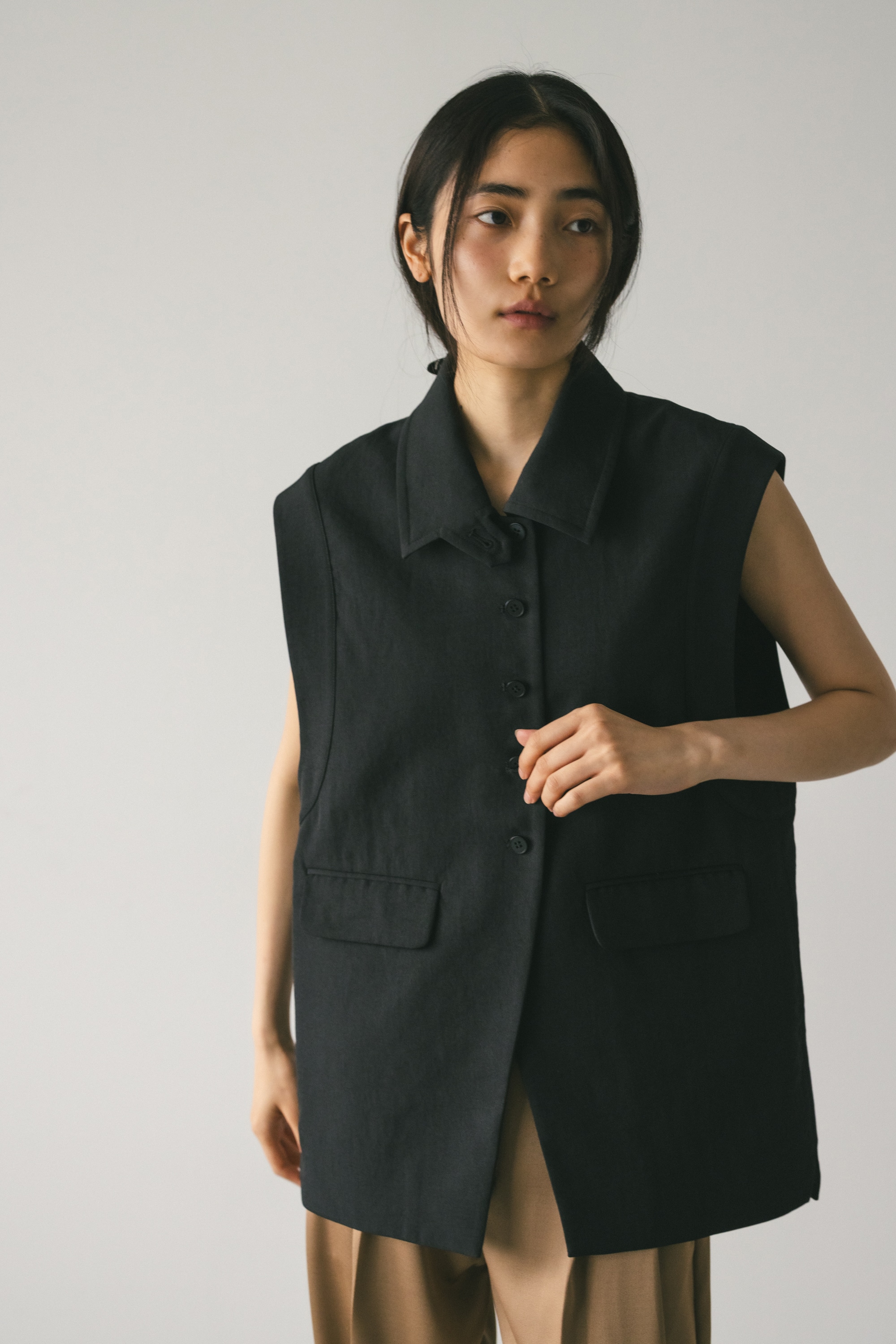 スタンドネックにもなる2WAY襟とスタイルアップ見せしてくれるボタンバランスがポイント。
