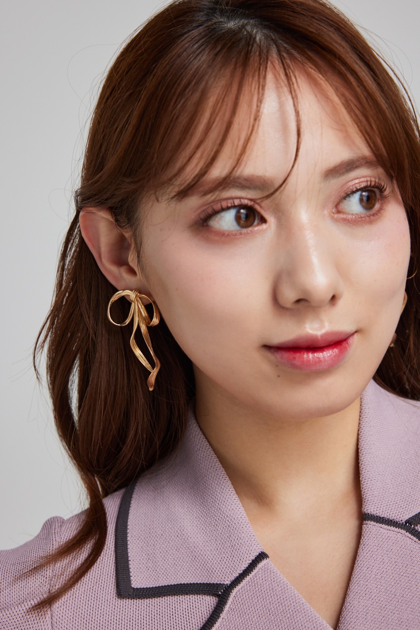 メタリックリボンピアス