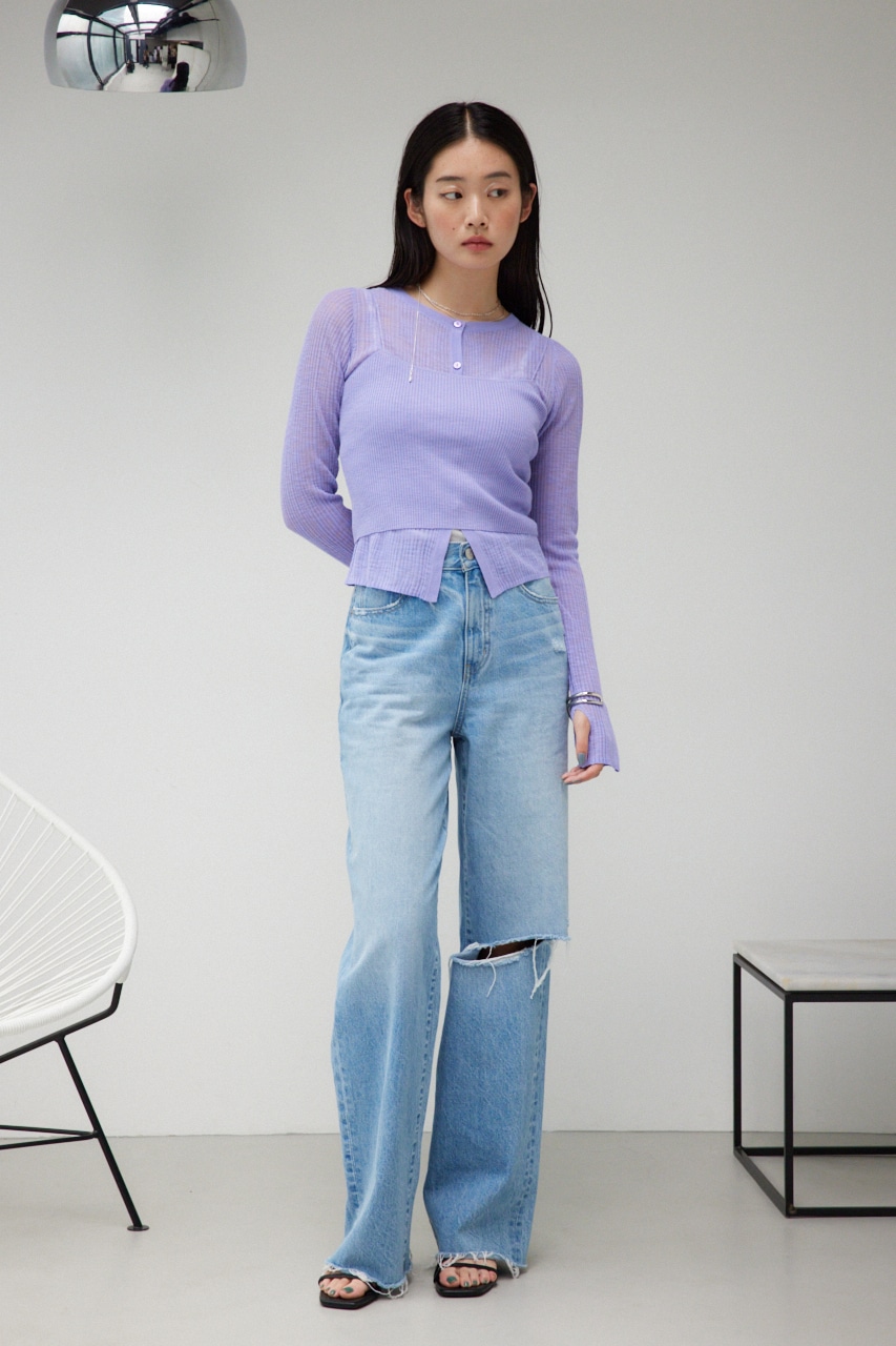 ■スタイリング:レディライクなアイテムなので、デニムやワイドレッグのパンツなどカジュアルボトムとの合わせがおすすめ。