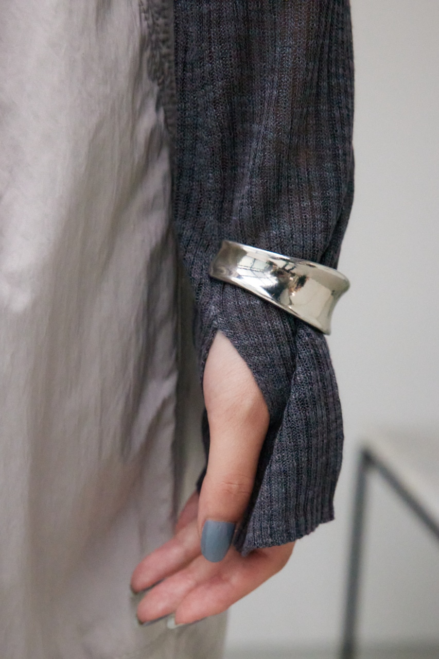長めの袖丈にサムホールを付けて抜け感を出しました。キャミはシンプルなデザインにしており、細目の肩紐で華奢な雰囲気に仕上げました。