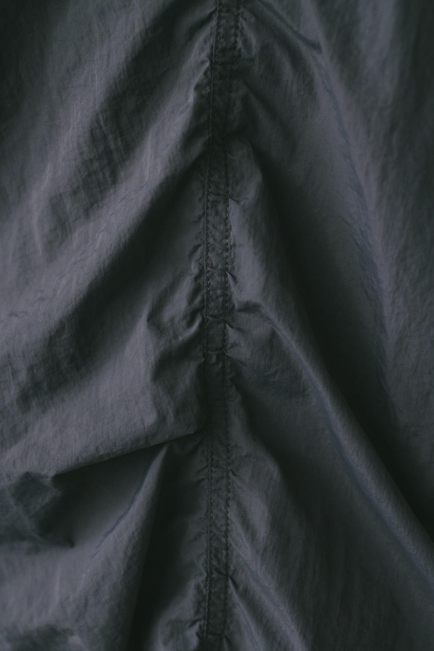 軽量で動きやすさを叶えるストレスフリーなナイロン素材で仕上げたギャザーナイロンパンツ。