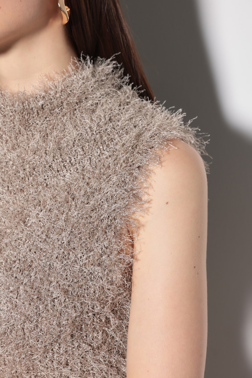 ドライな糸でのシャギーの糸がポイントのニットトップス。