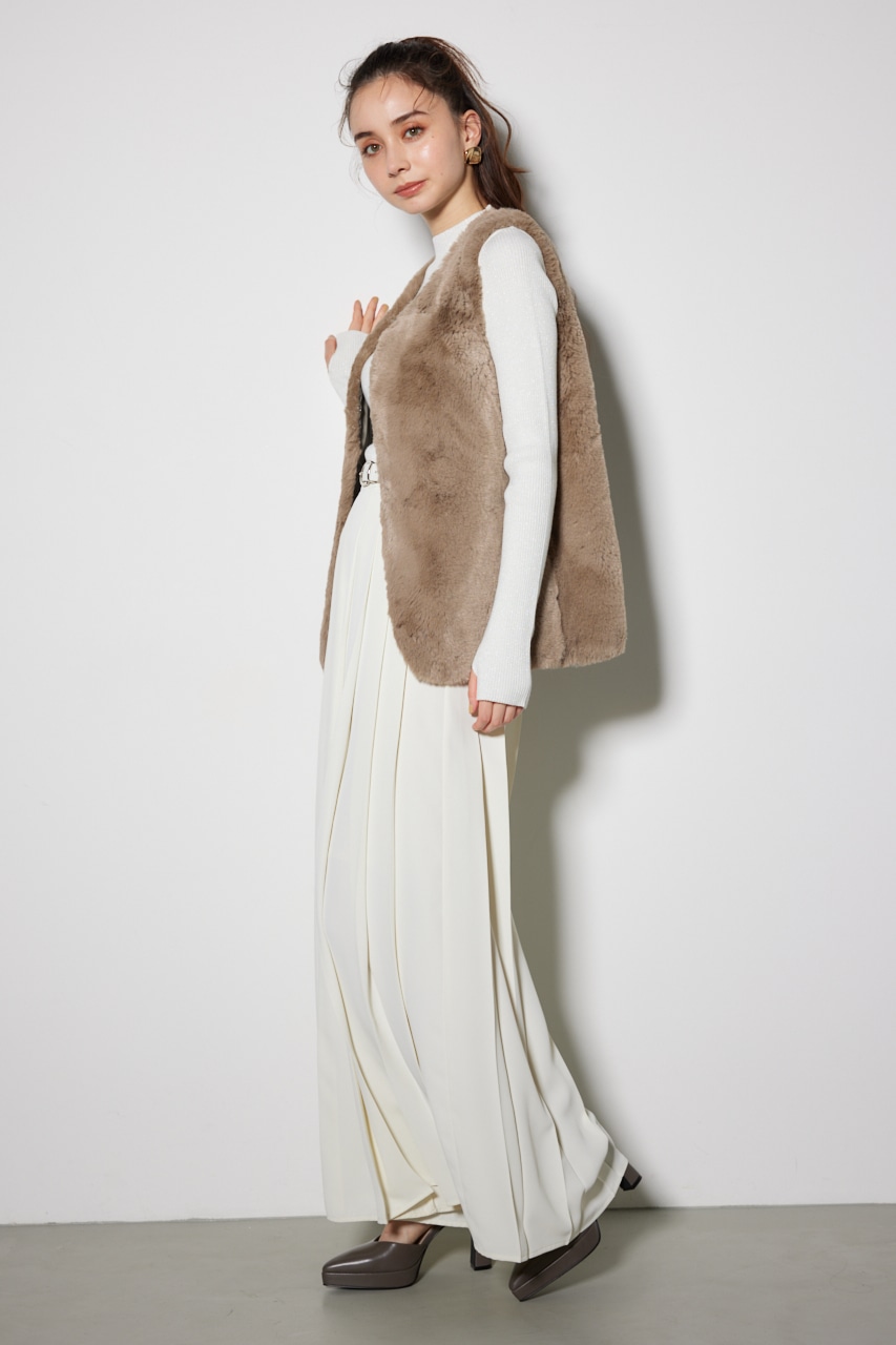 ボリュームが出るように毛の密度がある立体的な肌触りの良い上品なフェイクファーの素材を採用して制作したジレ。