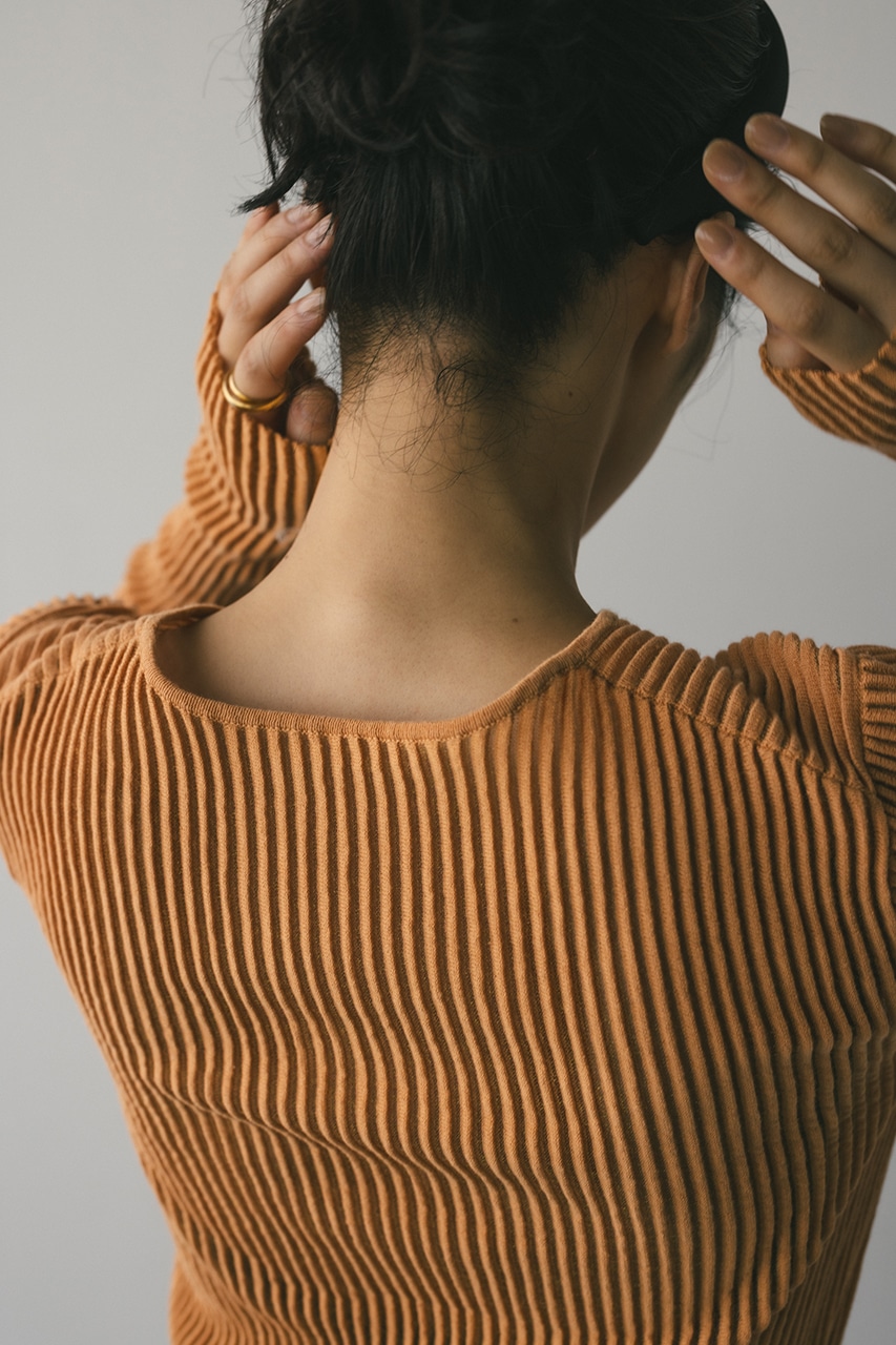 一枚ではもちろん、インナーとしても使いやすくスタイリングの幅を広げてくれる一枚です。