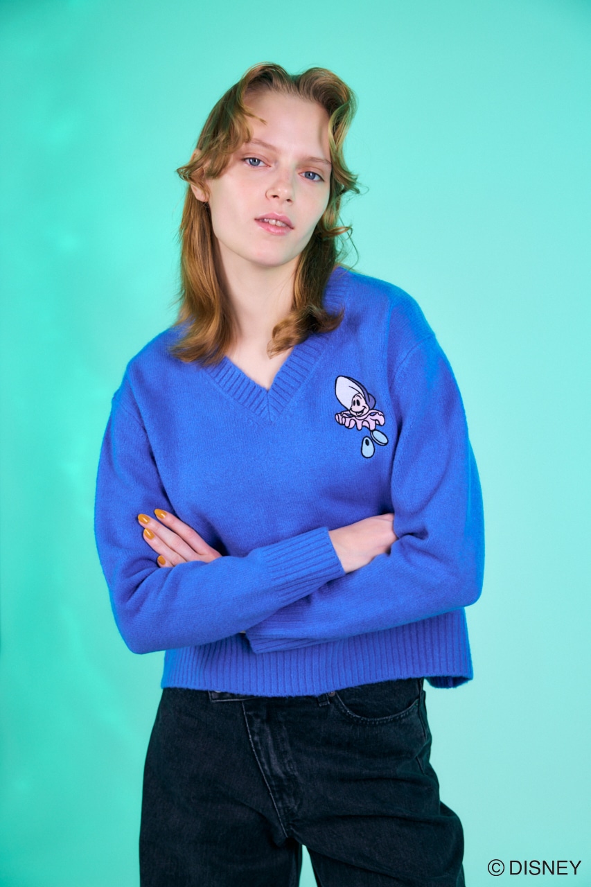 オーバーサイズなVネックにふっくらと柔らかい糸を使いシンプルに左胸に刺繍。