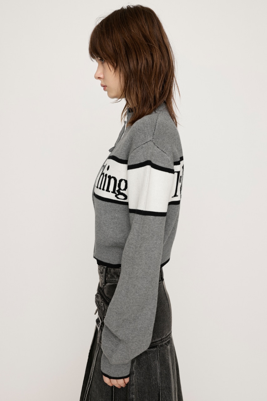 ■POINT:シンプルながらインパクトのあるジャガードロゴがポイントのニットカーデ。センタージップで羽織としても、ニットトップスとしても着用できます。